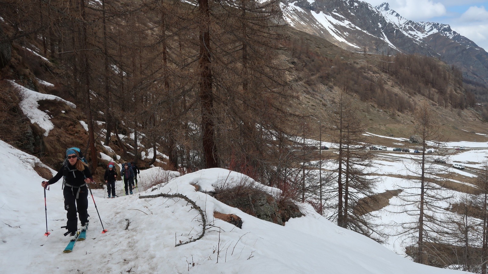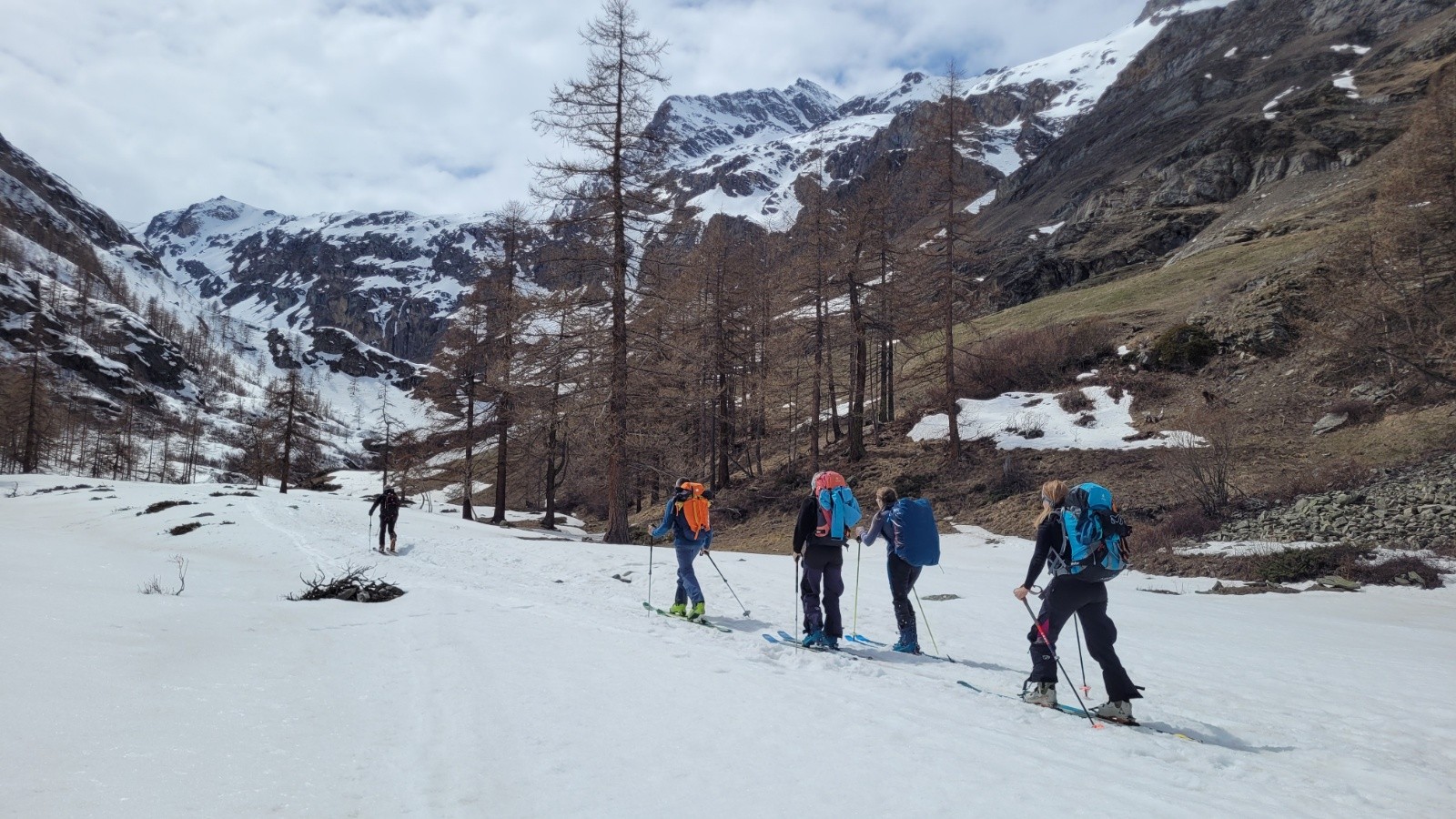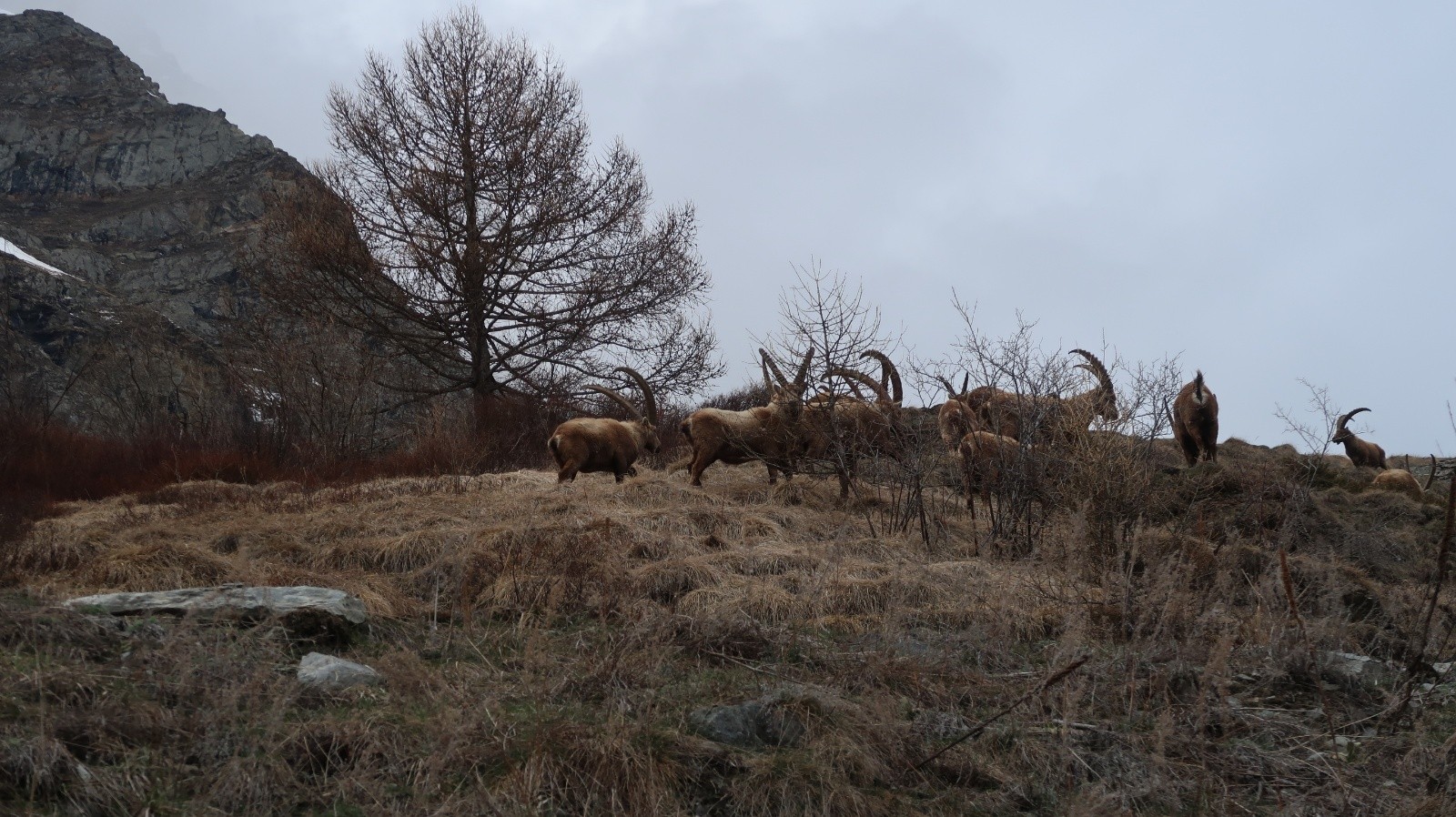 Nous arrivons à Thumel, terminal routier du Val di Rhêmes. Les derniers kilomètres ont déjà eu leur lot de surprises. Les bouquetins pullulent ici et les marmottes sont passées en mode printanier. C'est un bonheur de nous retrouver l'équipe au complet dans cette lumineuse vallée.