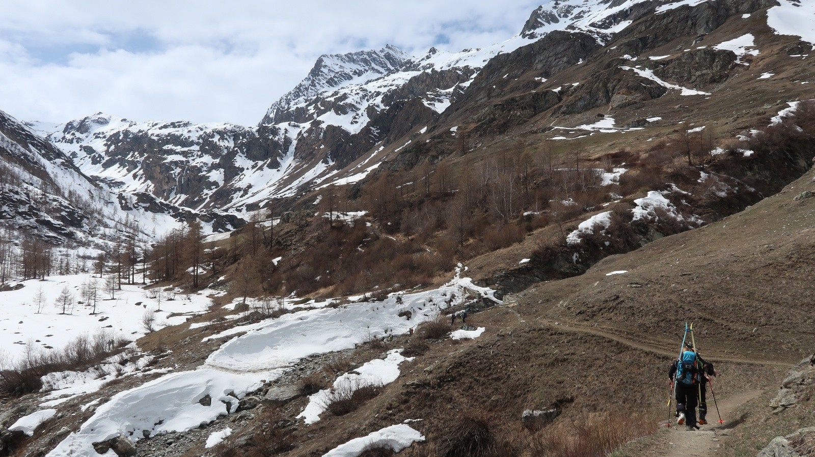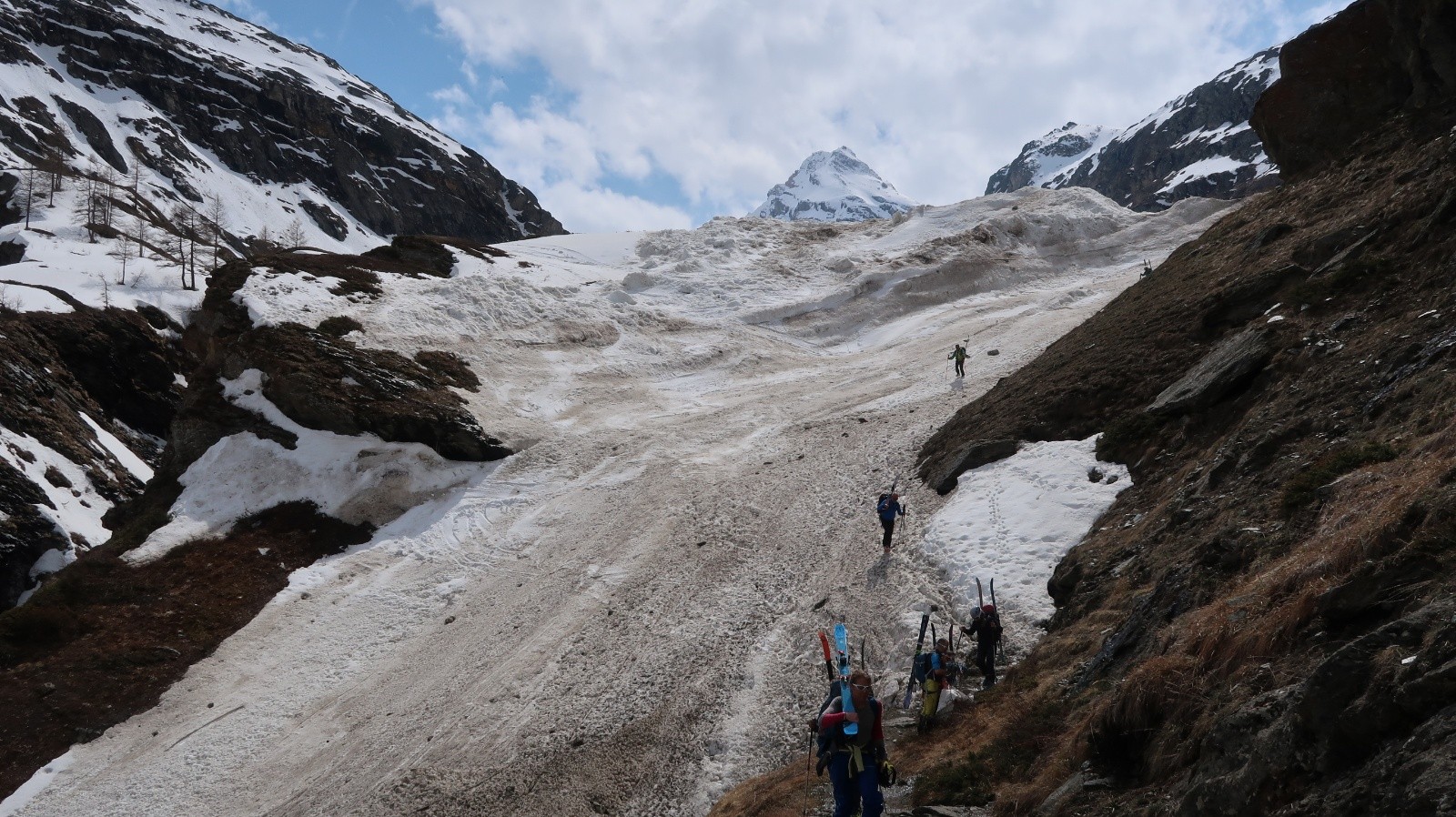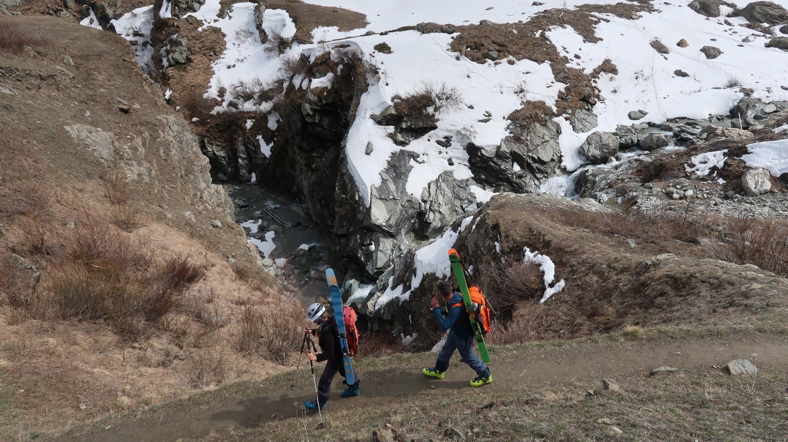 Nous arrivons à Thumel, terminal routier du Val di Rhêmes. Les derniers kilomètres ont déjà eu leur lot de surprises. Les bouquetins pullulent ici et les marmottes sont passées en mode printanier. C'est un bonheur de nous retrouver l'équipe au complet dans cette lumineuse vallée.
