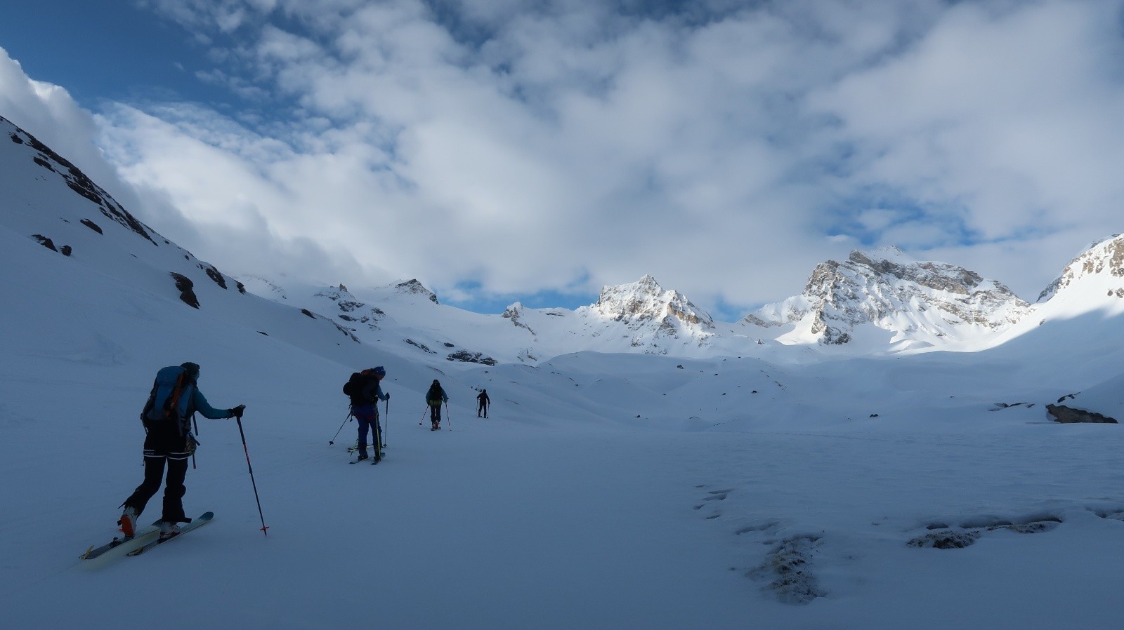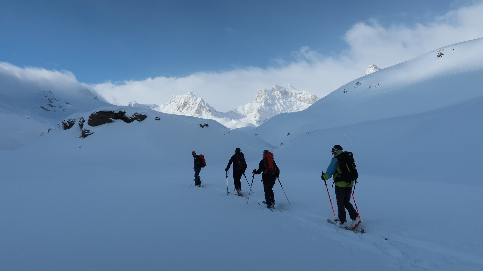 J2 : Beau temps le matin se couvrant rapidement vers 11h sur les sommets. D+1900m Skiabilité****