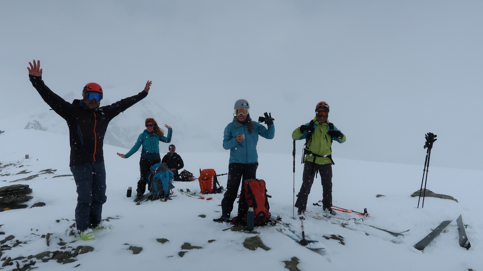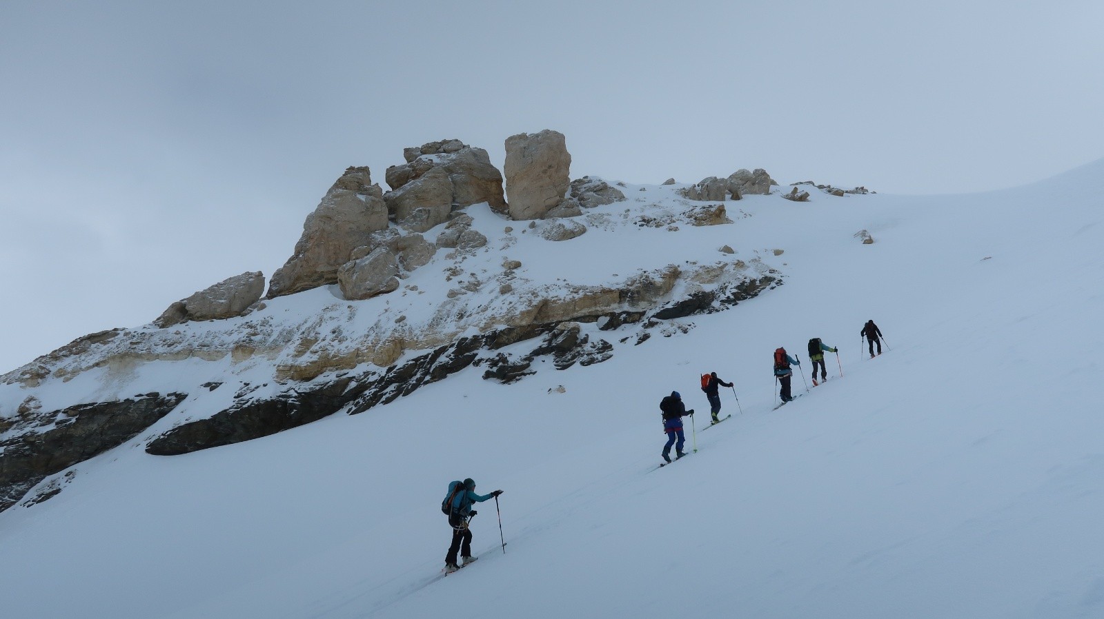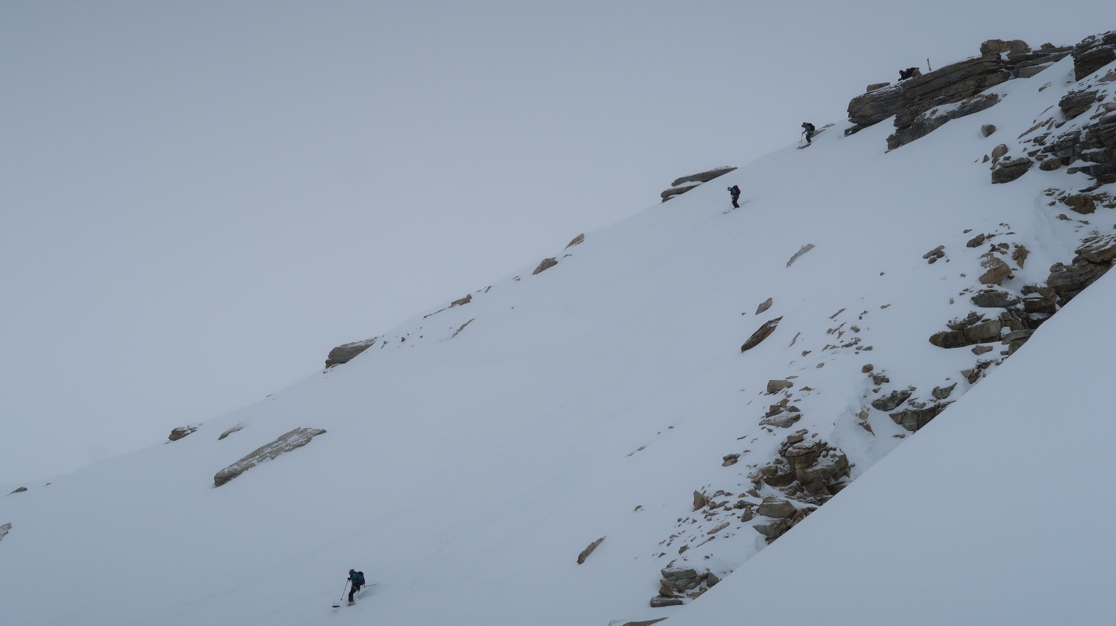 J5: Temps incertain, sommets bâchés, peu de vent, doux virant au chaud. D+840m Skiabilité****