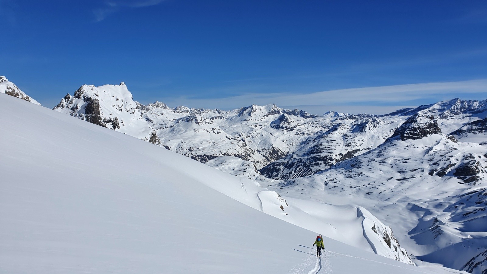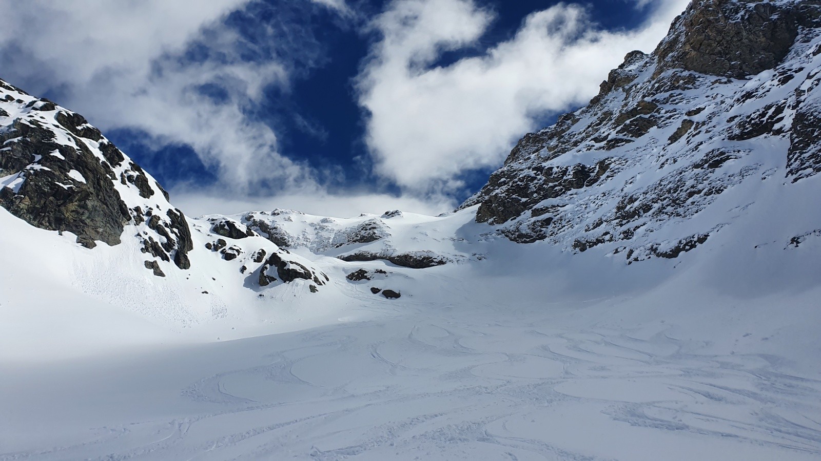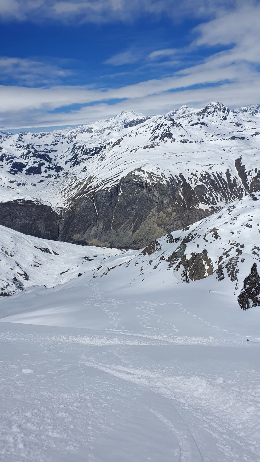 Conditions pour le ski : Poudreuse avec de plus en plus d'épaisseur en altitude (30-40cm sous la Selle de l'Albaron) - Poudreuse sur toute la descente jusqu'à rejoindre les pistes de Bonneval