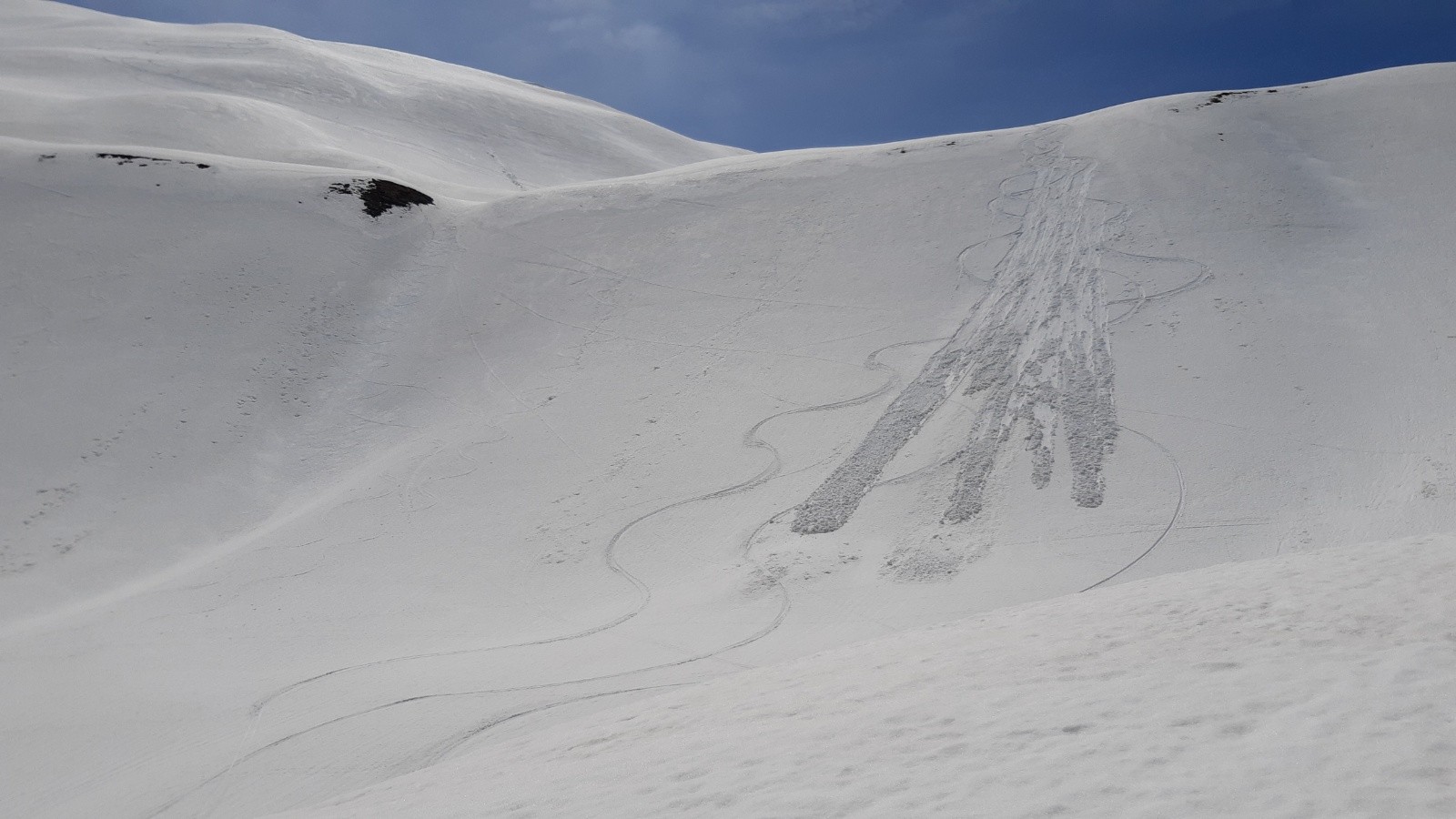 Activité avalancheuse : qq coulées de neige humide sous les skis.