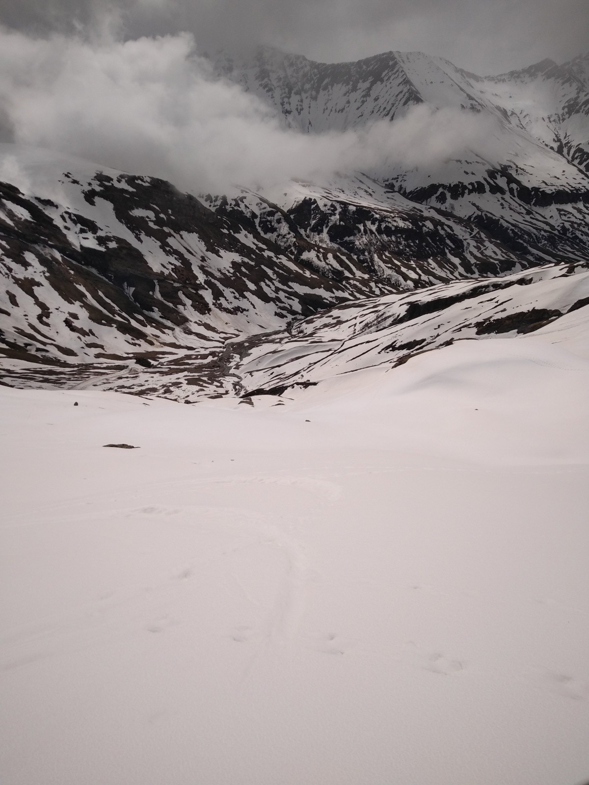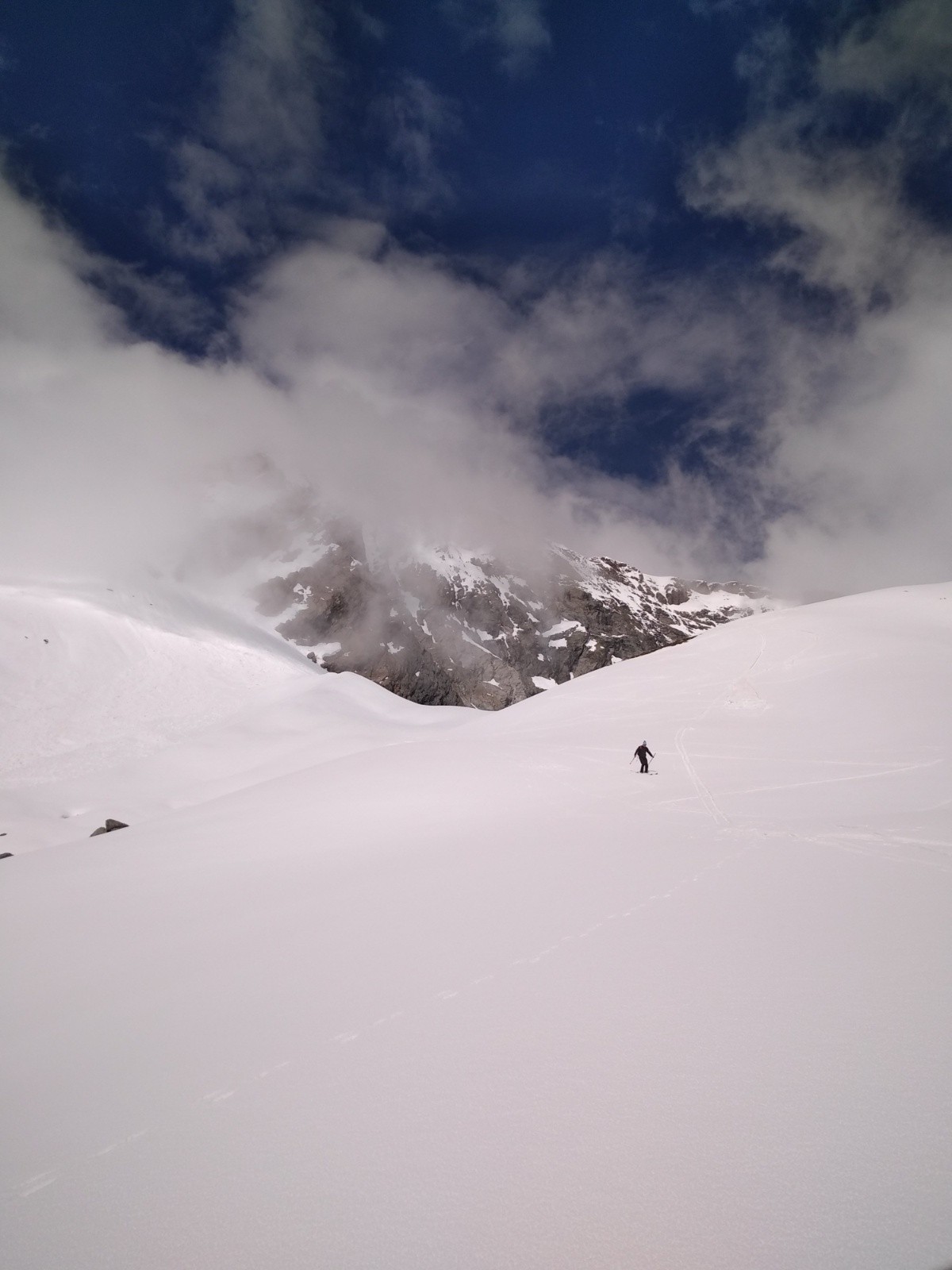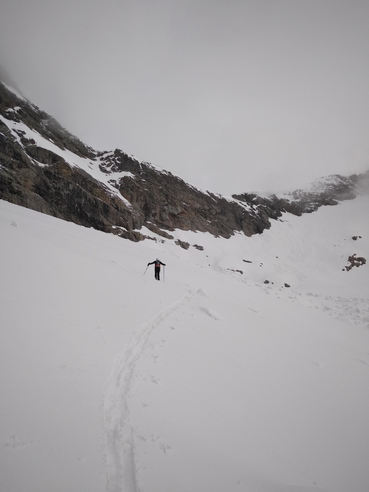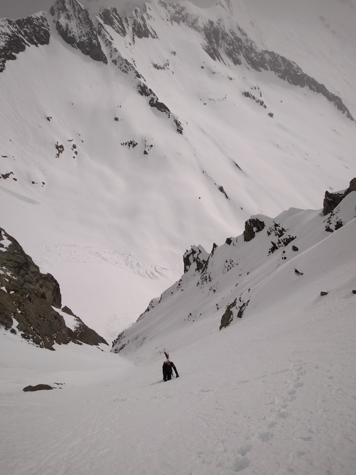Itinéraire suivi : départ des chapieux a vélo jusqu'au bout de la route carrossable.ensuite montée en direction du refuge puis sur le glacier des lanchettes.le couloir apparaît sur la gauche.une grosse goulotte dans l'axe du coup on skié les rives avec un peu de neige fraîche.auccun regel sur tout l'itinéraire.