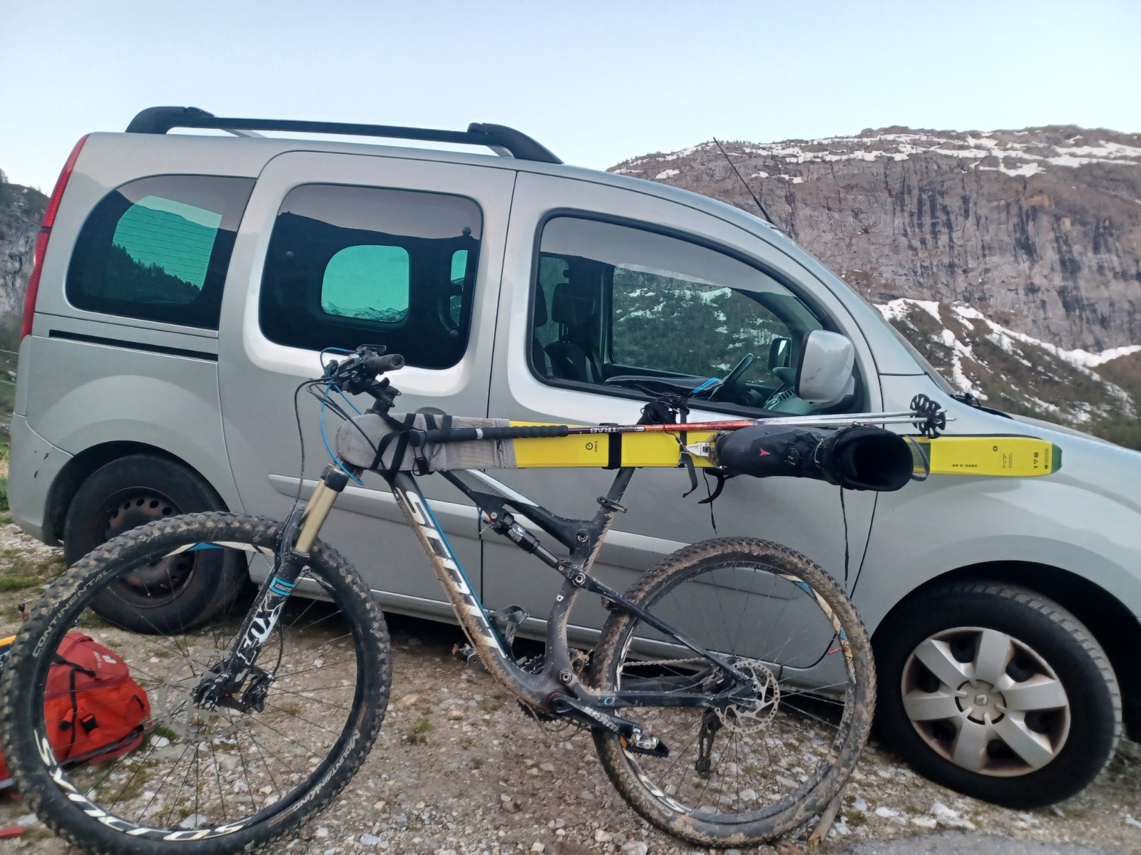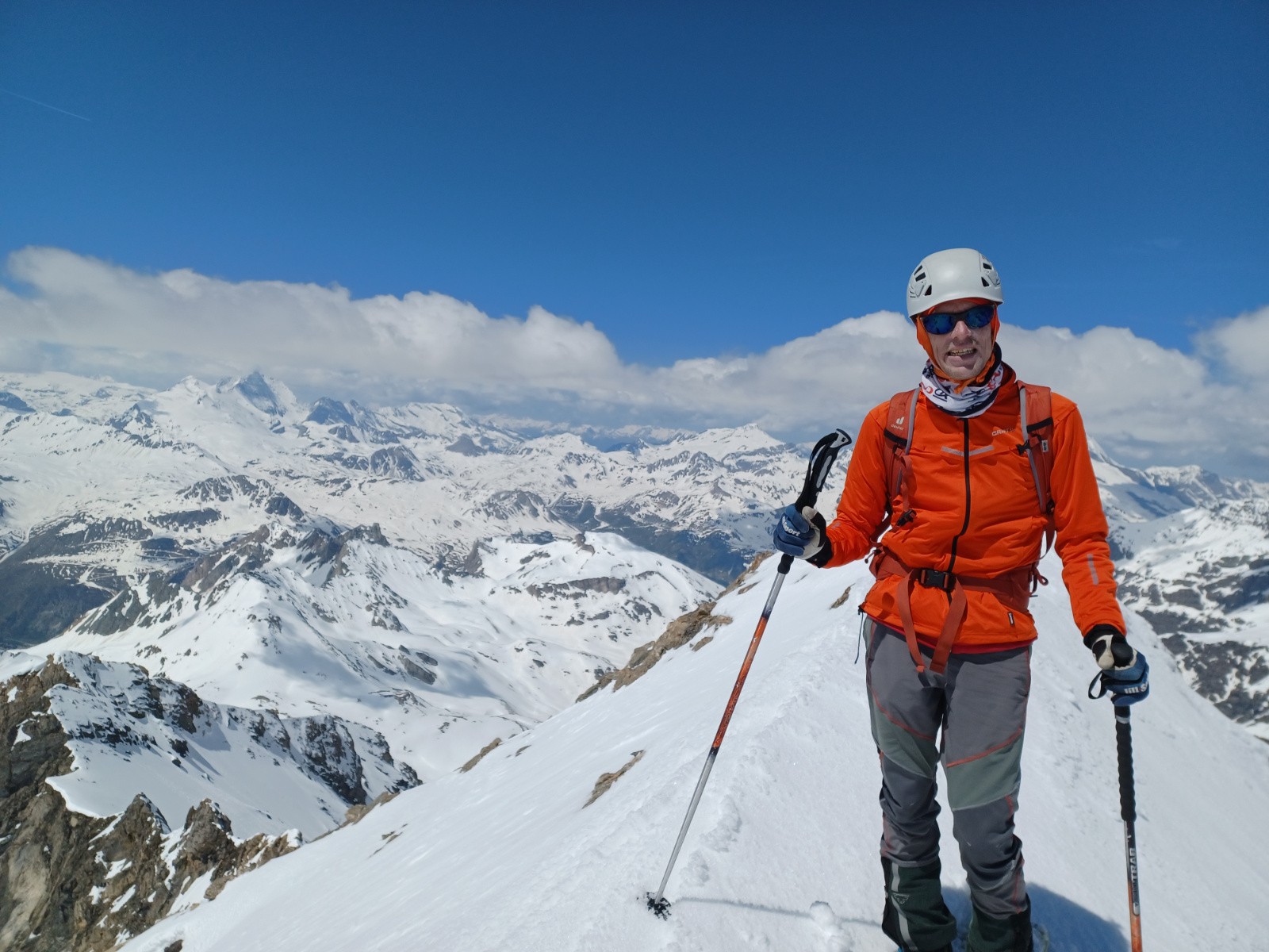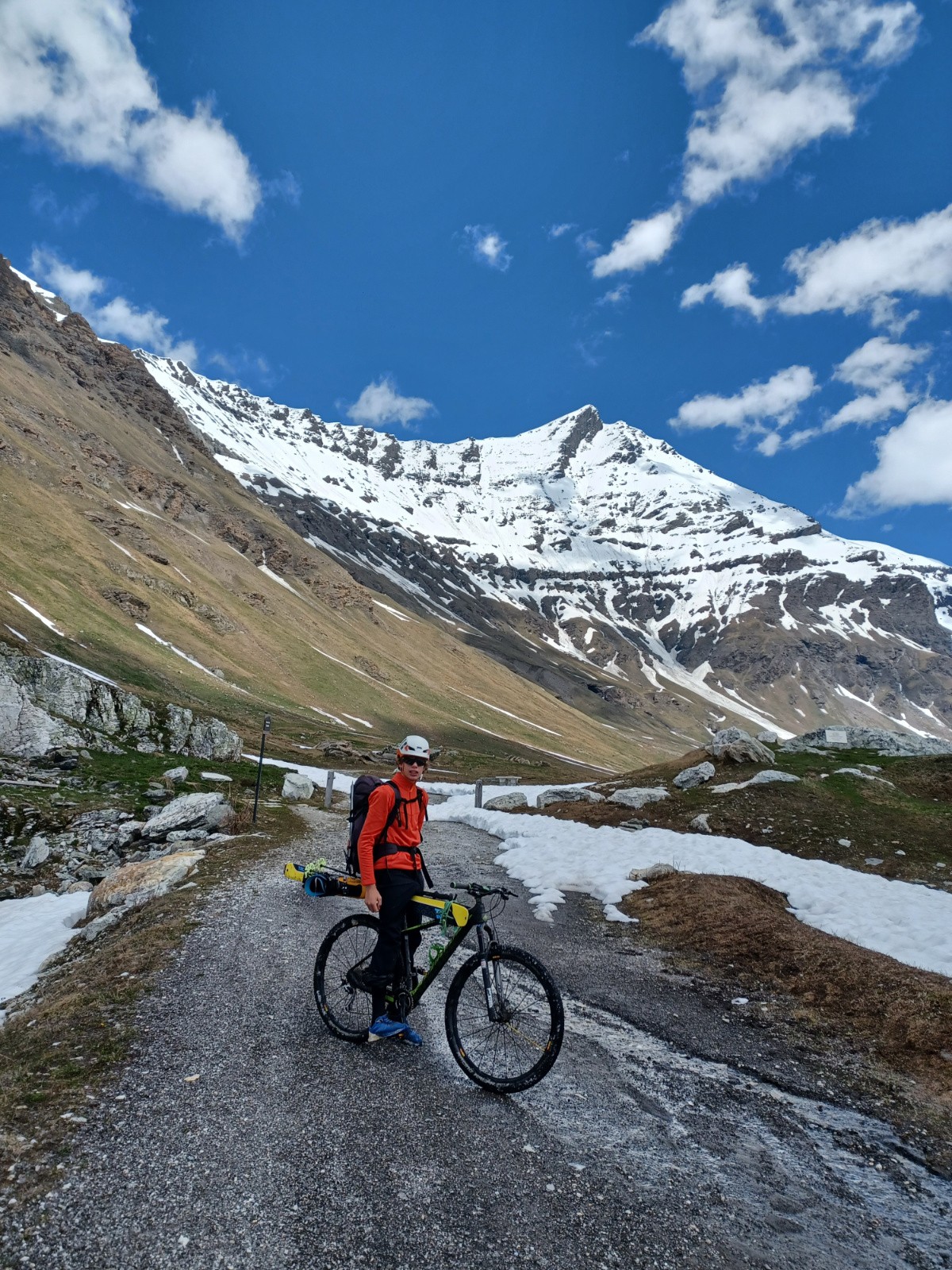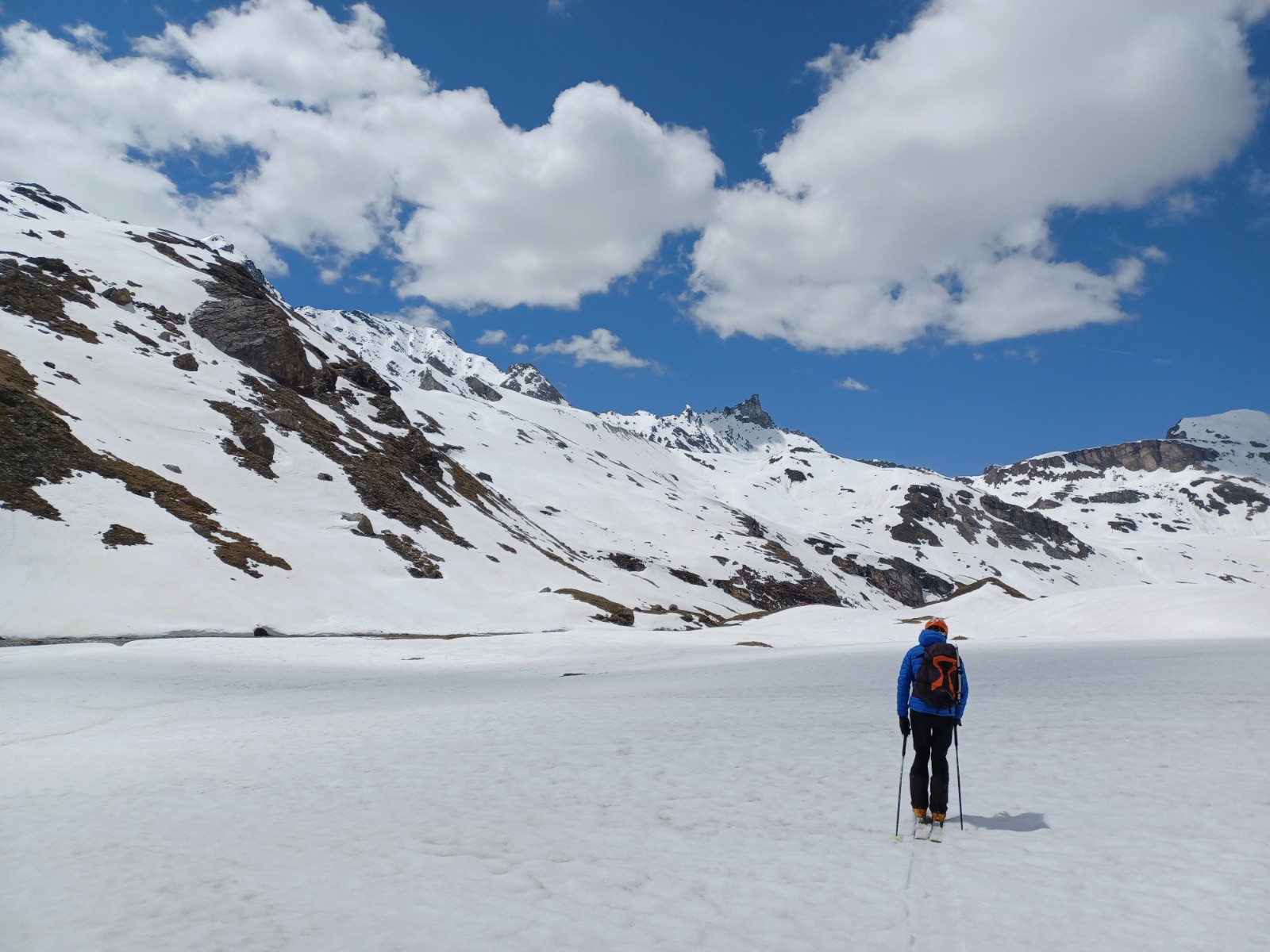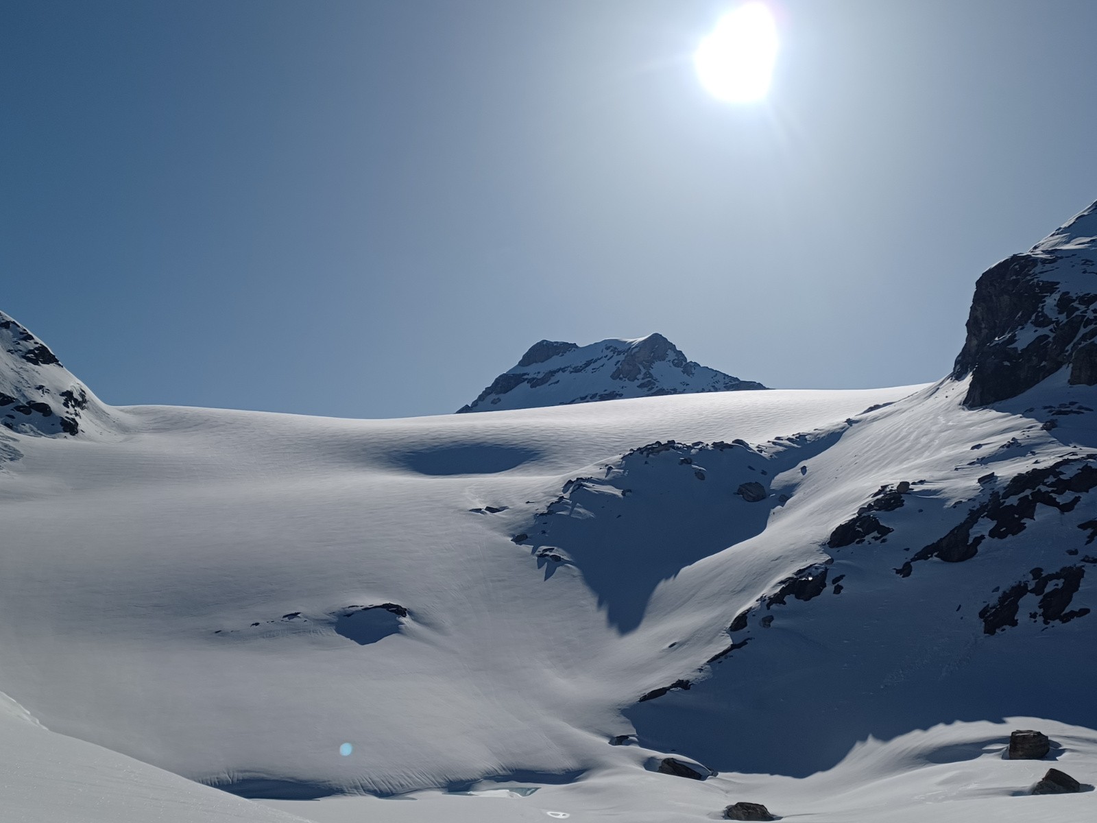 Itinéraire suivi : Voiture garée dans l'épingle au niveau du Franchet. Approche en vélo jusqu'au point 2388m 500m avant la barrage de la Sassière. Nouveau déchaussage le long du lac puis ensuite enneigement continu. Montée dans la grand vallon en direction du col de Rhemes-Golette puis en bifurque à droite vers le col de la Tsanteileina. On remonte le début de la face à ski en mettant les couteaux puis on chausse les crampons. Coin très sauvage, pas une trace et neige bien lisse avec un bon grip. Le passage de la barre est très bien enneigé et passe très bien. FIn de la montée à pied ultra physique on l'on enfonce pas mal. Super vue du sommet. Début de la descente en neige un peu croutée. Meilleur ensuite quand l'on passe plus à travers puis ensuite moquette. Descente plus directe en passant à gauche du rognon côté 3127.