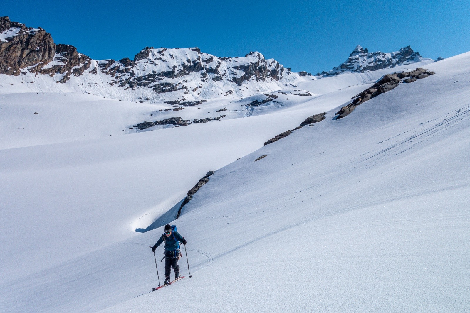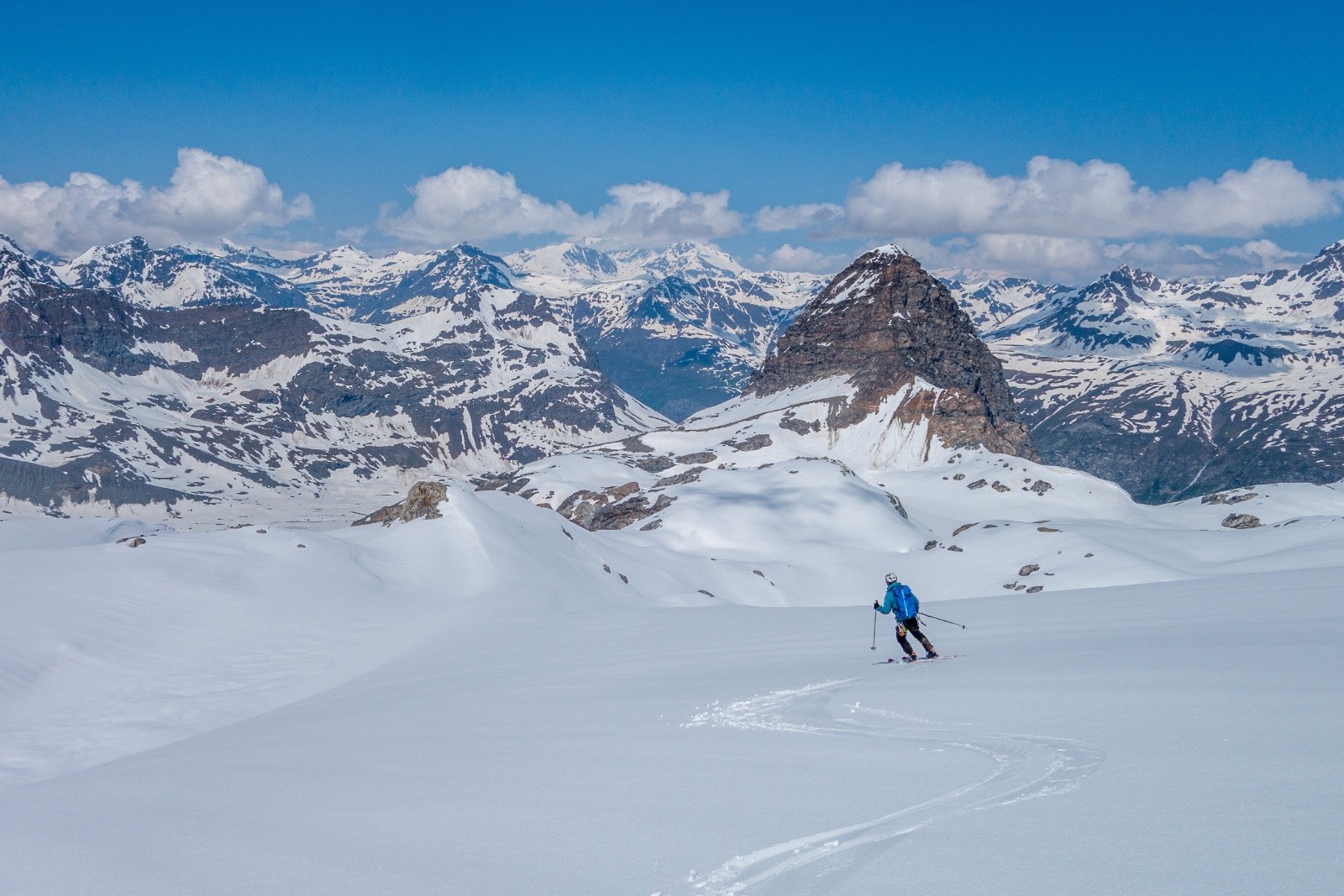 Conditions pour le ski : Très bonnes conditions de ski au dessus de 2600m, en dessous trop de vaguelette et regel très moyen. Moquette en W à 11h.