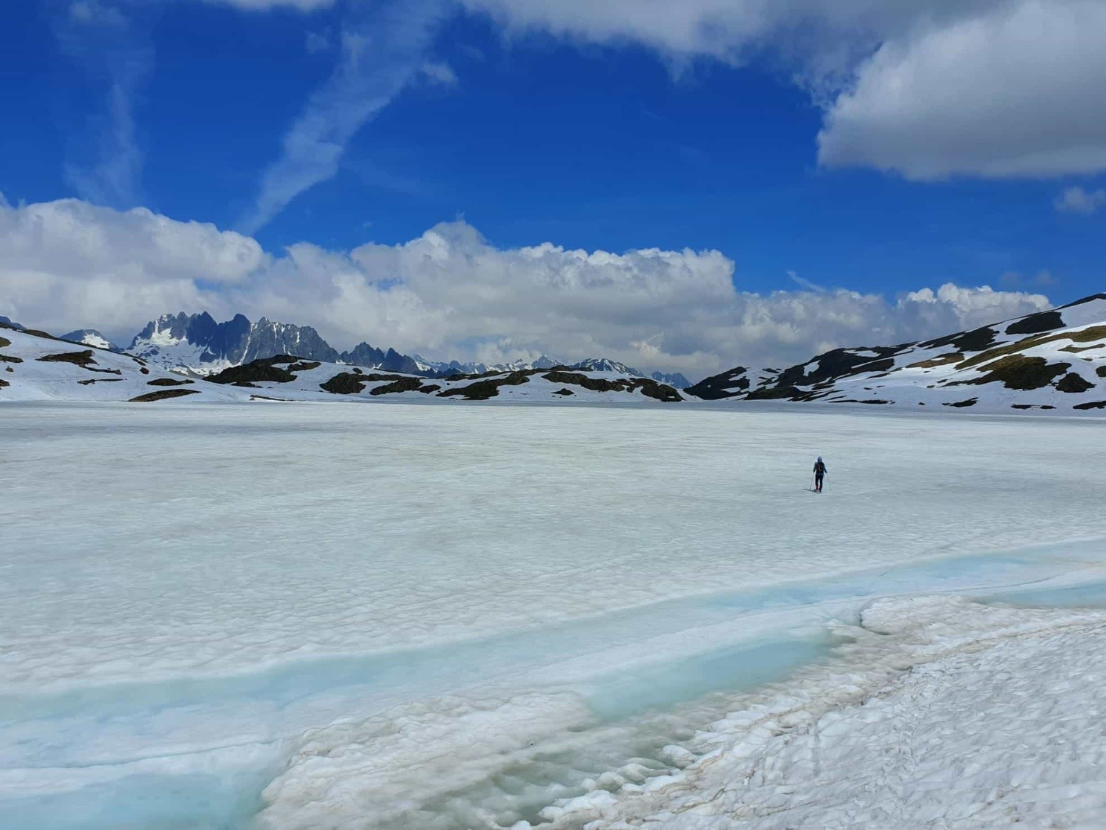 Conditions d'accès/altitude du parking : on porte les skis sur 300m de dénivelé sur la route, ensuite a ski avec un seul déchaussage jusqu'au refuge. Ensuite tout a ski sans déchaussage.