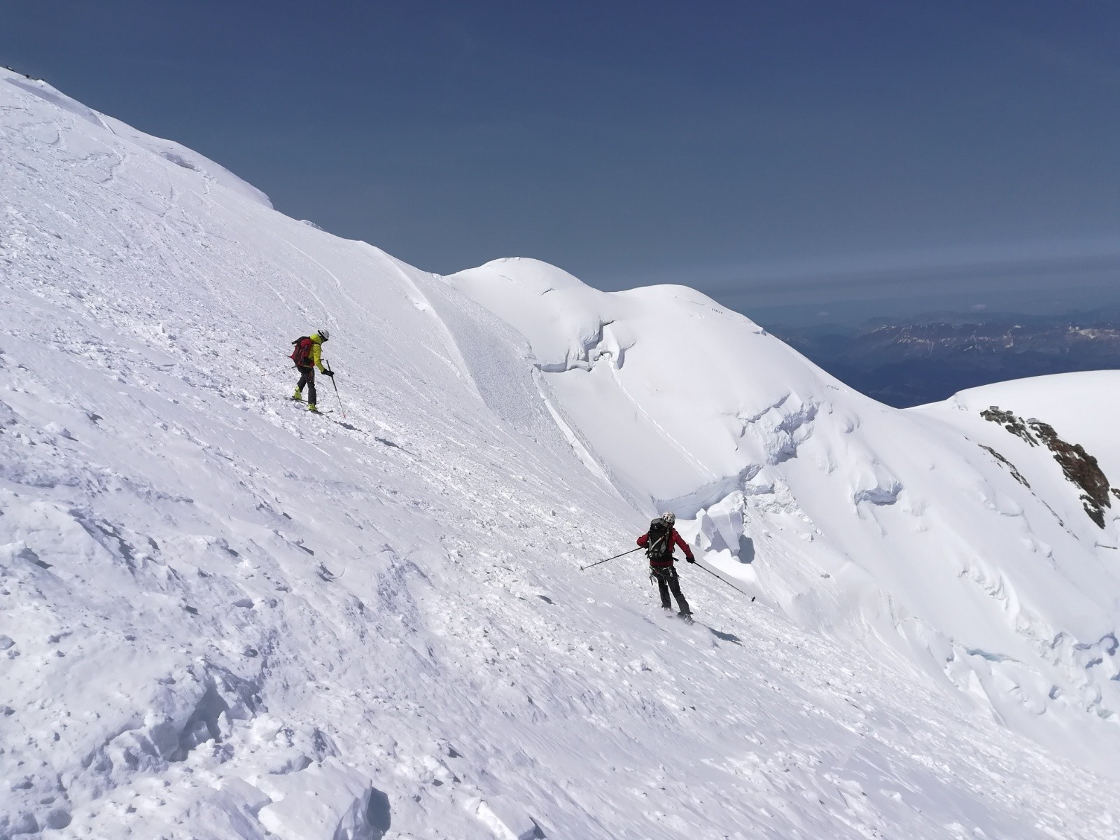 3- Respect du timing pour limiter les risques (descendre vers Grand plateau pas plus tardivement que 12h pour diminuer l'expo chute de séracs au soleil. Etre à la jonction pour 13h)