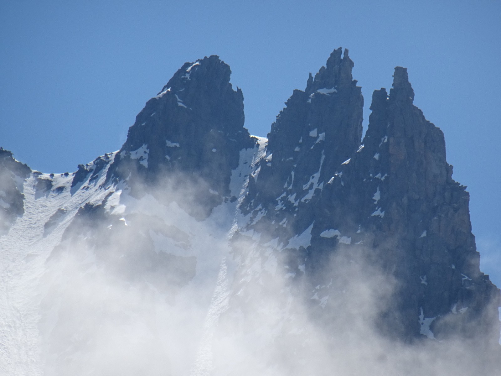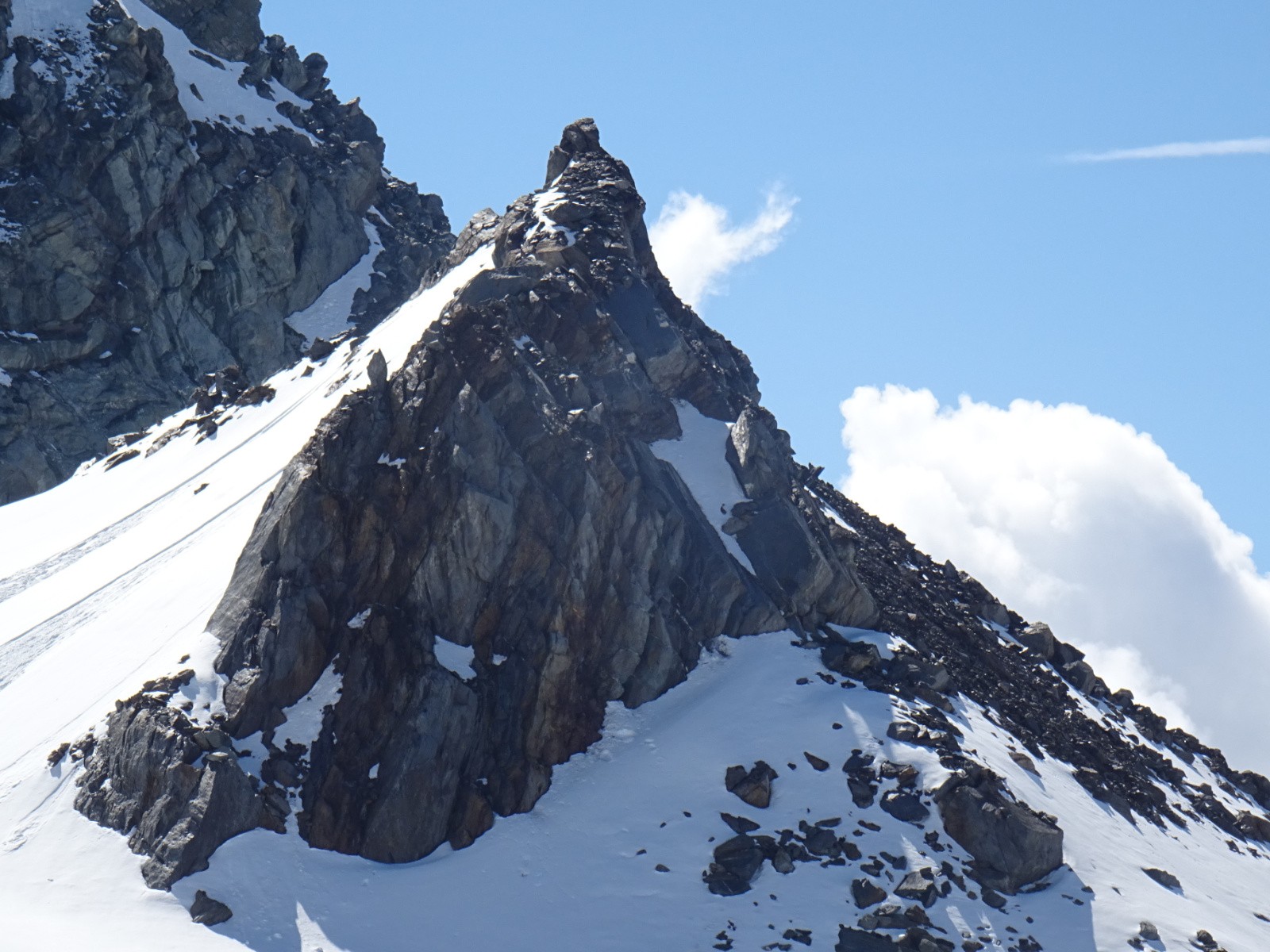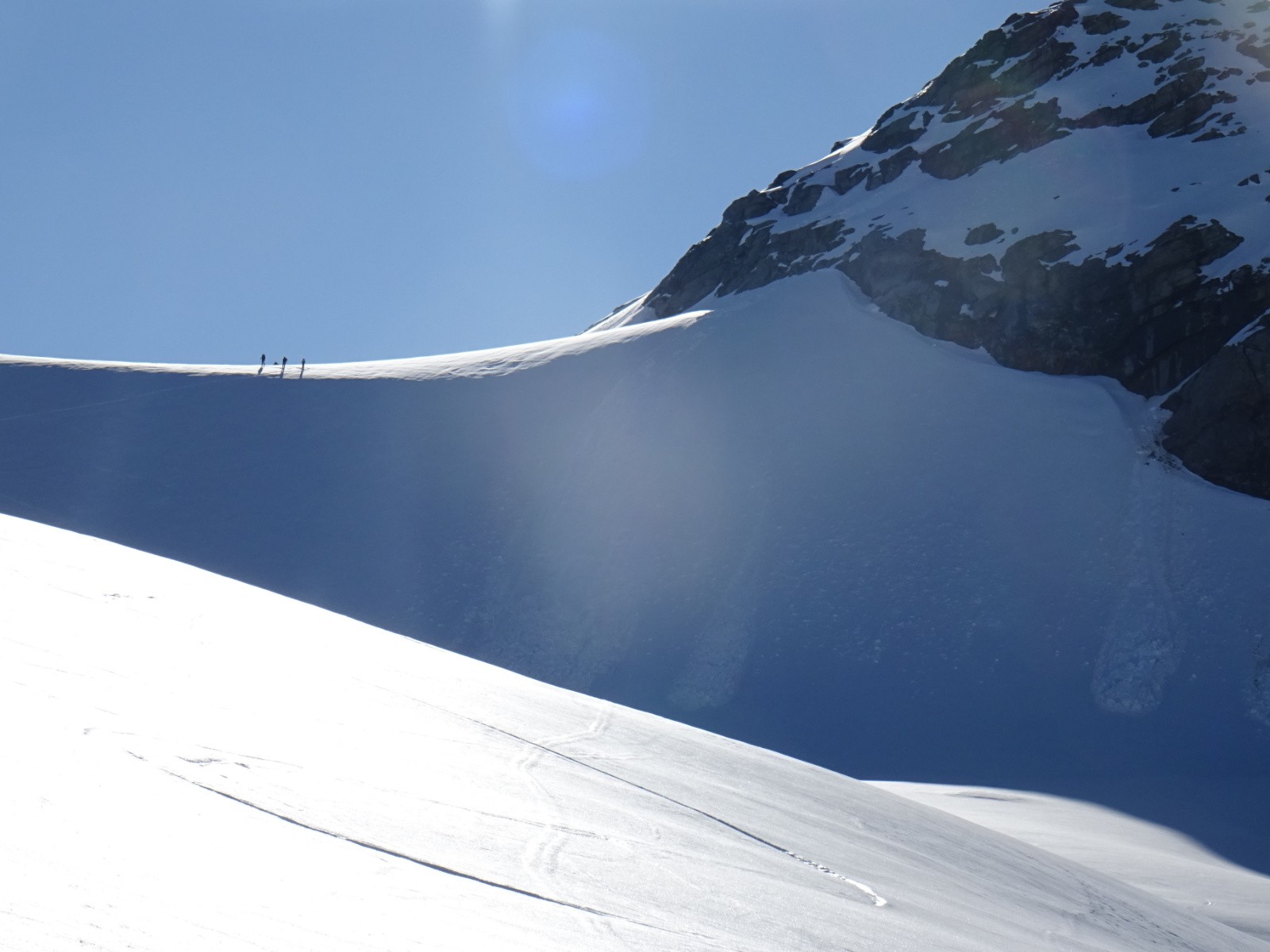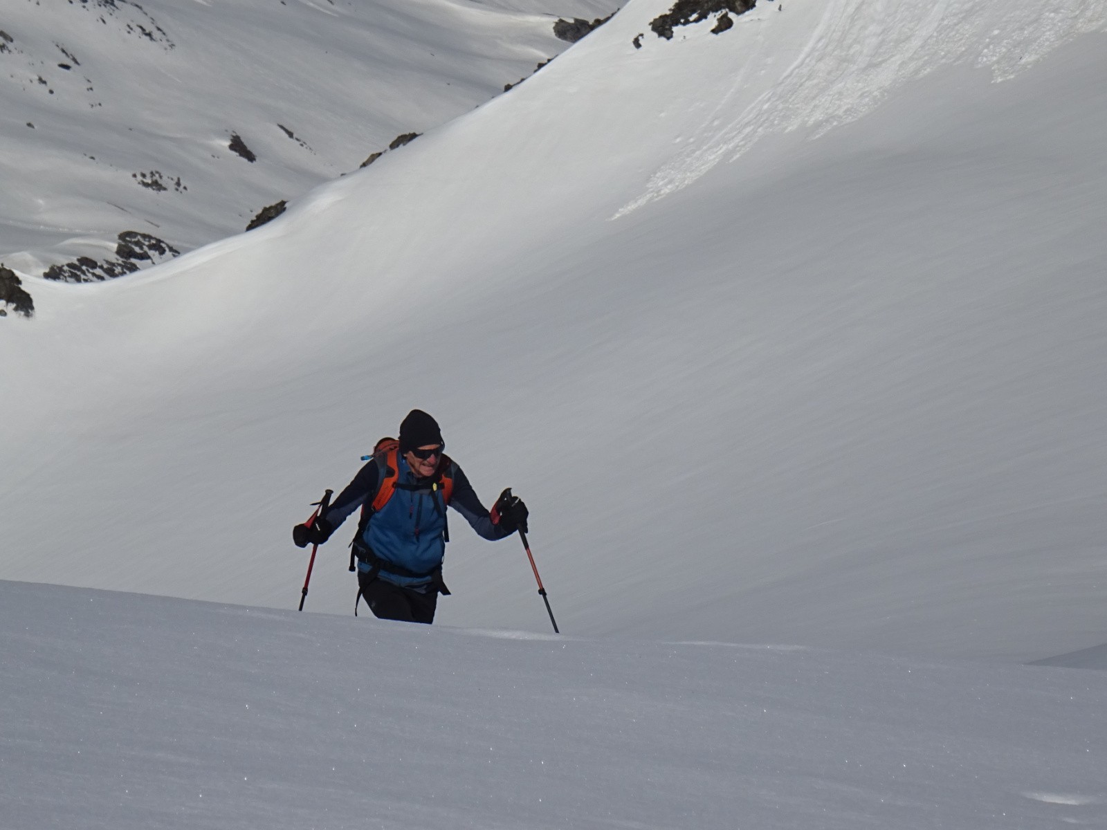 Conditions pour le ski : neige inégale, un peu merdique sur le haut (petite croûte sur fond assez mou...) jusque vers 3200m, devenant ensuite correcte puis plutôt agréable au fur et à mesure de la descente ("moquette" à poils plus ou moins longs, un peu collante à la fin)