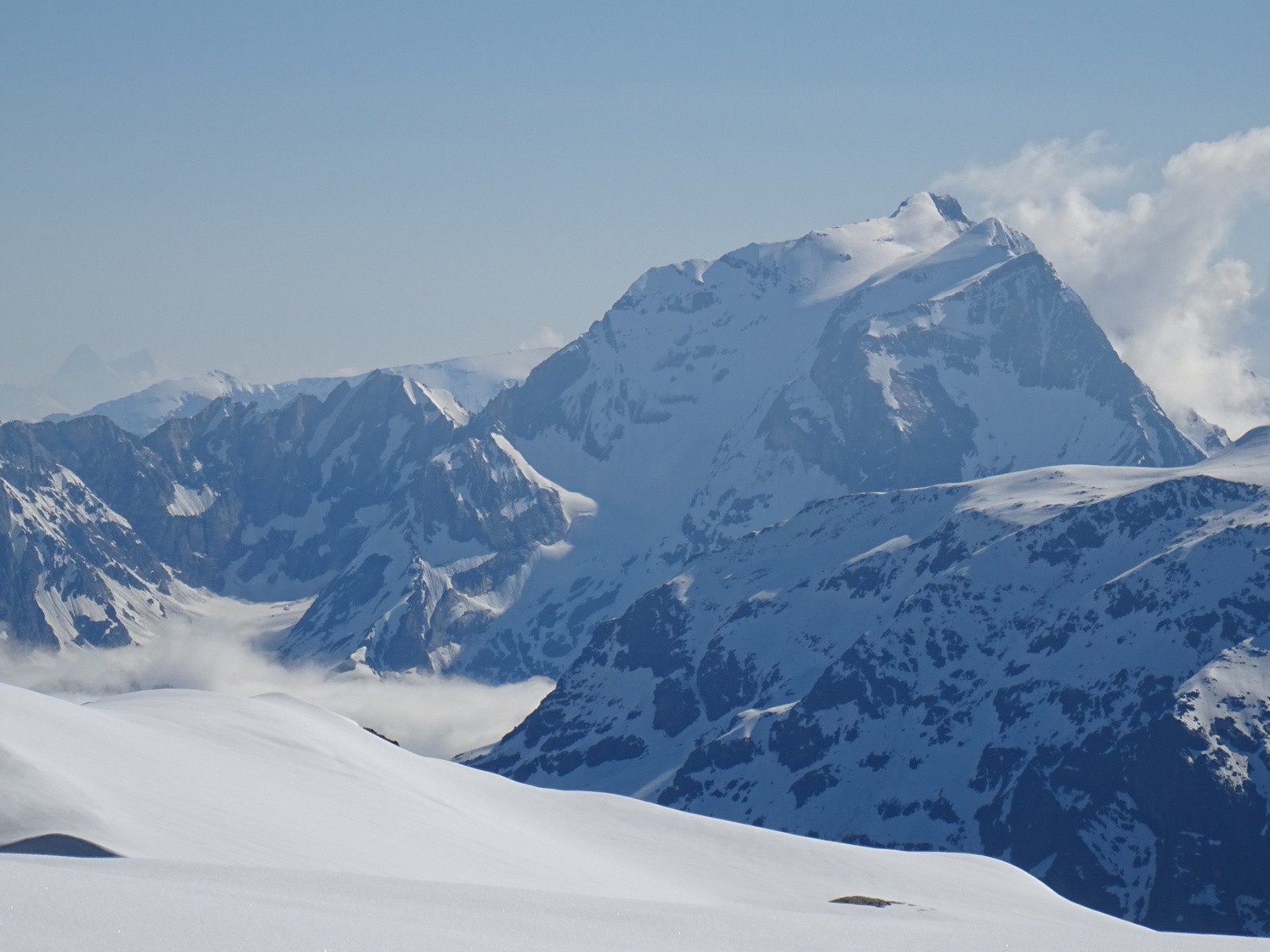 Météo/températures : beau temps bien plaisant, cumulus émergeant autour à partir du milieu de matinée (sans encombrer vers Gébroulaz/Polset/Péclet), plutôt doux, regel inexistant sous 2800m environ et faiblard au dessus