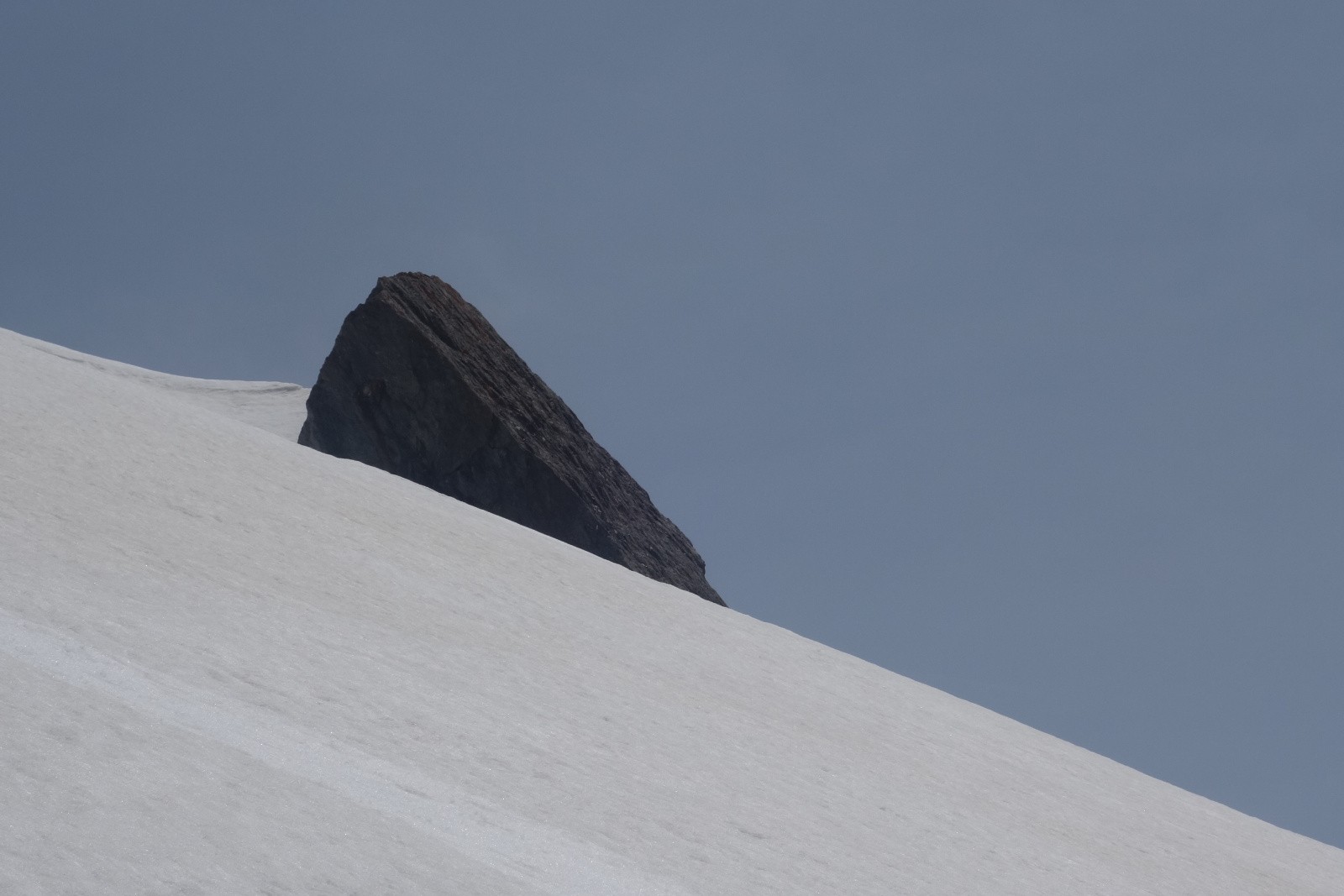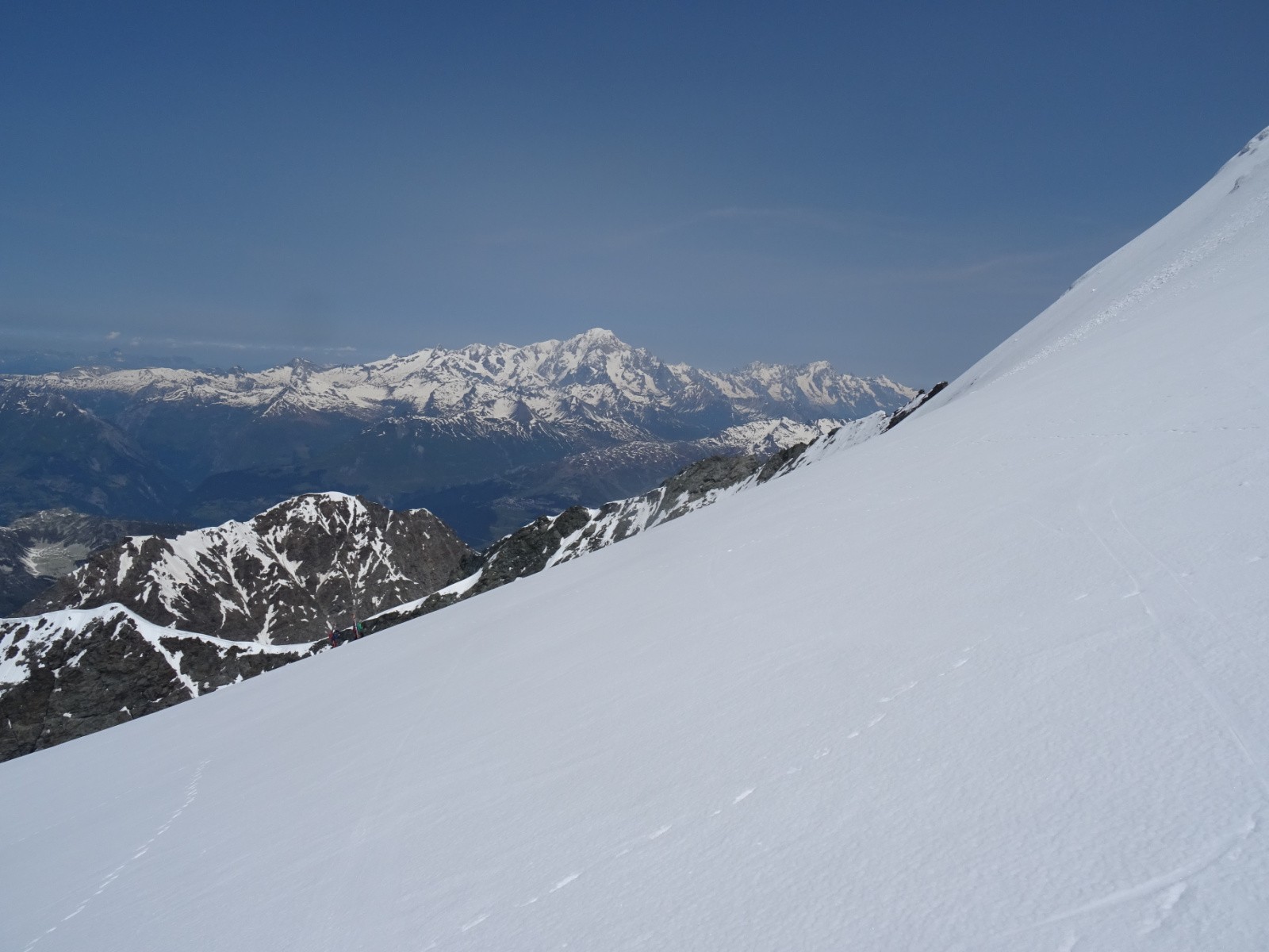 Une douzaine de pèlerins vers le sommet, dont 2 alpinistes, 2 italiens (skitouriens visiblement) un Sylvain (salut électronique ;-) !), un couple qui n'a pas suivi nos conseils de descendre par le glacier du Geay (crainte de portage long... pourtant le retour par le col des Roches était assurément peu agréable en orientation Nord), et deux courageux qui peinaient visiblement peu après nous mais qui ont courageusement persévéré jusqu'au sommet à pas comptés (bravo !).