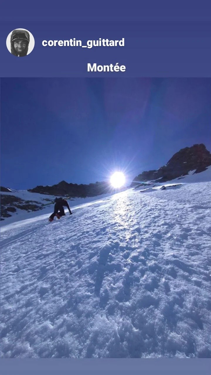 Après la Lenzspitze et le but à l'Hohbarghorn on cherche une face mythique à la journée, on change de vallée avec Corentin et on s'installe pour un dodo. Départ 4h, la neige est loin, 2700m alors on porte un moment, notamment 550m tout droit dans l'herbe. Gros regel ensuite plutôt efficace. On arrive aux maisons blanches tranquillement à 8h. Attaque rimaye vers 8:30. La face déroule c'est béton puis on faiblit un peu et moins rapide à chercher le cheminement sur la glace pour pouvoir la skier quand même. Sommet bien venté on n'y restera que peu. Le cone sommitale bien carton puis la glace nous réveille comme il faut. On était prévenu personne n'a skié encore du sommet cette année. La glace est nue par endroit et on doit traverser de manière légère en se faisant un peu balayer. Pas le droit à l'erreur c'est tellement béton en dehors de la glace .. sortis de la glace c'est plus détendu qu'on descendra la suite mais tellement physique avec du relief que l'on fera pas mal de pauses malgré nous. Jérémie Heitz style ce n'est pas pour aujourd'hui. Arrives en bas c'est une moquette merveilleuse de la rimaye jusque nos baskets que l'on s'amusera le plus. Une face mythique de plus où je reviendrai sans doute pour la skier de la manière dont elle doit l'être.