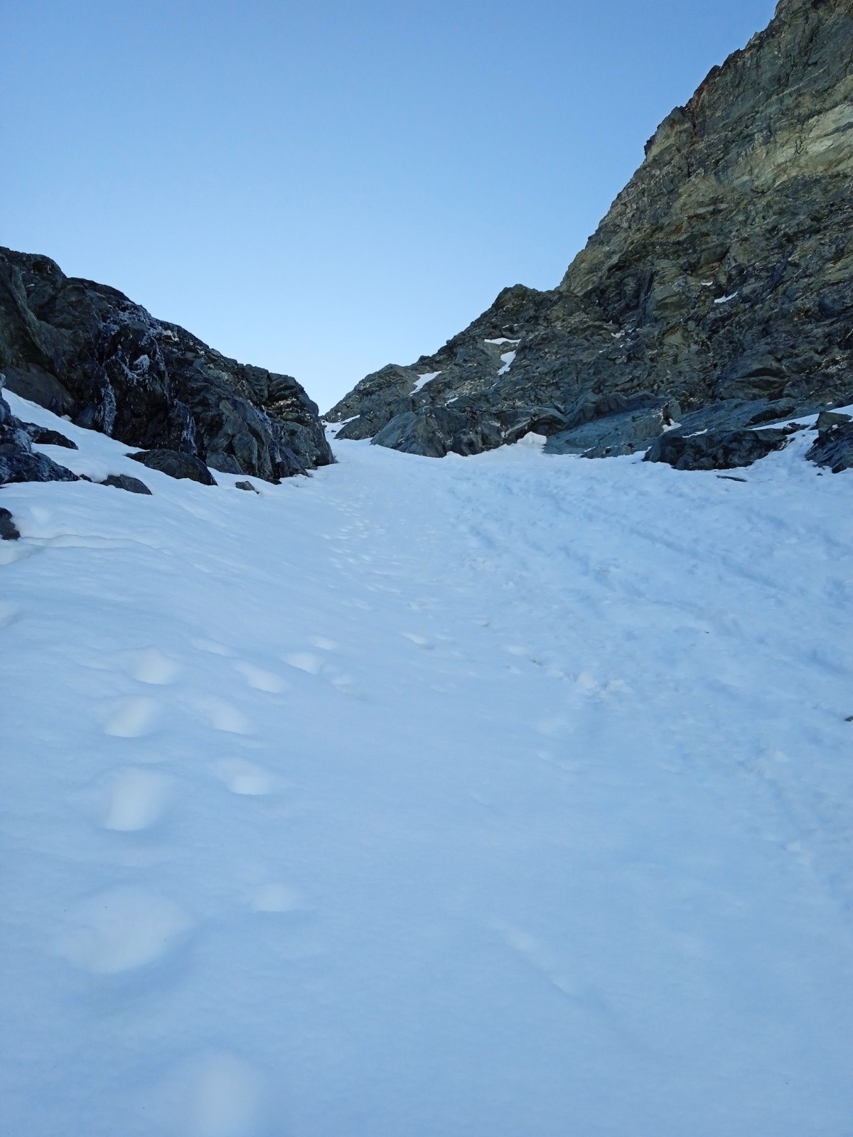 Conditions pour le ski : Infâme dans la face. 30m de glace mais skié entre l'etroiture et l'élargissement de la face. Carrelage avec relief ensuite.