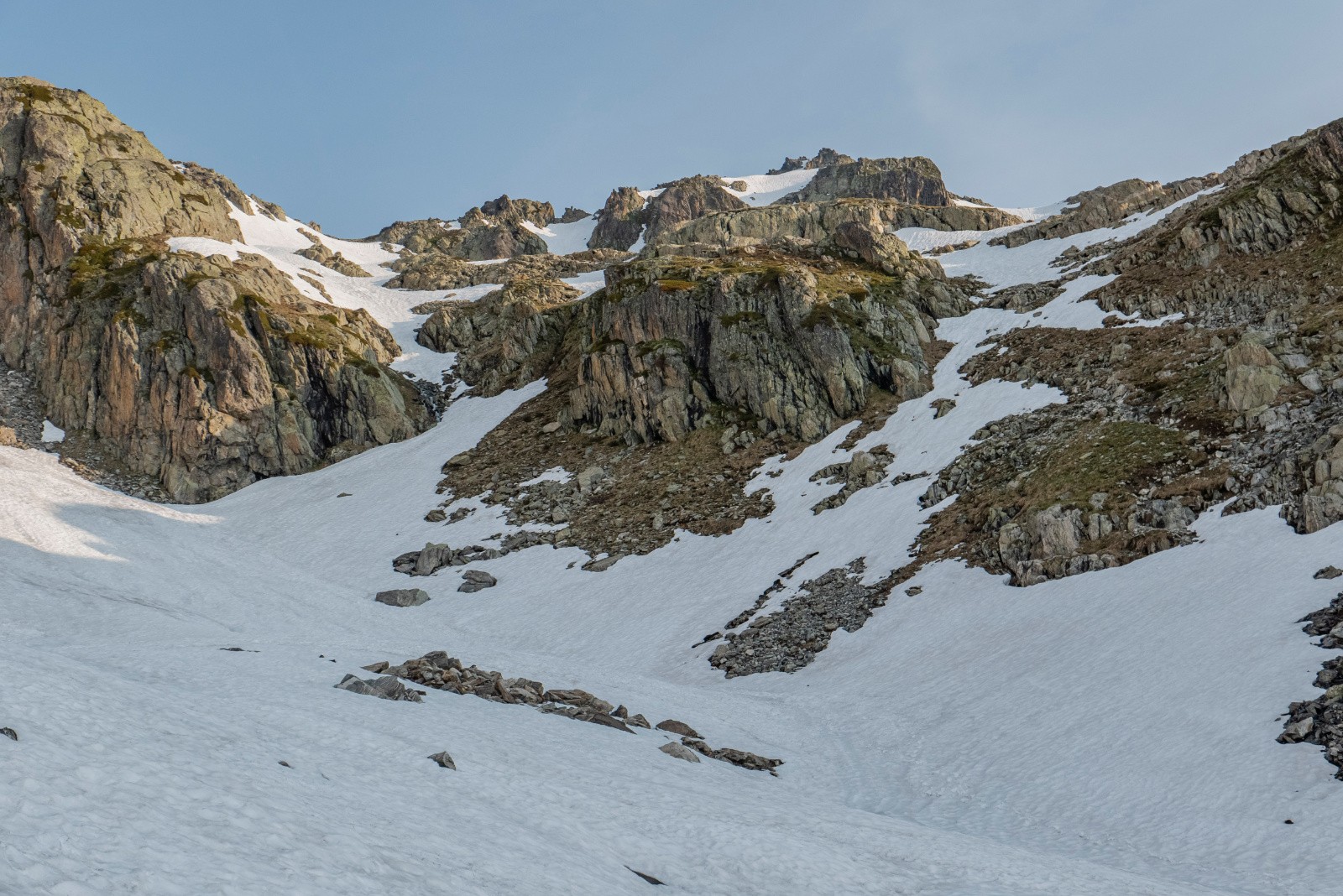 Pas du grand ski à cause des reliefs sur la neige mais en visant bien on s'en sort honorablement, sauf en haut de la selle d'Arguille où c'est médiocre partout. Même une belle surprise facette au dessus du lac de la Croix en neige excellente sur 250 mD-! Pour la skiabilité il aurait fallu faire ce secteur 2 à 3 fois au lieu d'aller traverser jusqu'au bec d'Arguille...