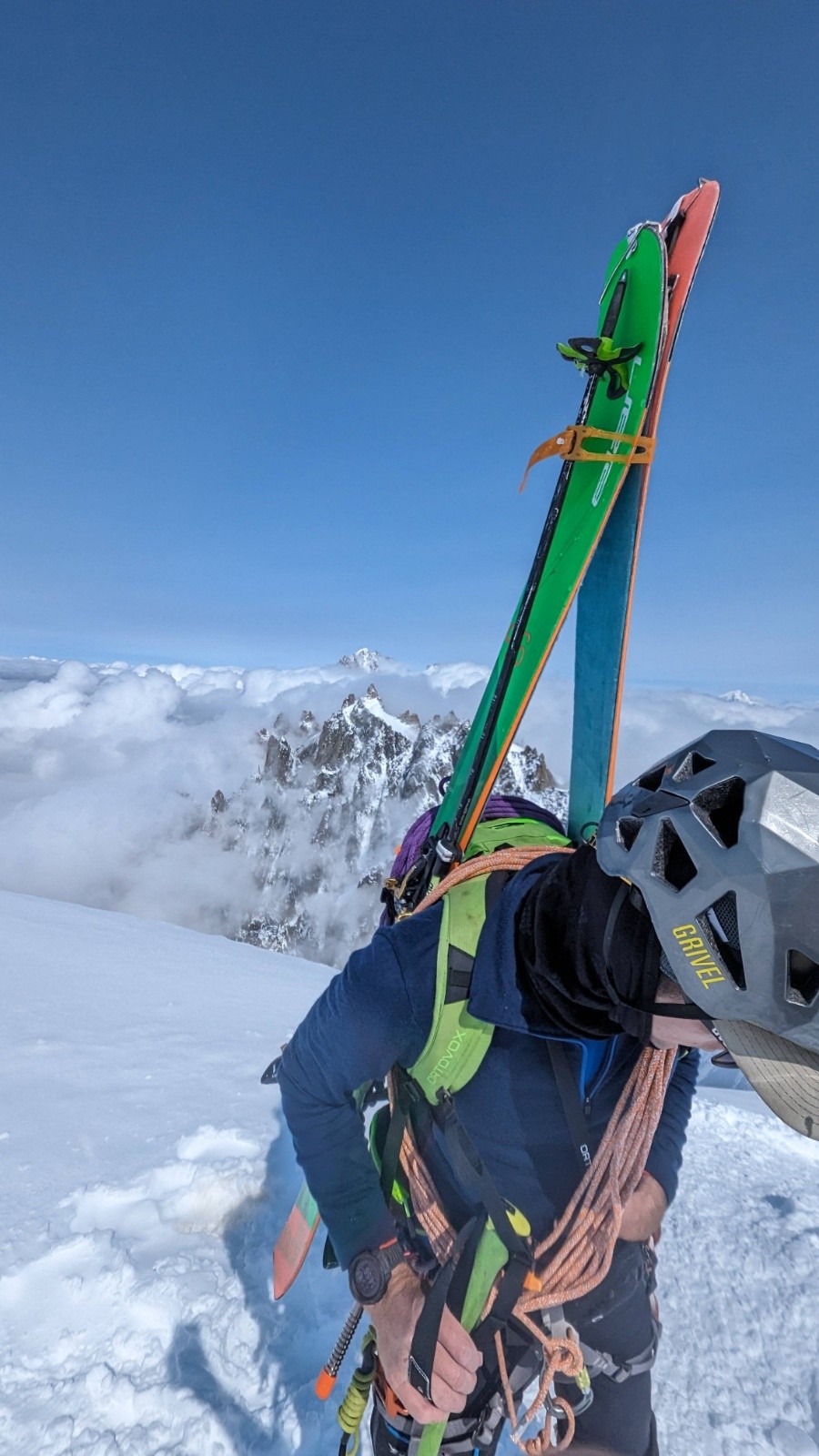 Itinéraire suivi : Aiguille du Midi, descente de l'arête, ski au col du midi (crevasses!). Puis trois fois montée/descente col du midi/juste en dessous le mur de glace au Tacul. Environ 200m d+.