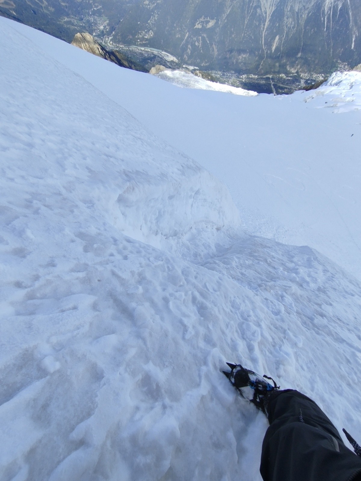 Départ skis aux pieds depuis le haut de l'arête de l'aiguille, bons virages en neige froide versant N. Je suis monté a la première rimaye du tacul faire quelques virages en dessous. Le haut de la VN du tacul n'es pas tracée et a l'air bien chargée.