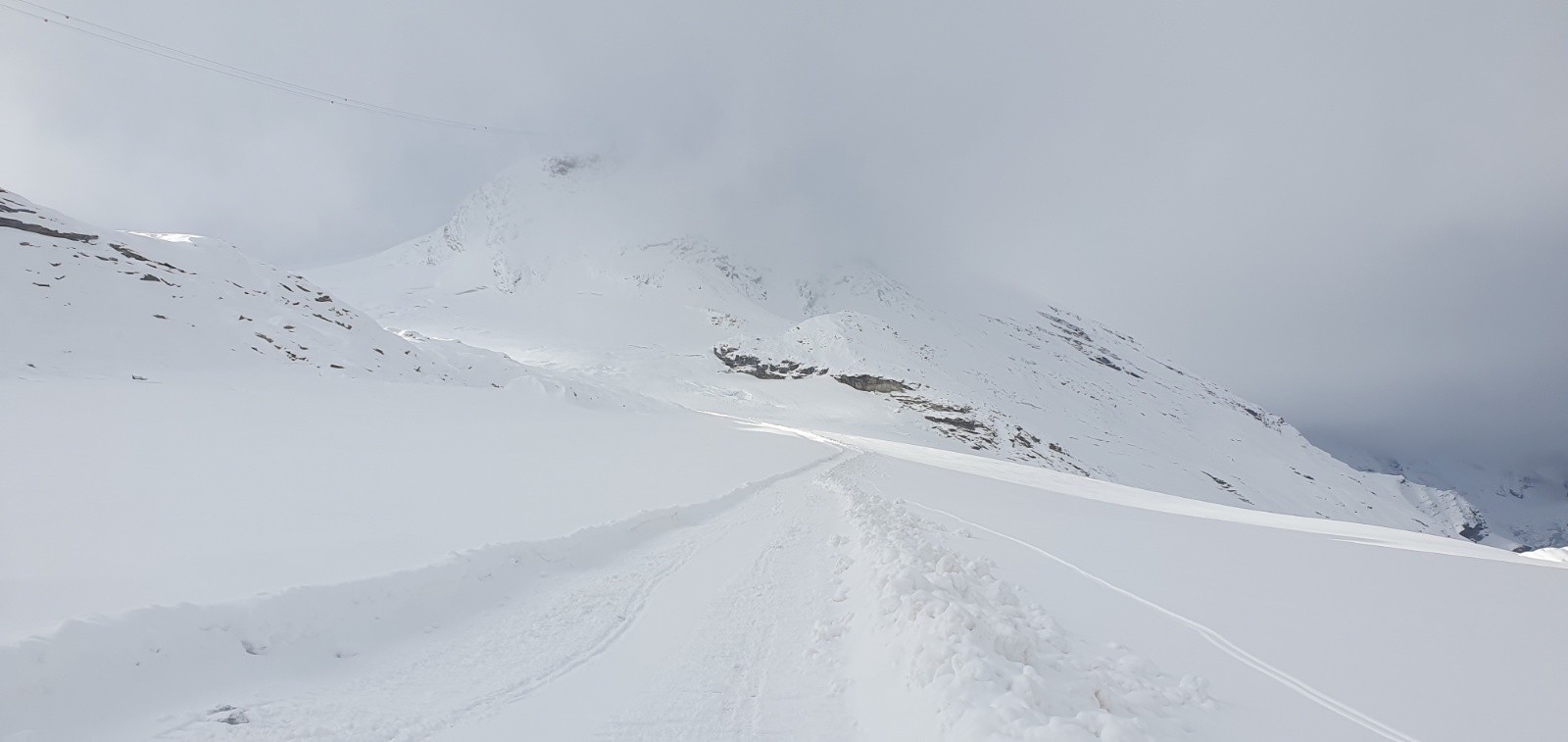 Météo/températures : Belles éclaircies en début de matinée, bouché de nouveau vers 11h avec petites chutes de neige sur le glacier, des éclaircies sur Tignes au retour vers 13h avant la pluie