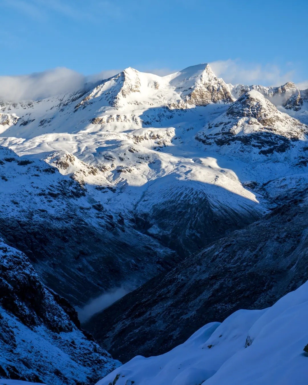 La moitié inférieure du glacier du grand Mean est en belles conditions, neige dense 30cm facile a skier. La partie supérieure est sculptée par le vent, un peu croûtée et de toutes façons trop plate pour faire des exploits à la descente.