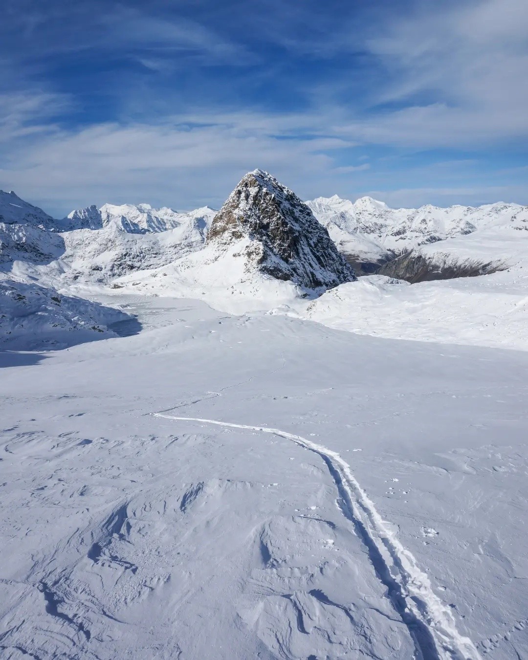 Remontée a ski du glacier grand mean jusqu'au col San Stefano et retour sur le même tracé.