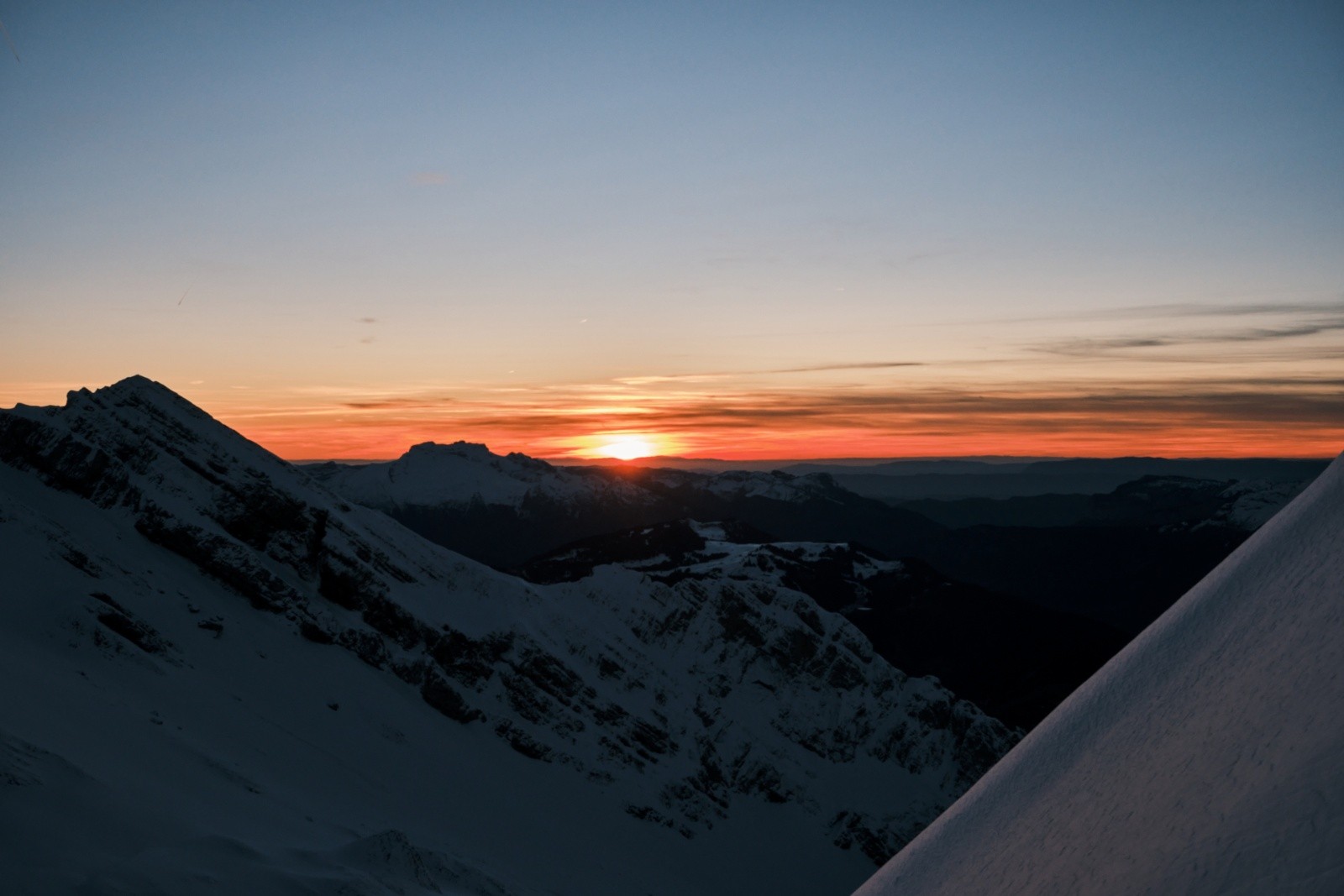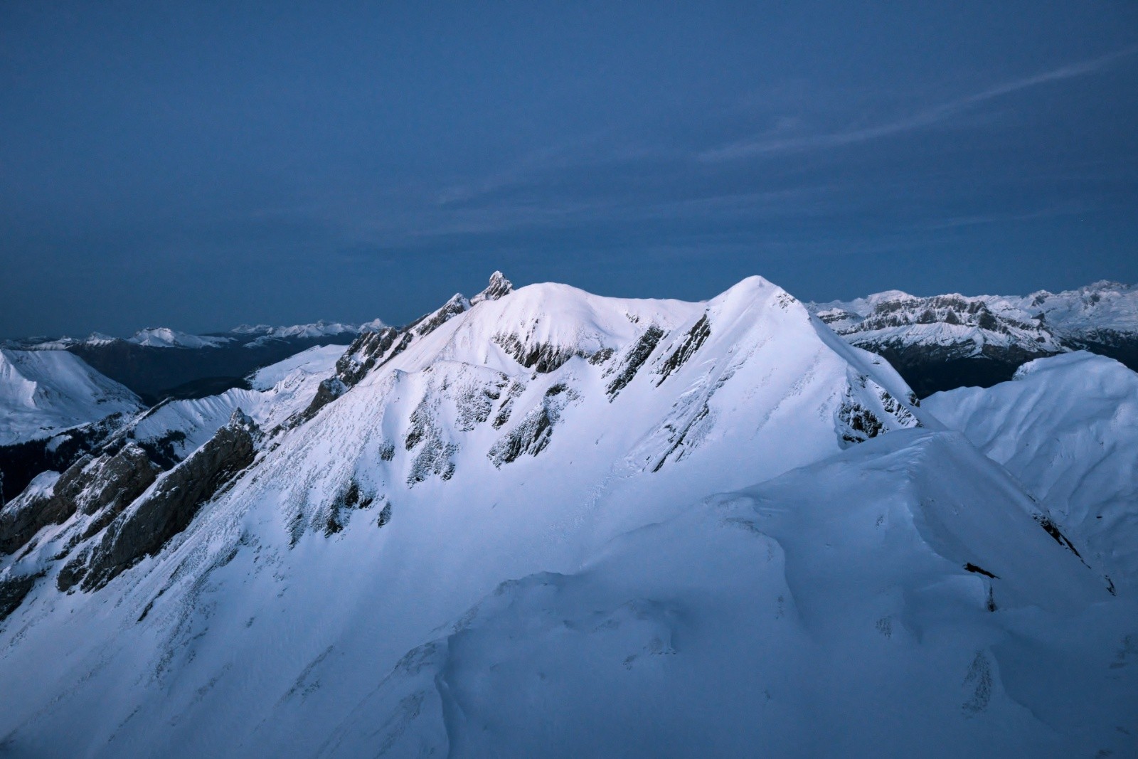 Conditions pour le ski : poudreuse dense travaillée par le vent au dessus de 1800