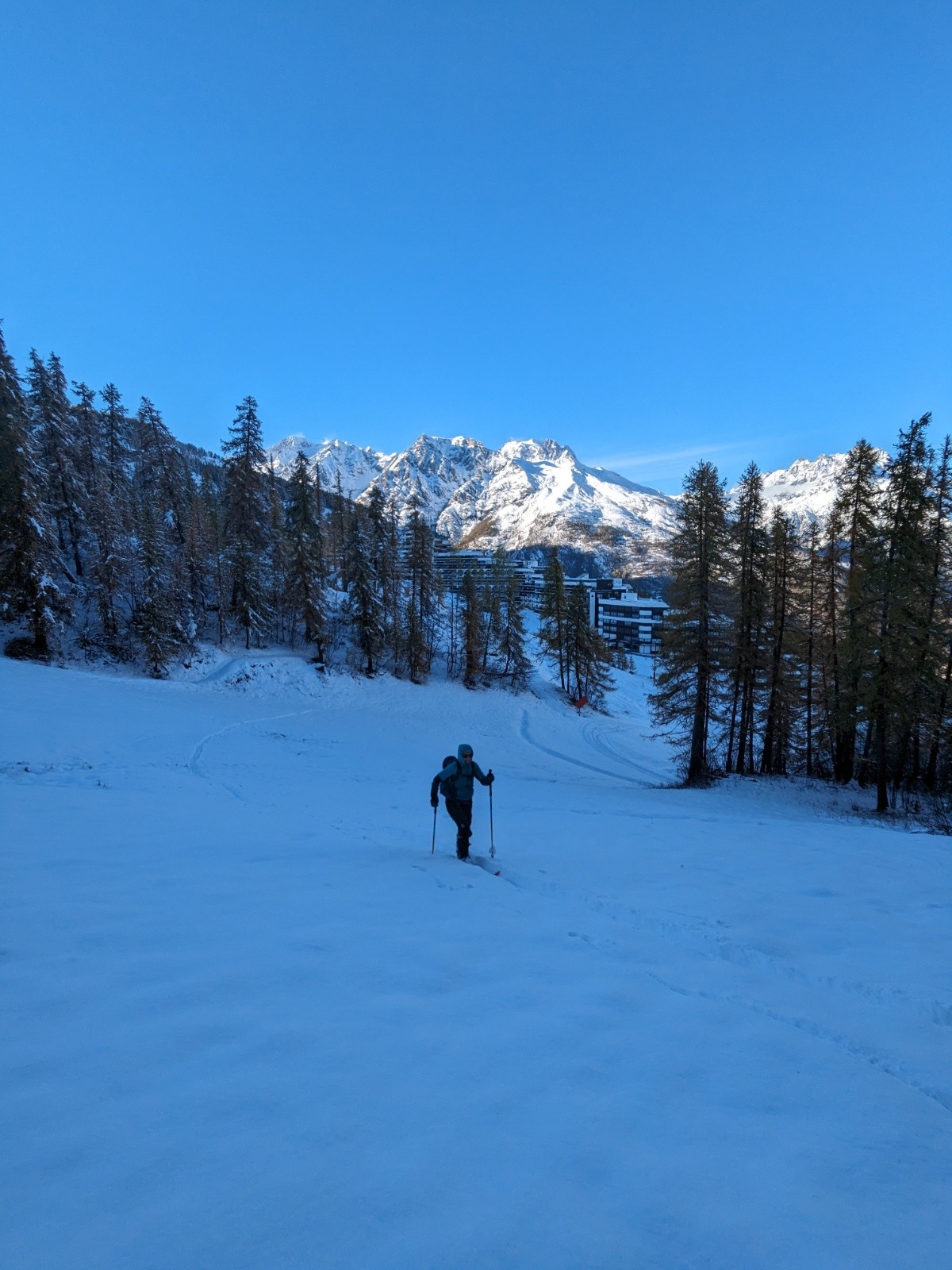 Conditions pour le ski : ça manque carrément de neige. On aurait dû partir de 1800. En bas il y a 20 / 30 cm sur l'herbe gelée... Et quelques cailloux.