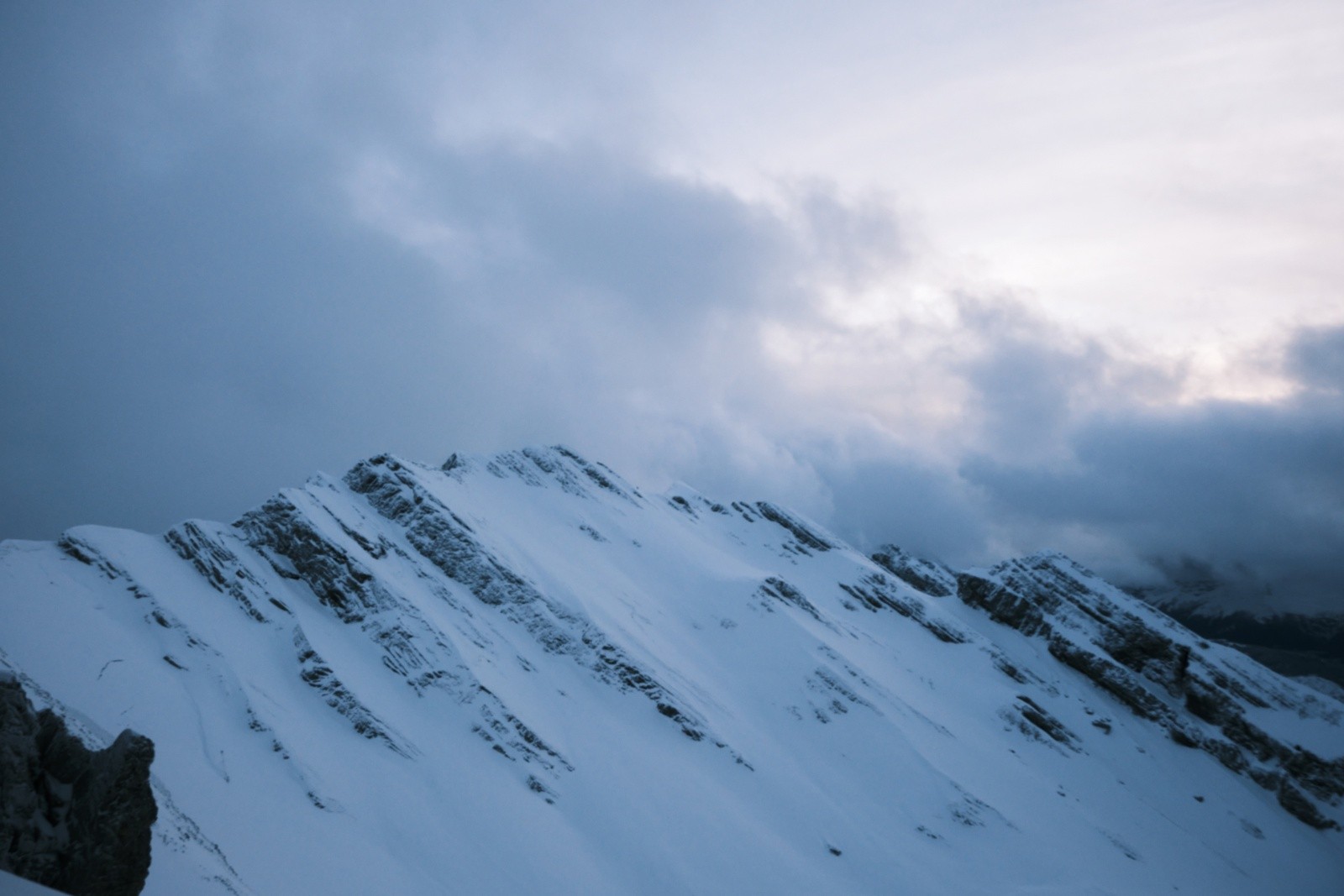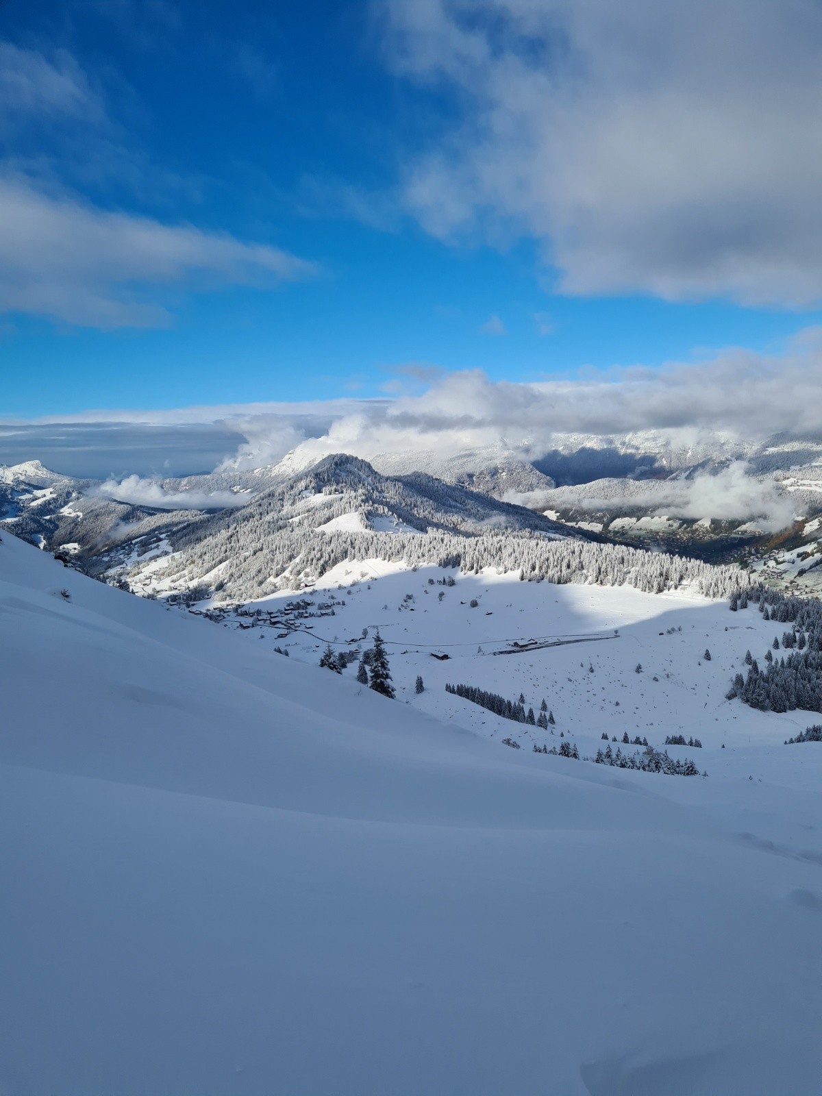 Conditions pour le ski : 40cm de poudre lourde en dessous de 1800 et maté par le vent au dessus .