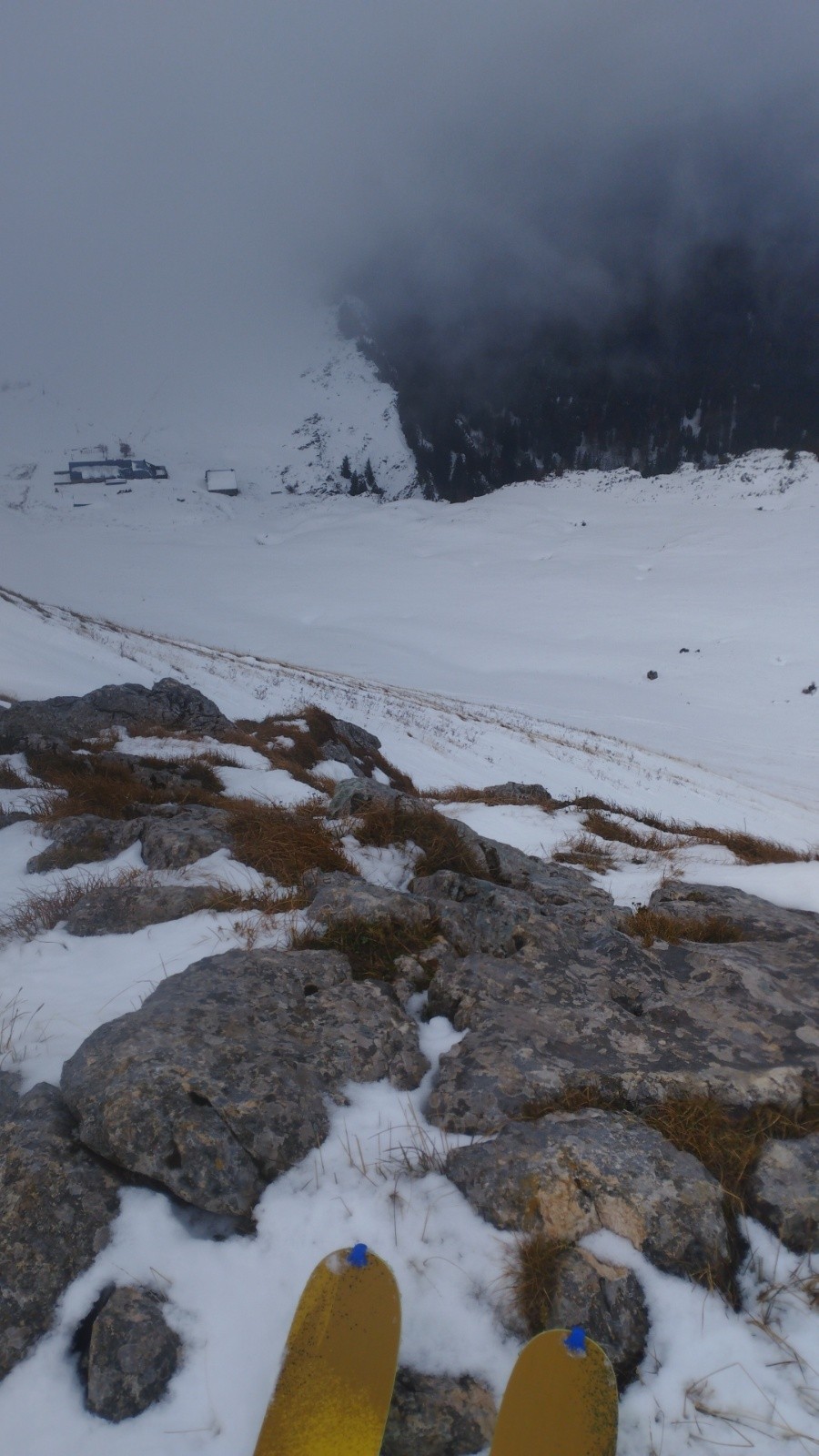 Altitude de chaussage/déchaussage : 1400 /1400 on prend pas de vitesse sur la descente donc ça le fait même si pas beaucoup de neige.
