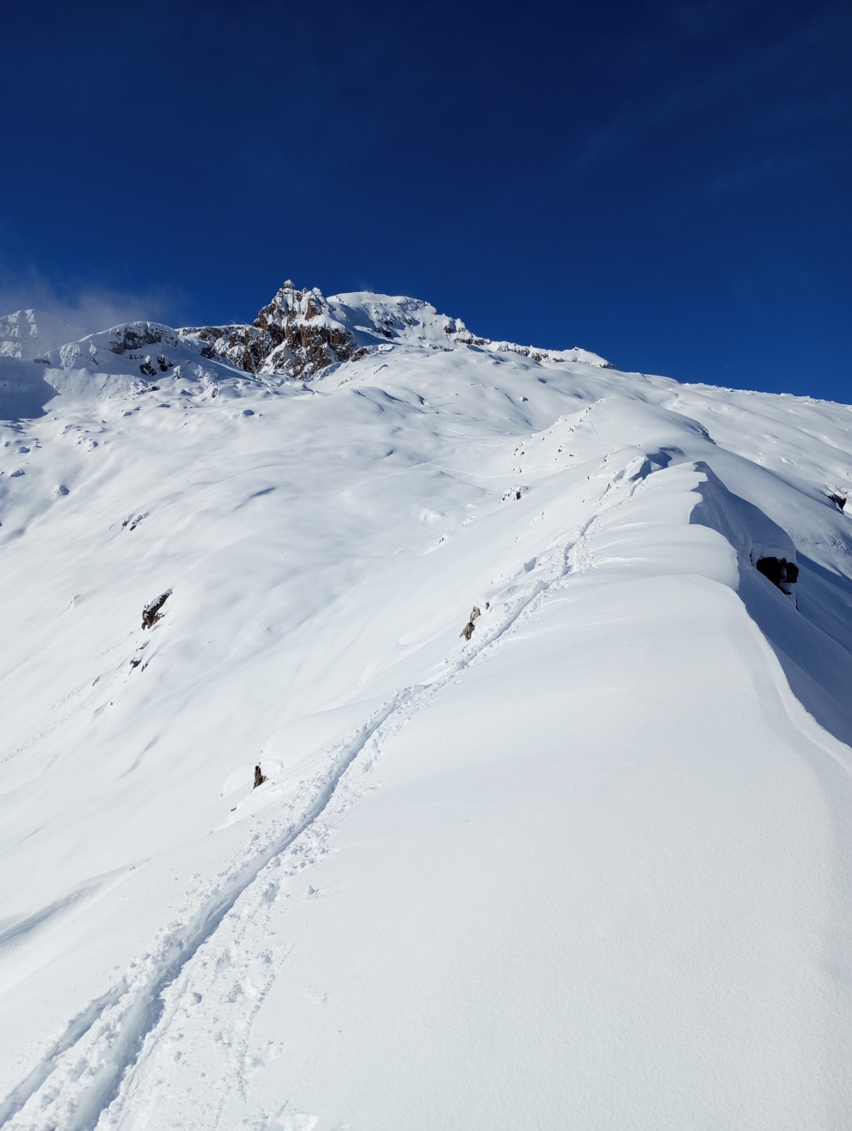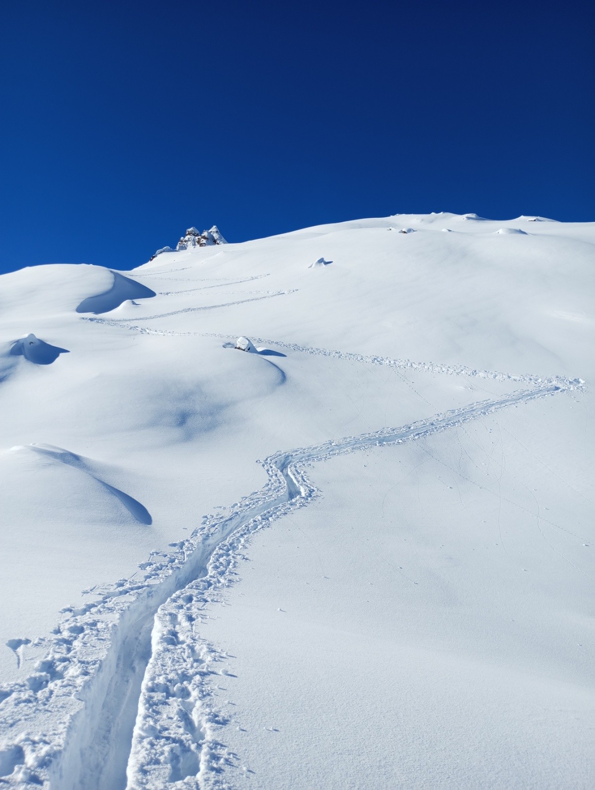 Quelle journée pour cette classique du coin , départ ski au pied de puy Aillaud par les pistes , juste ce qu'il pour cacher l'herbe , puis plus on monte c'est profond , poudre compacte sous le sommet , puis neige de cinéma tout le long du vallon , léger et profond.