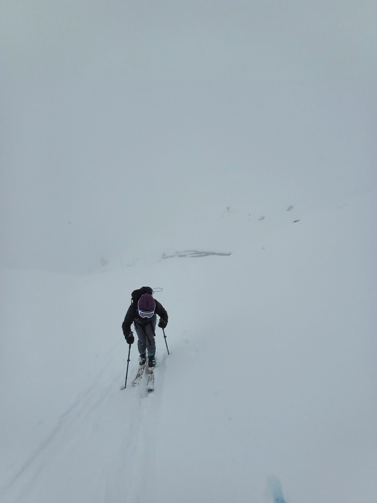 Météo/températures : très peu de visibilité avec de la neige et du vent toute la journée, éclaircies à partir de 16h