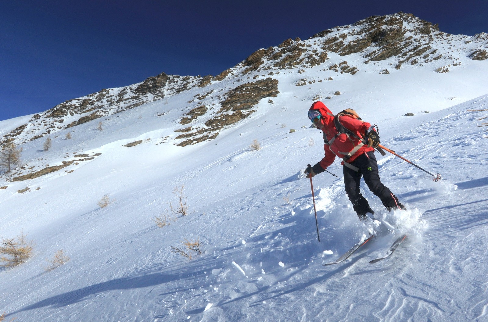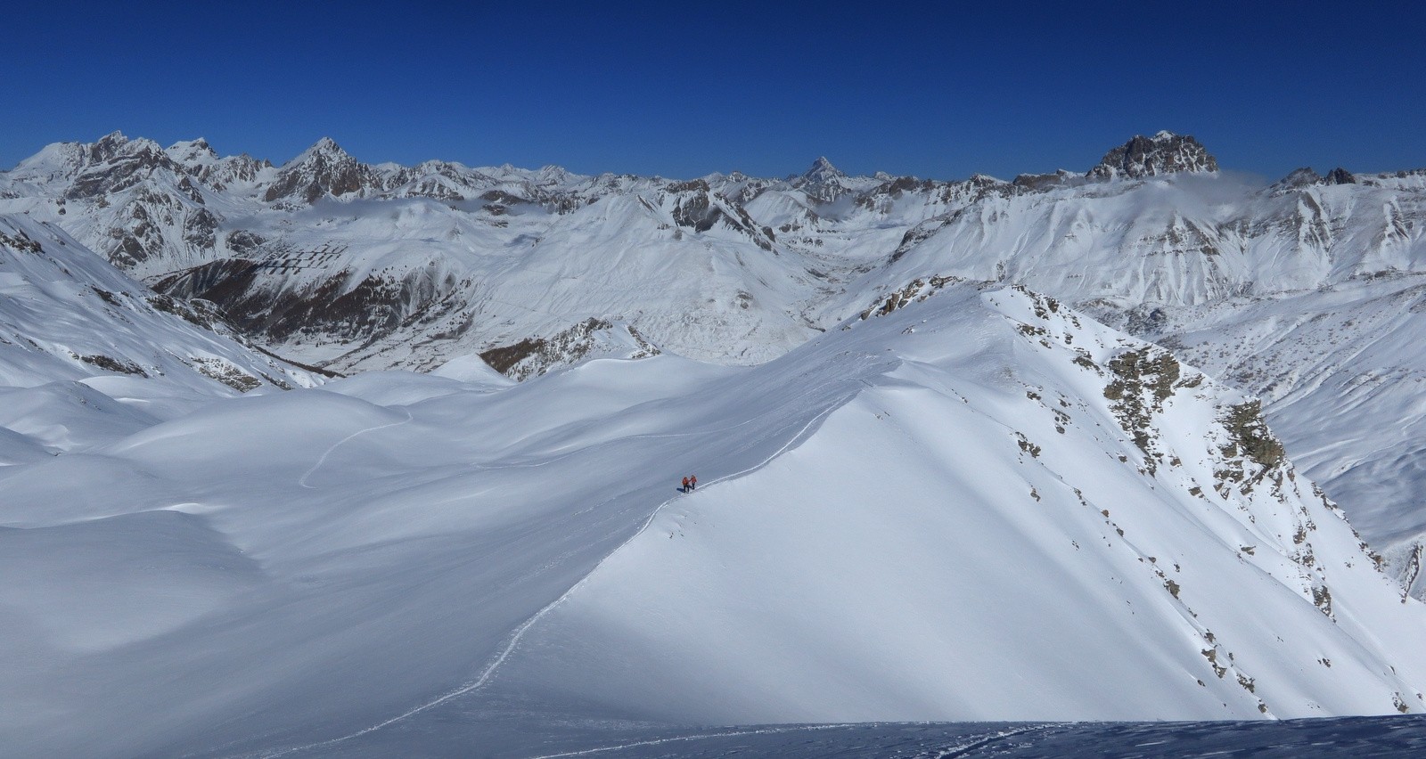 Montée tranquille par le long et désert Vallon de Parassac, avec un traçage parfois éprouvant sur les zones de neige densifiée par le vent.