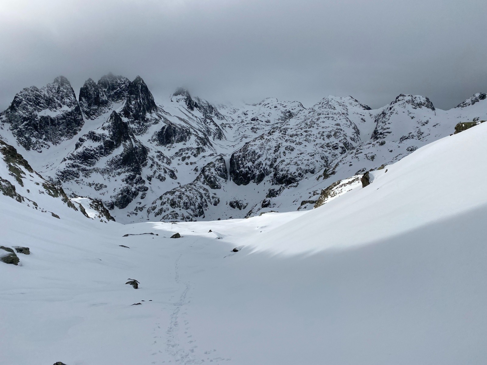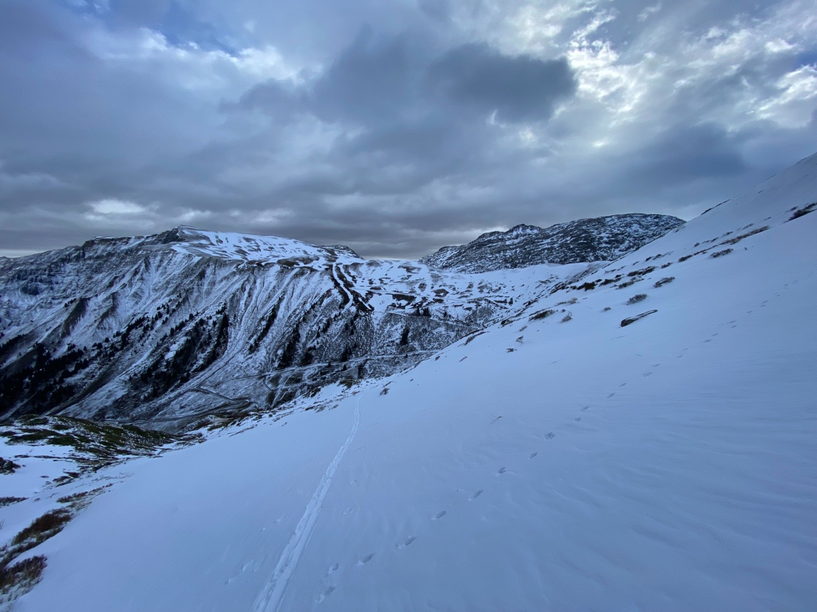 Conditions d'accès/altitude du parking : Route officiellement fermée. Je me suis arrêté 500m avant l'épingle à 1767m pensant qu'il y aurait plus de neige, mais en fait, pas de cumul sur la route, on peut monter jusqu'au départ (avec pneus neige pour les derniers mètres).