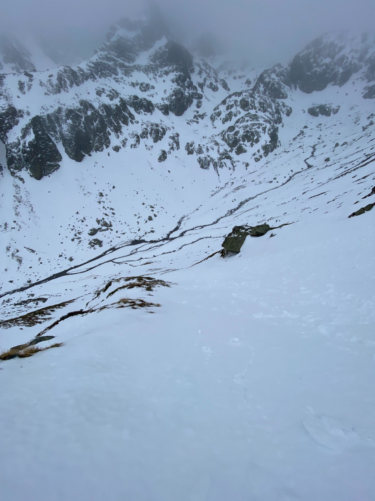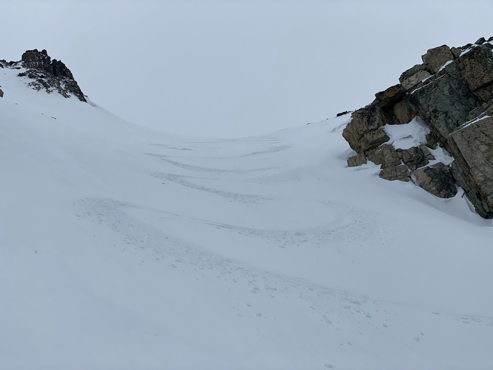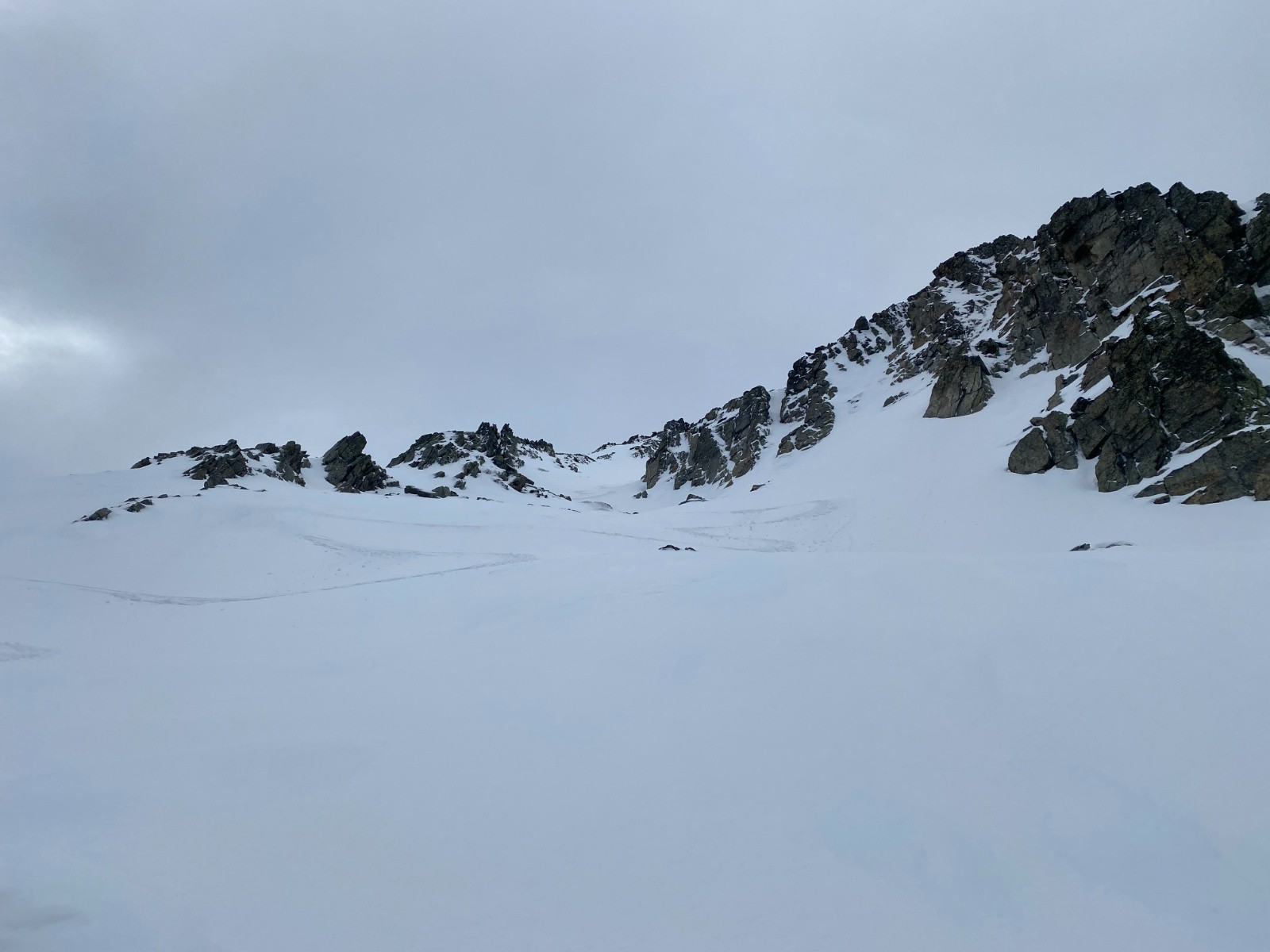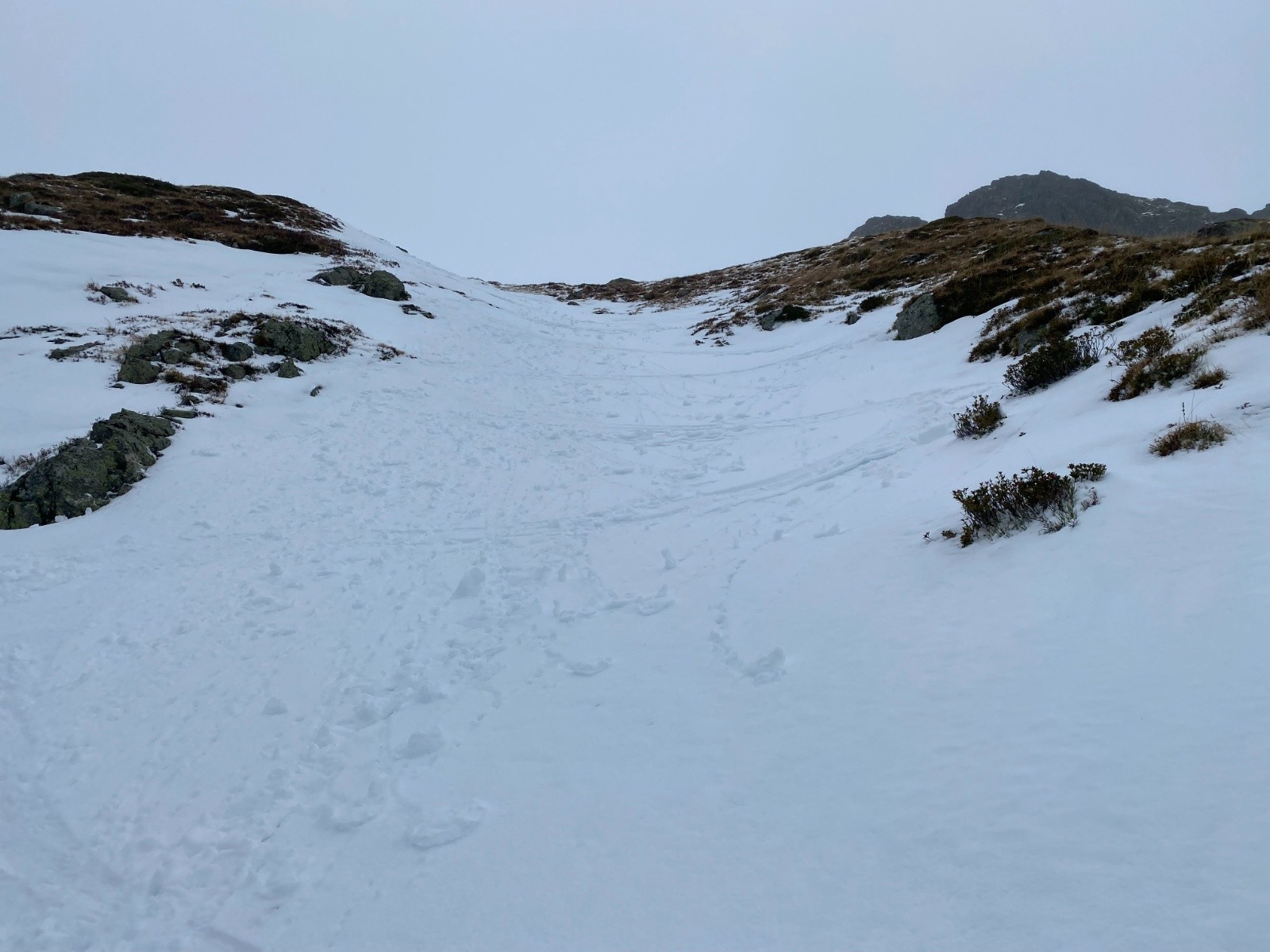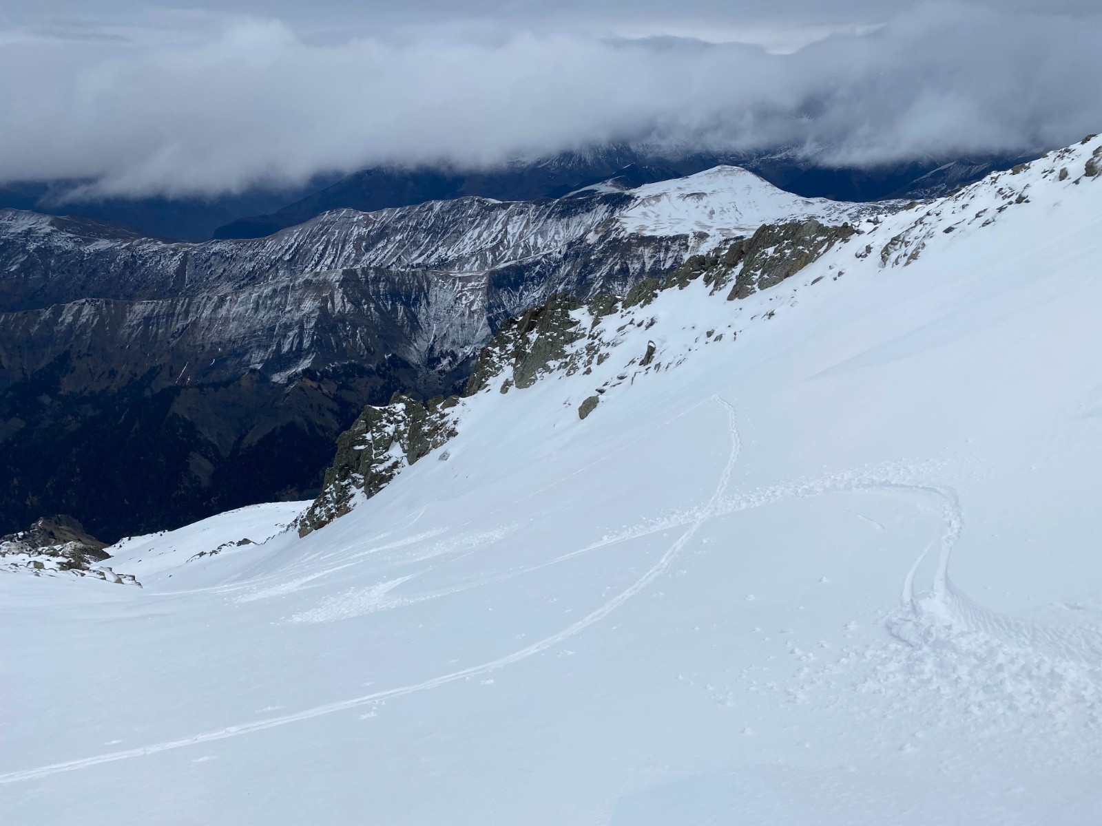 Avec une visi plus optimale, la skiabilité aurait pu passer à correct. Après le lessivage, on arrive encore à skier dans ce coin avec un portage réduit.