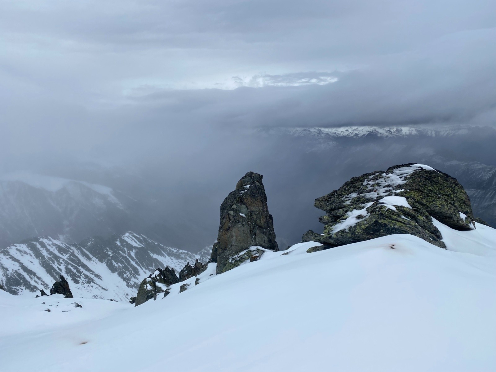 Météo/températures : ouppps, pas vraiment ce qui était prévu. Se couvrant rapidement en matinée avec des sommets bouchés (La Sambuis sera globalement préservée). Pluie en fin de matinée avec LPN à 2600m. Vent de Nord fort au sommet.