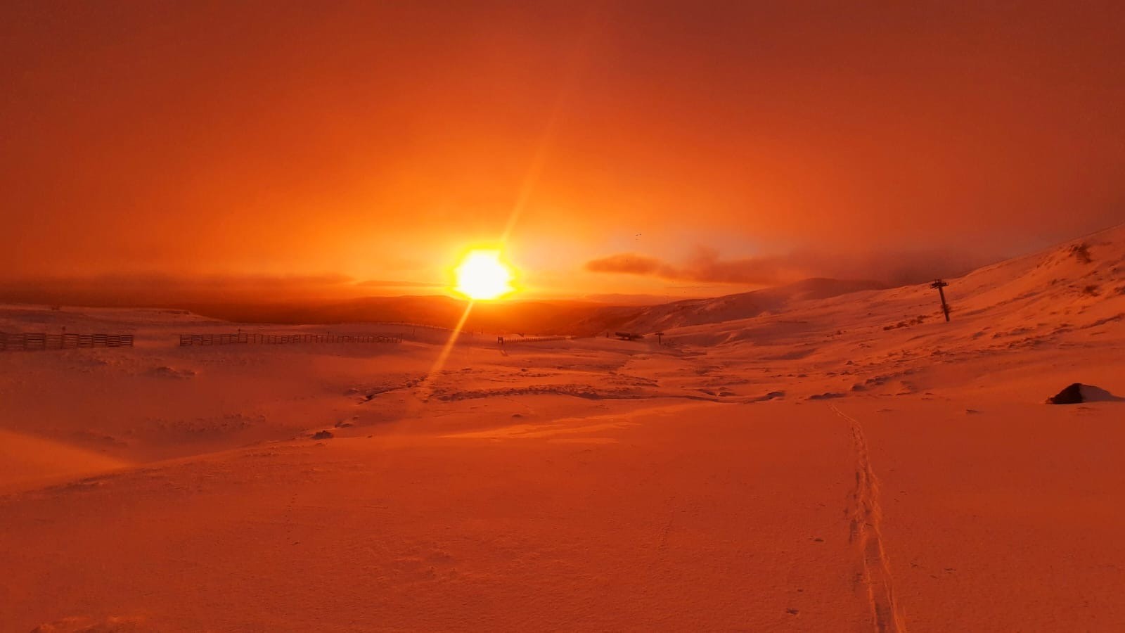 Le levé de soleil majestueux sur le plomb et quelques centimètres de neige fraiche tombés sur fond dure nous font passer une matinée 3 étoiles