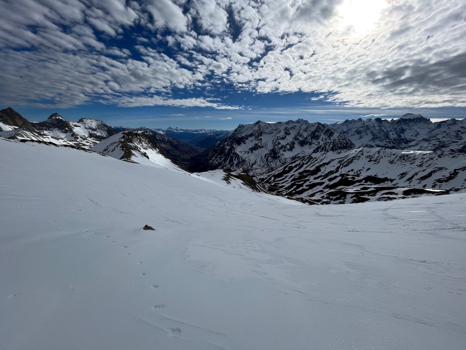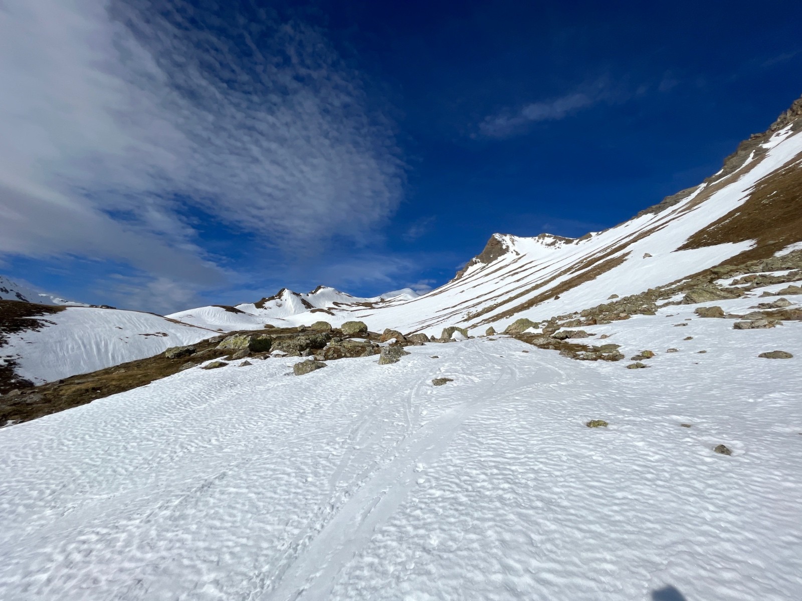Conditions pour le ski : neige dure, peu de décaillage avec le vent, excepté dans les pentes S-SE suffisamment raides, et celles comportant de la neige un peu sale (sable ?).