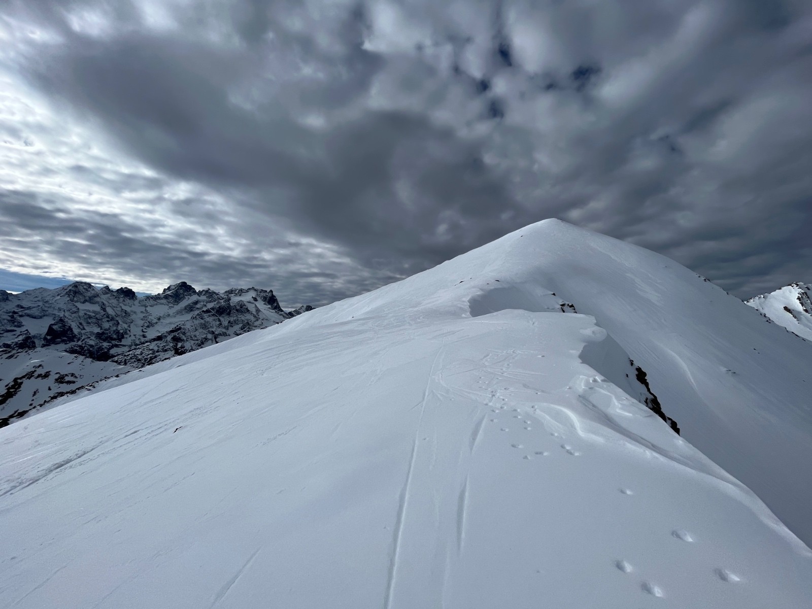 Activité avalancheuse : RAS sur l’itinéraire. Présence d’un belle cassure de reptation en versant NE du sommet.