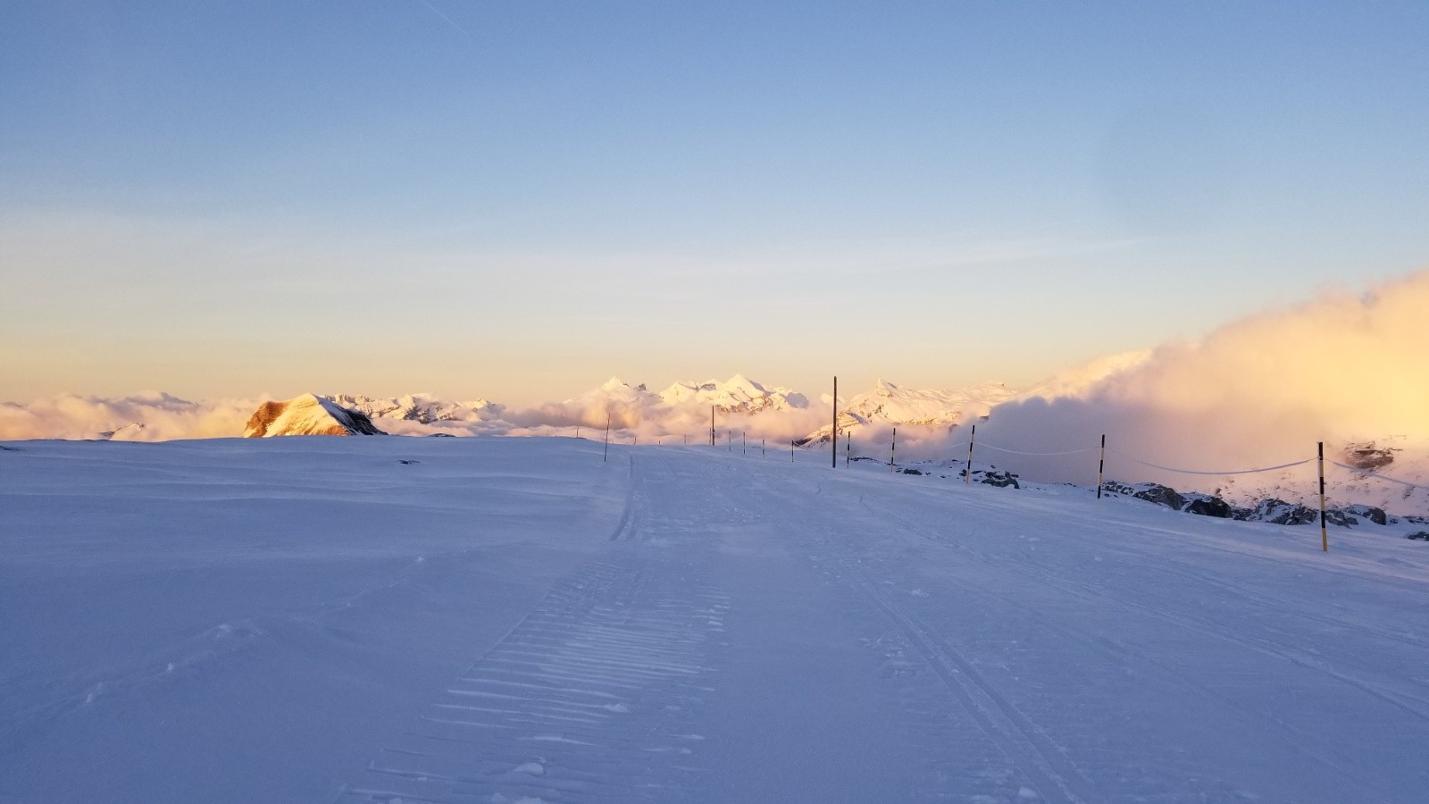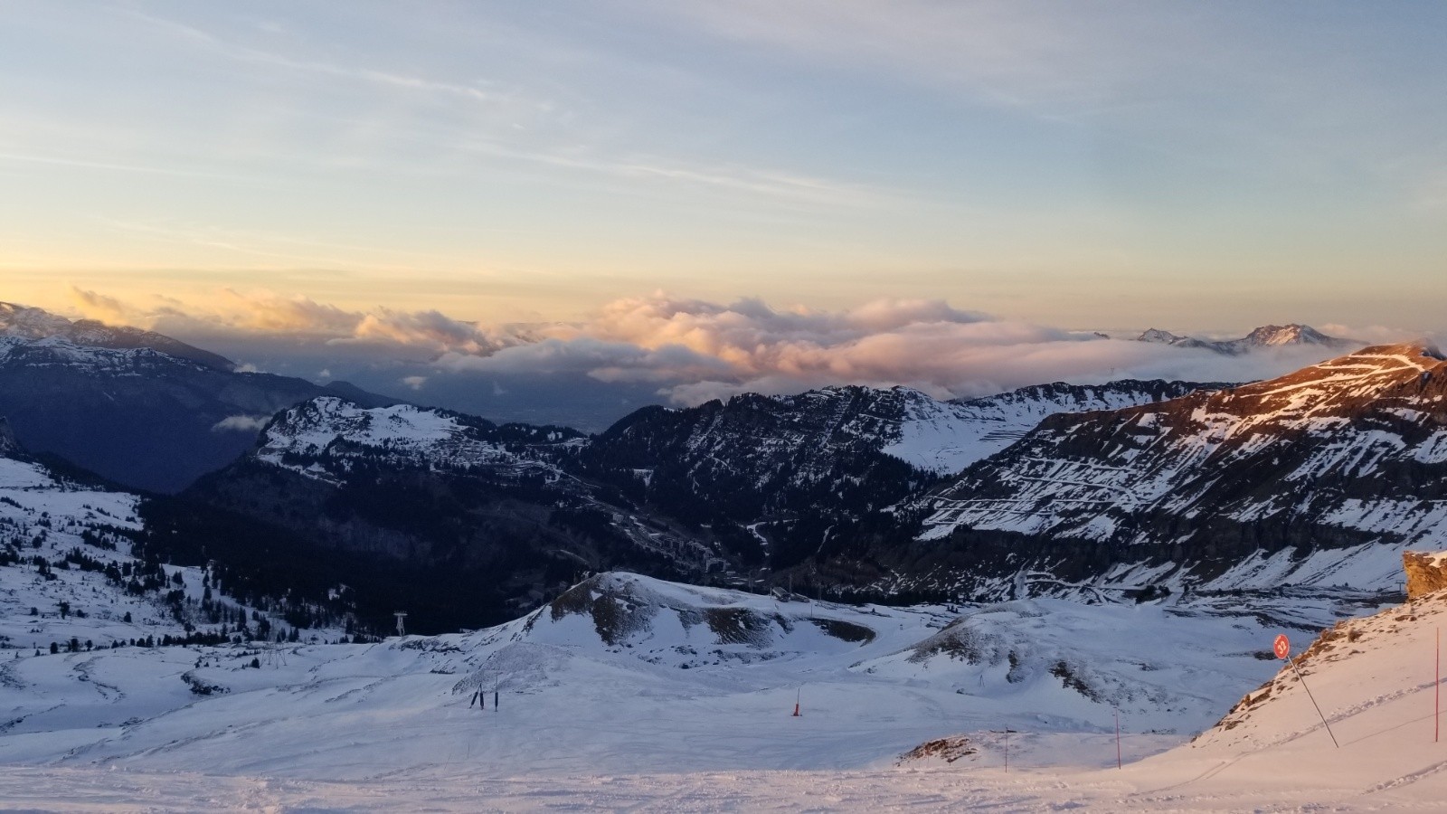 En même temps, ça reste une valeur sûre pour ne pas trop porter, et puis quand on est la tête dans le guidon, c'est joli, on ne voit pas les remontées mécaniques 😁 et au coucher de soleil, c'est encore mieux!