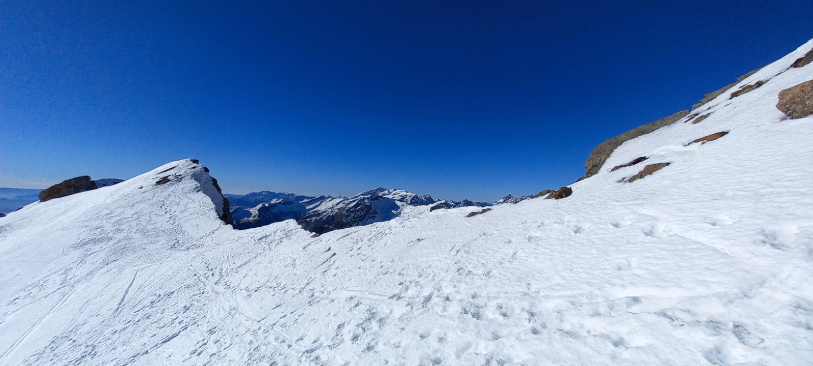Conditions pour le ski : Bon regel à la montée / Neige bien revenue dans les faces Sud / Enneigement correct à partir de 2100/2200 m en dessous c'est la misère / Gros vent sur les crêtes
