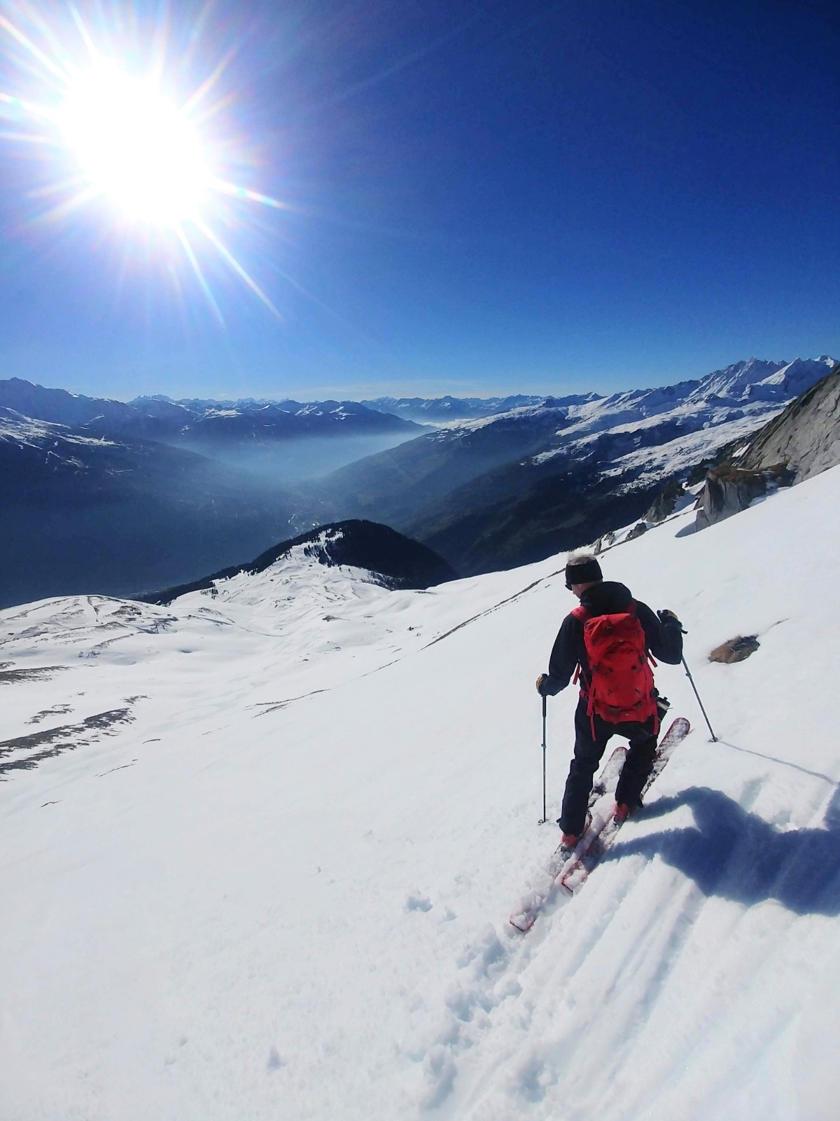 Conditions pour le ski : ski type printanier avec des pentes gelées le matin et un peu de fraîche dans les creux ou expo sud-ouest et un petit dégel de surface à la descente. les rives droites combes sont revenues alors que les rives gauches restent gelées et sont plus ravinées.