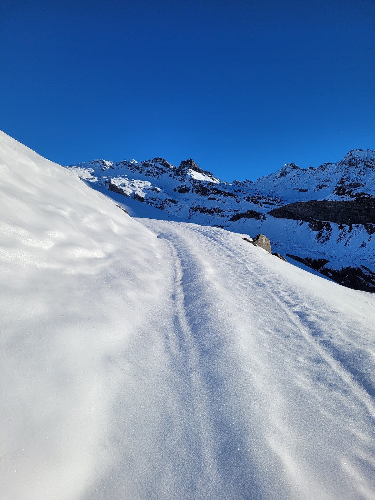 Météo/températures : Grand beau. Iso annoncé à 4000 mais j'ai comme un doute. Dès qu'on était à l'ombre ça caillait sévère, même au milieu de la journée. Sommet venté 20-30kmh.