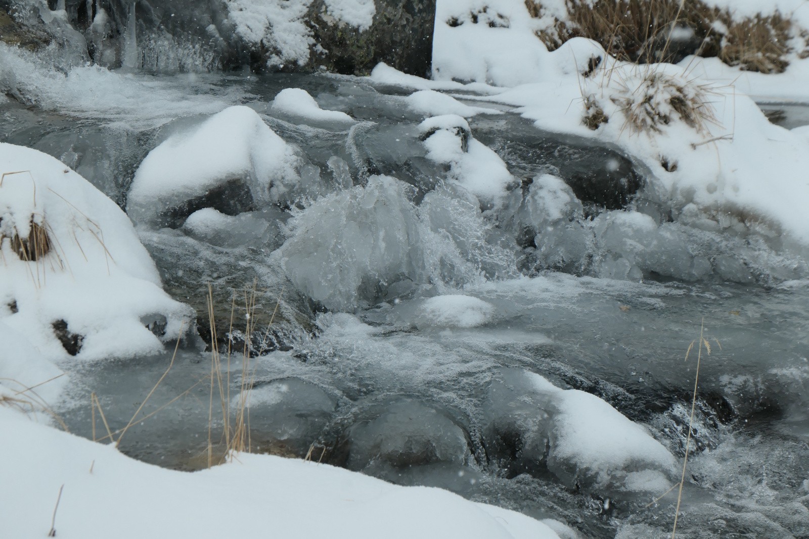 Météo/températures :Chutes de neige continues et visibilité réduite au-dessus de 1800m. Quelques éclaircie. Froid : iso 0°C vers 1000m, -2°C au départ.