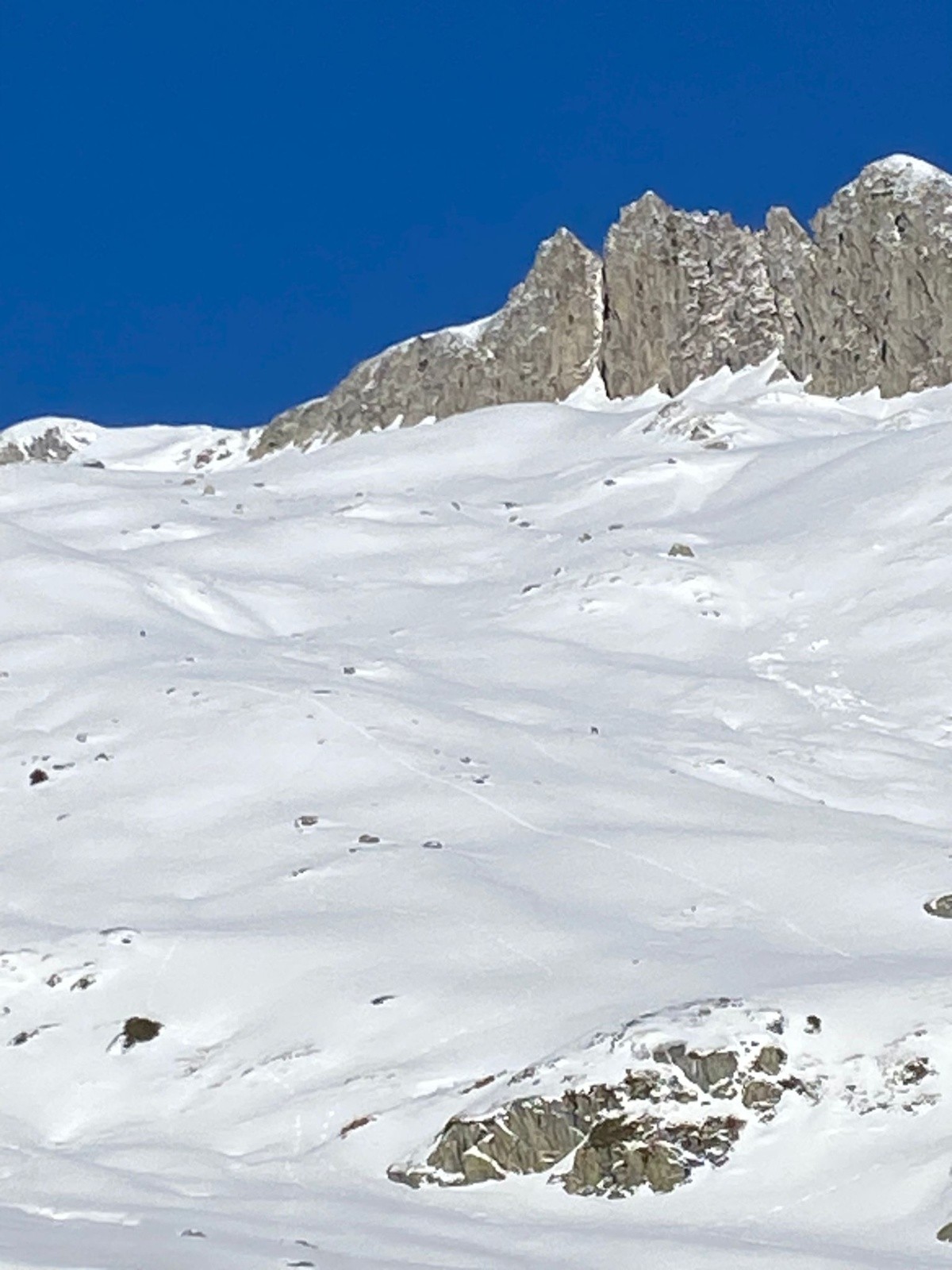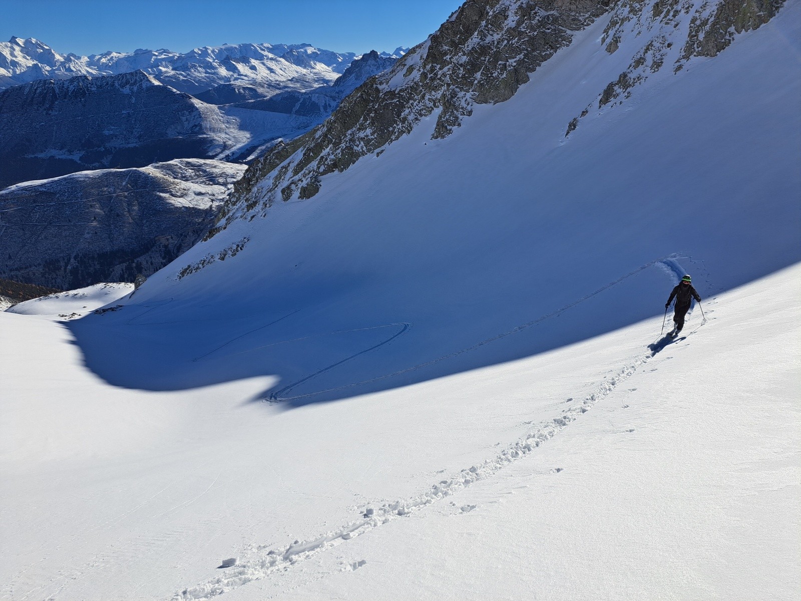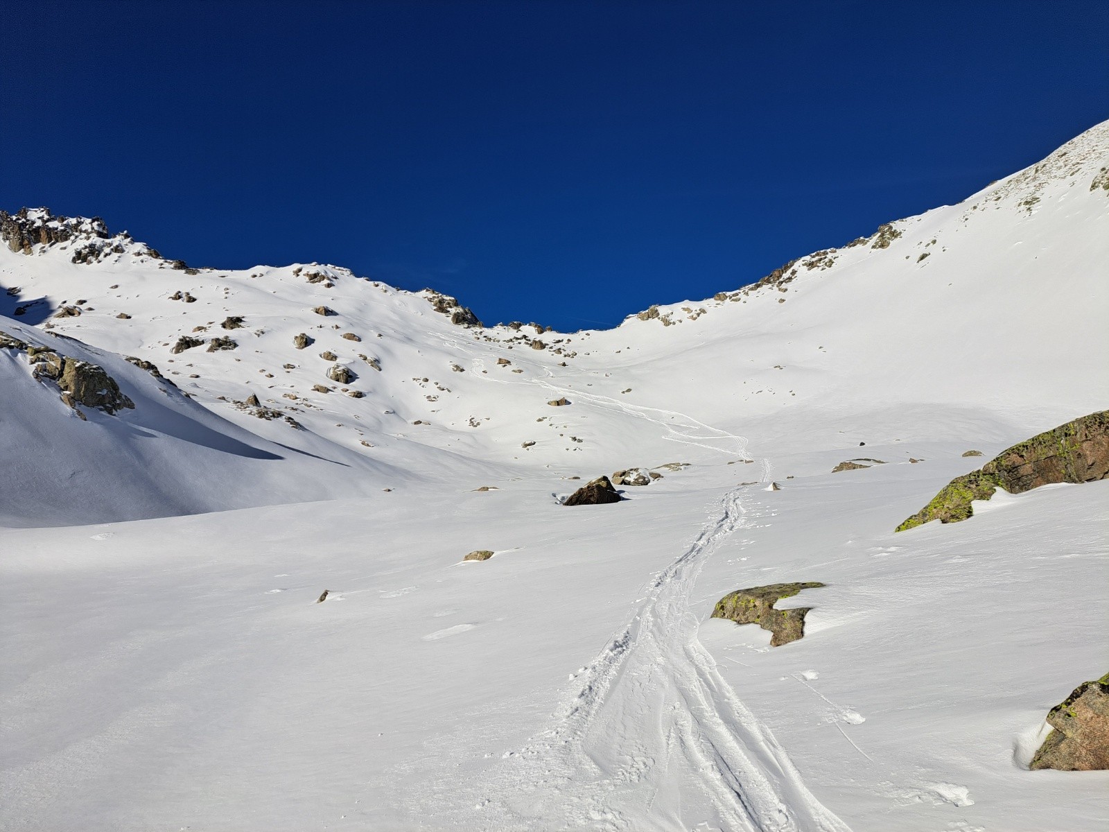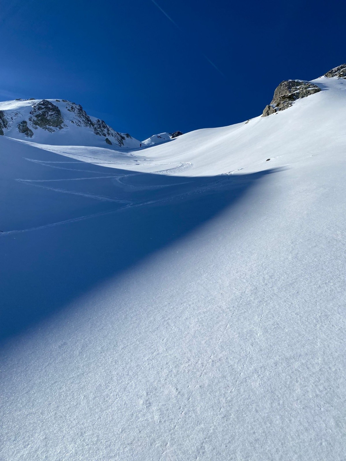 Un groupe devant nous pour le Rognolet qui nous a fait une belle trace. Bifurcation à 2150m pour s'engager dans les combettes jusqu'au Col François. Une belle sortie sauvage et du bon ski sur une neige vierge de traces ce qui est rare dans ce secteur.