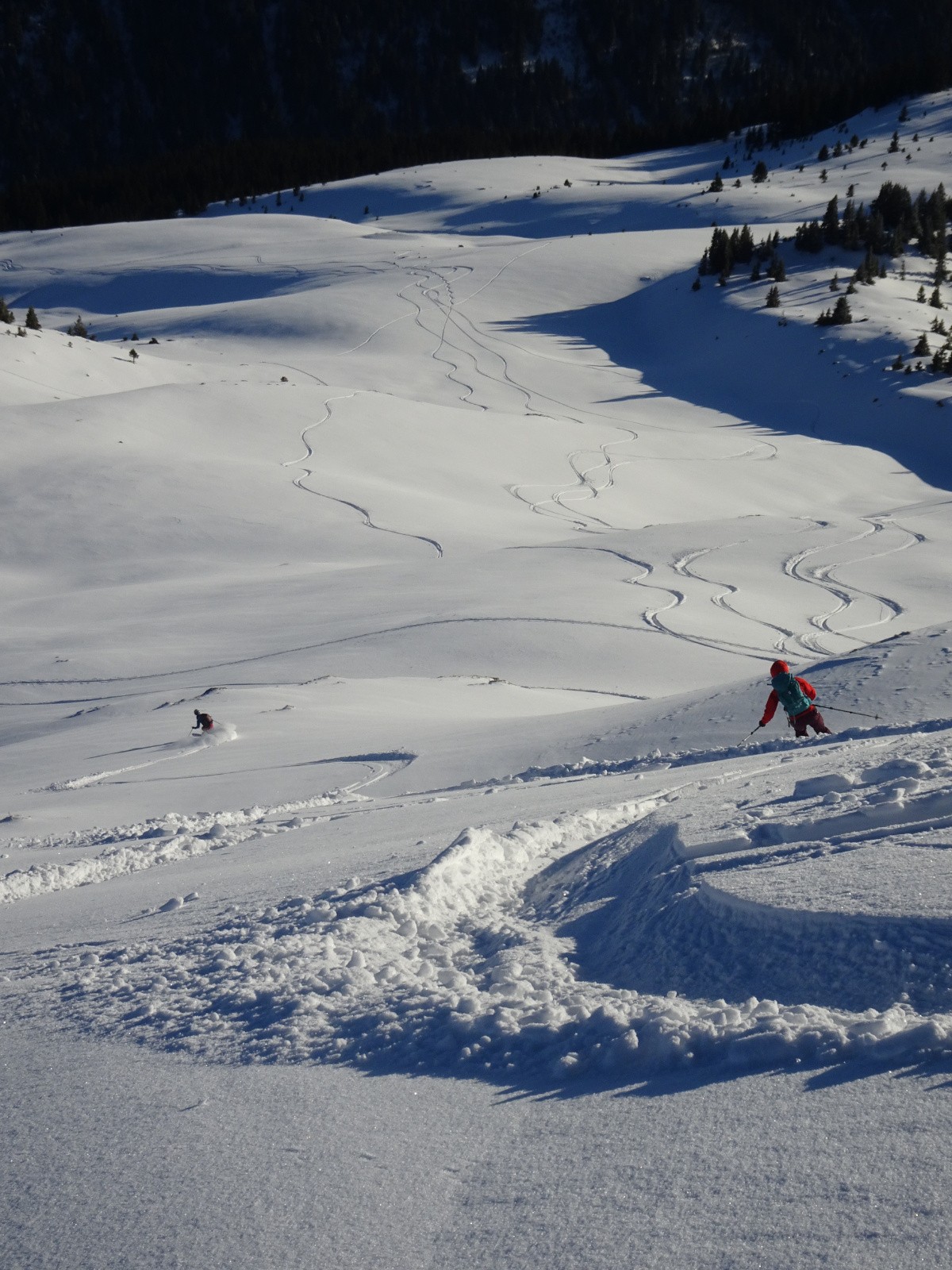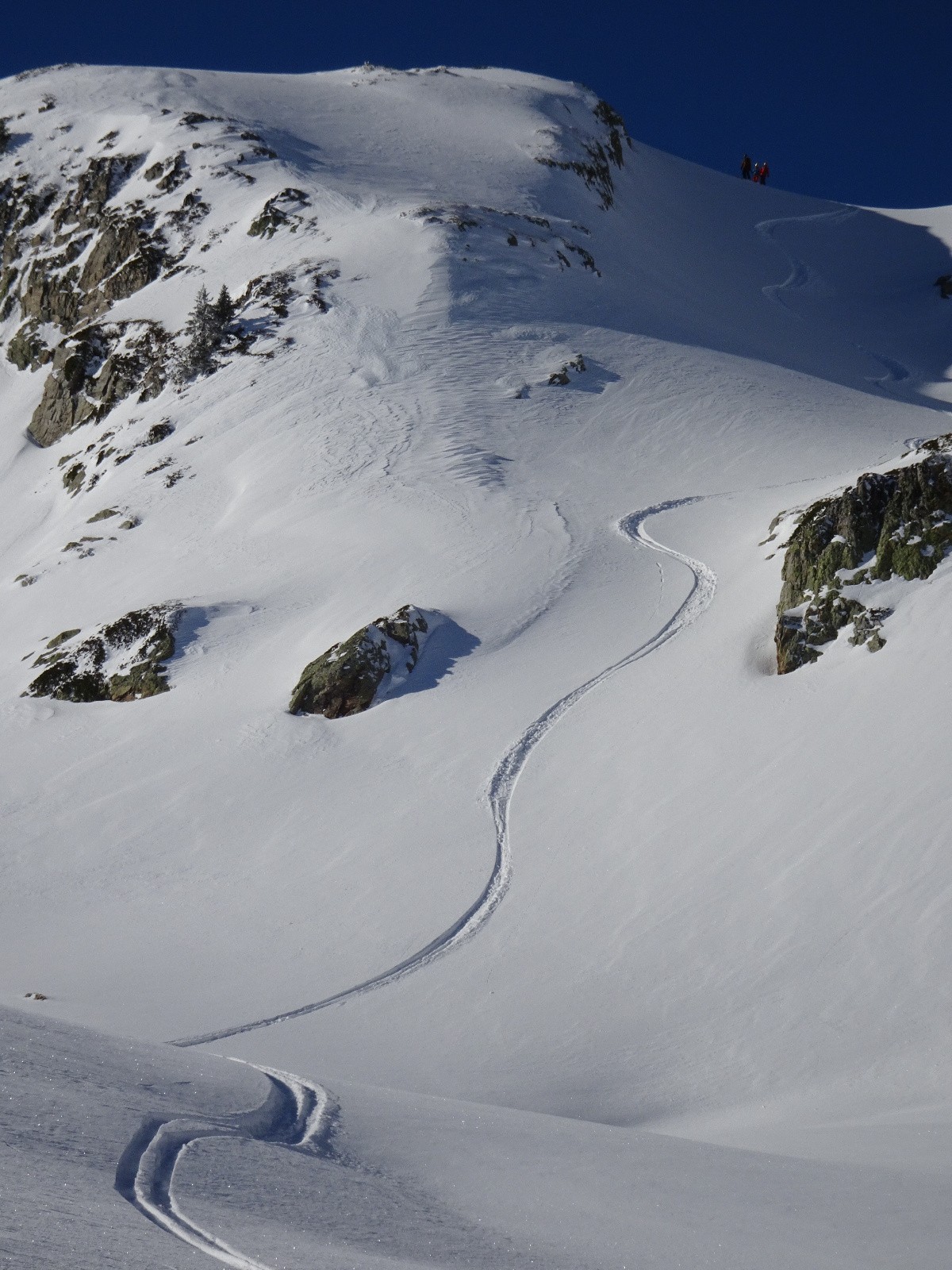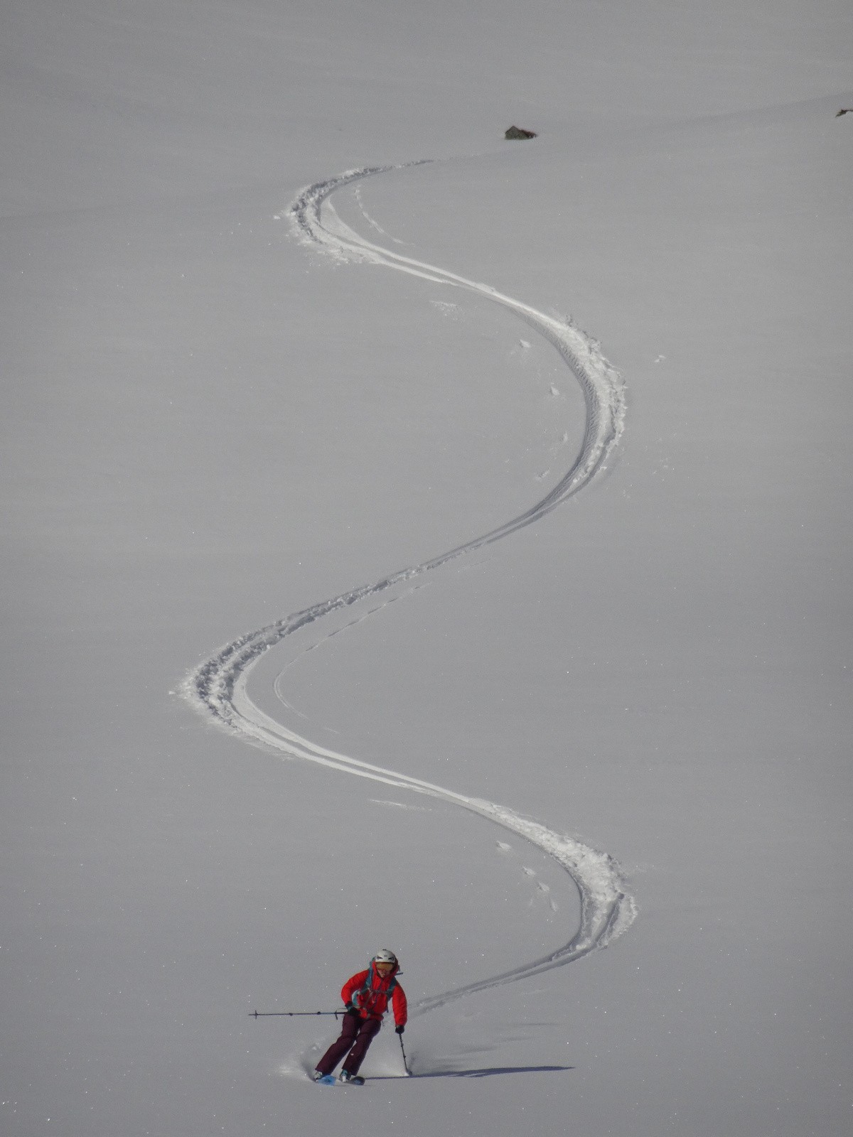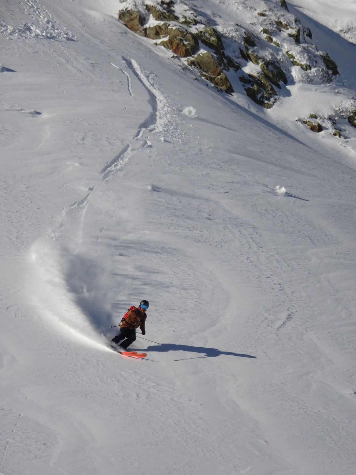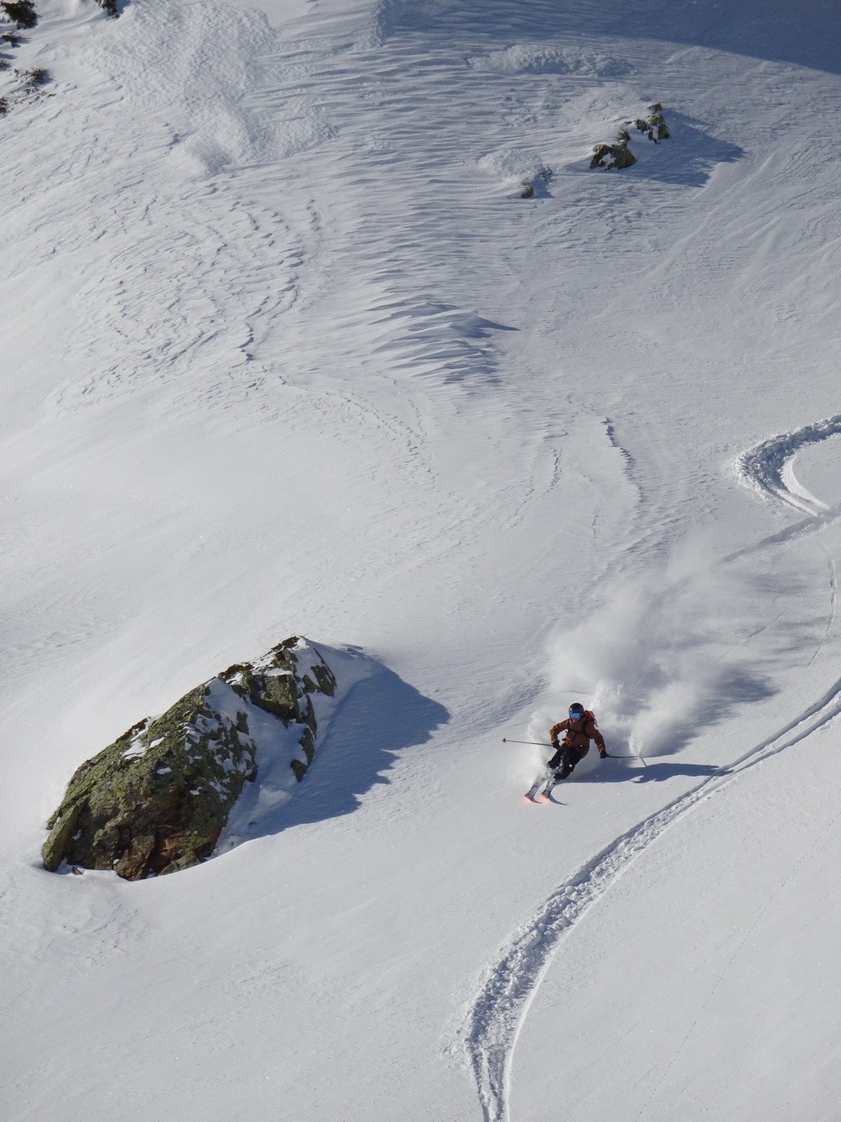 Conditions pour le ski : excellente poudre tout du long, on sent le fond dur de temps en temps sans trop de gêne!