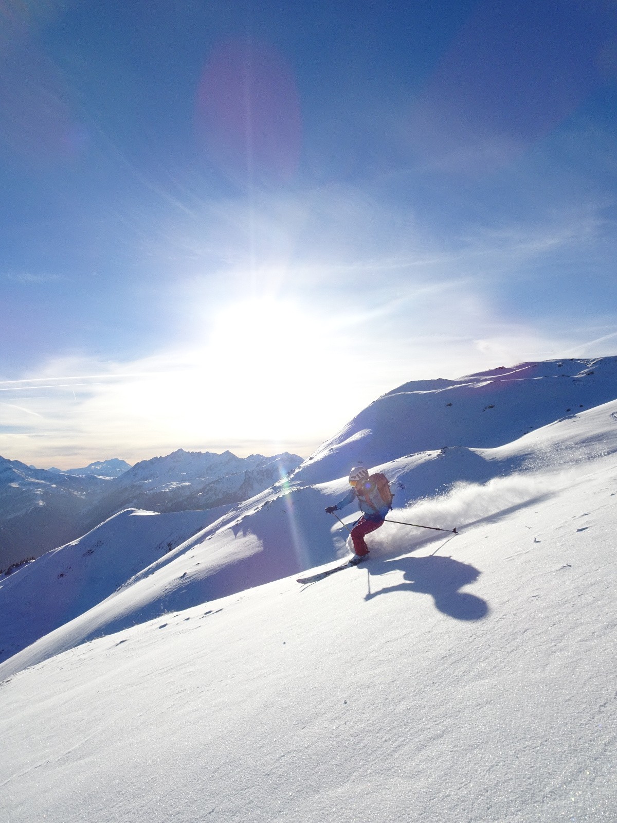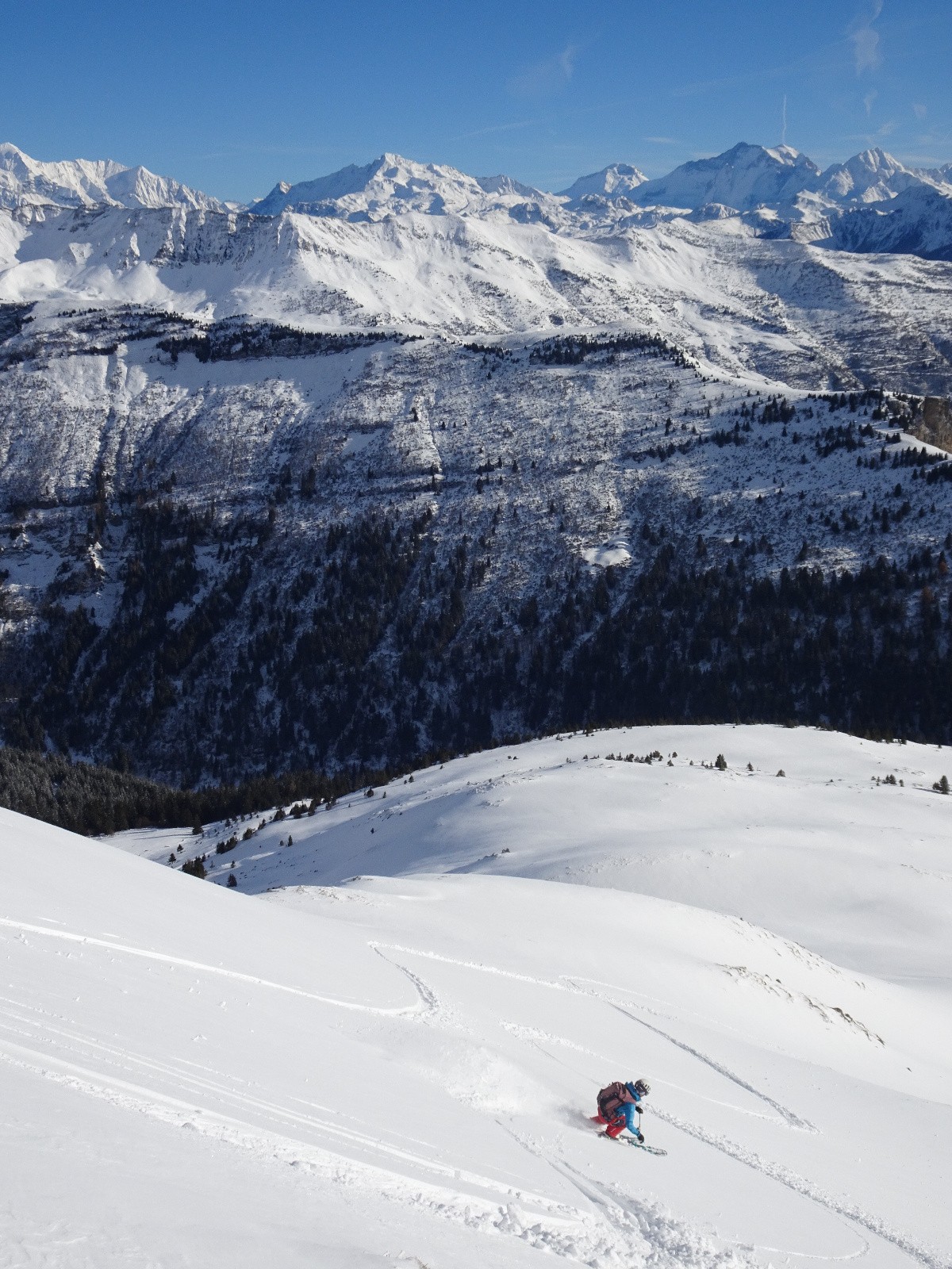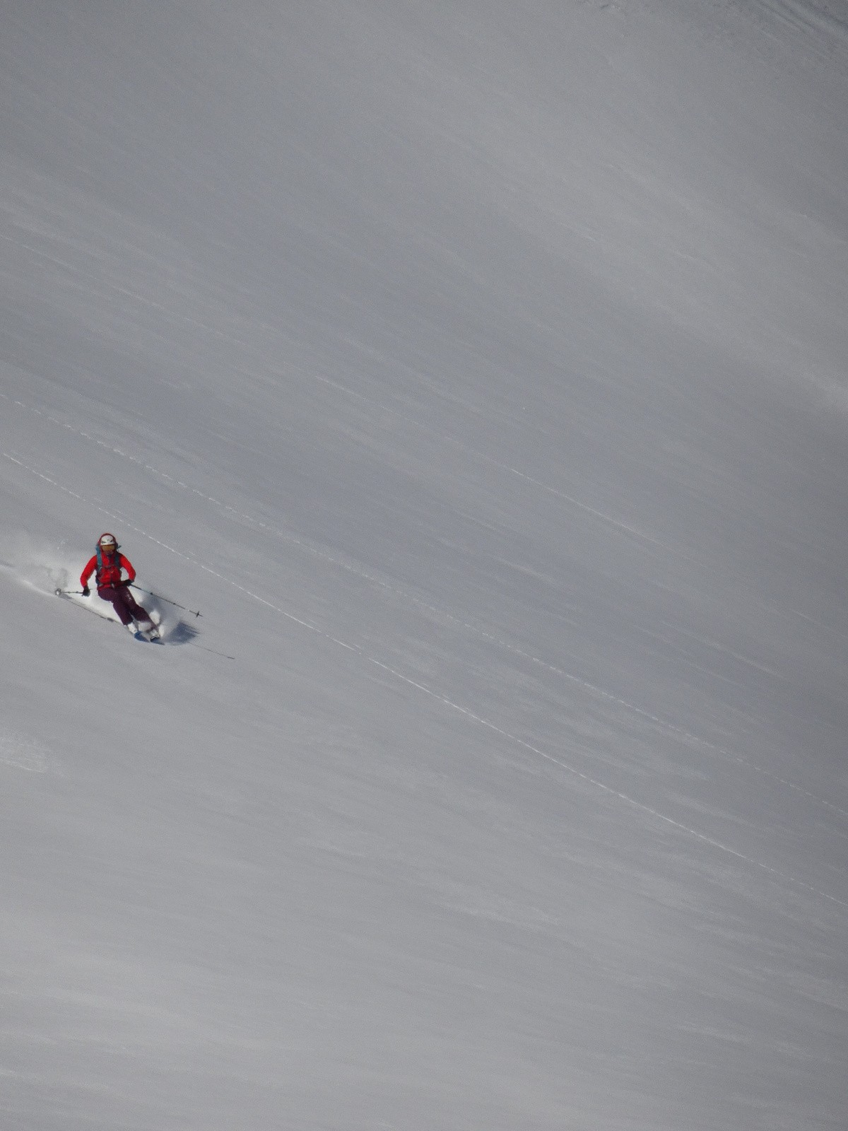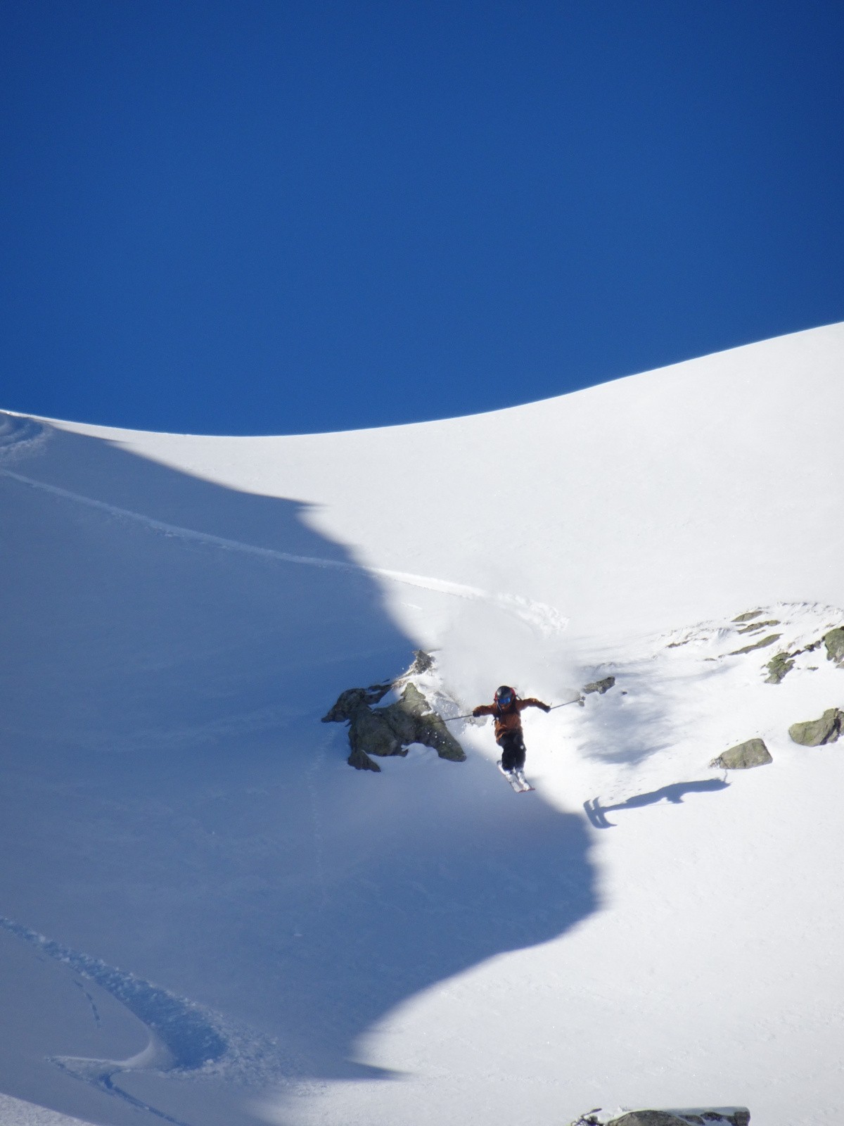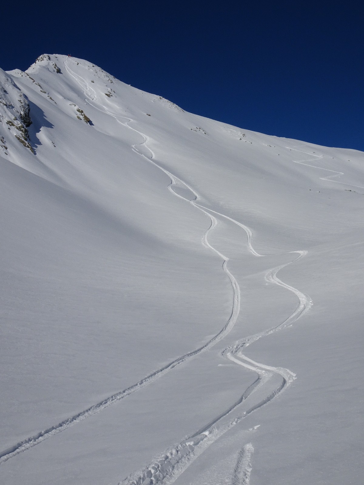 Conditions pour le ski : excellente poudre tout du long, on sent le fond dur de temps en temps sans trop de gêne!
