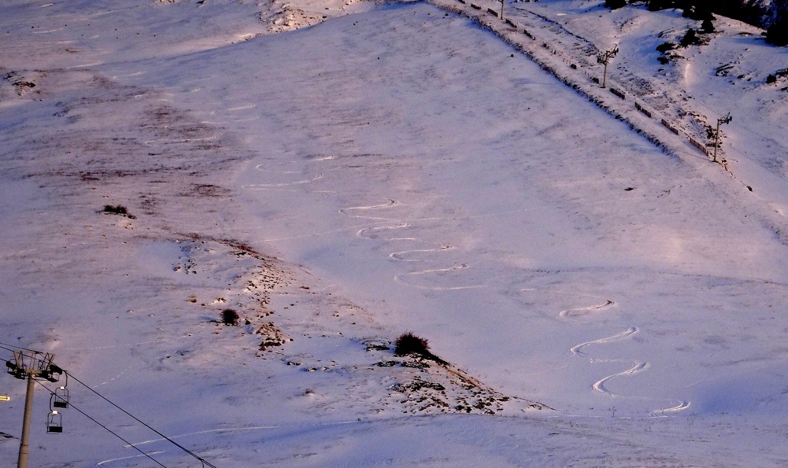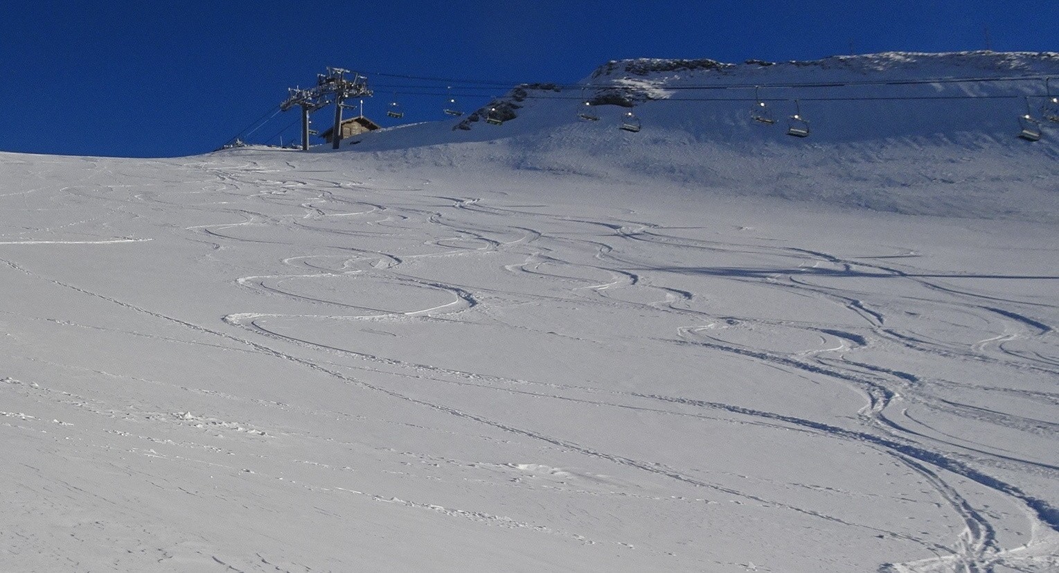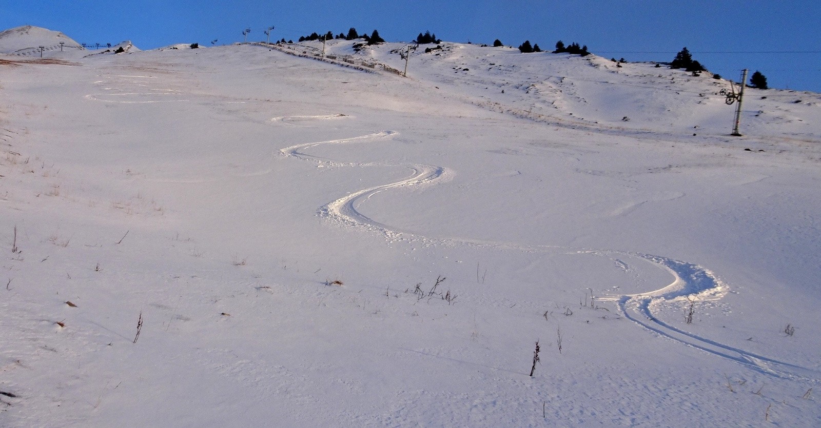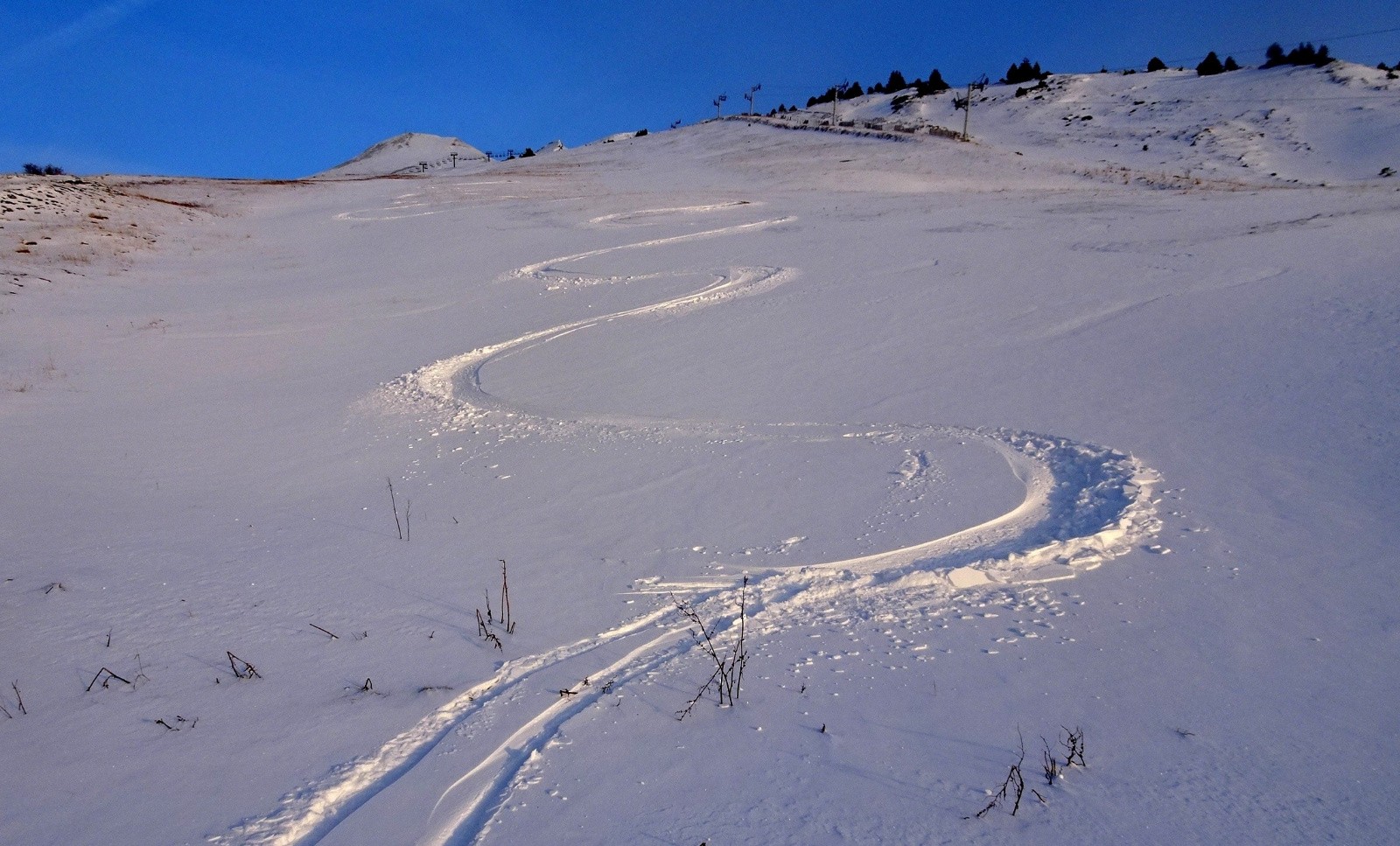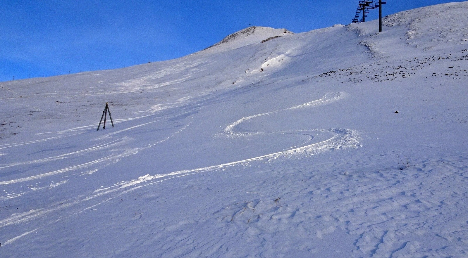 Conditions pour le ski : Globalement peu enneigé.10-15cm de poudreuse soufflée sur fond dur. Beaucoup de touchettes.