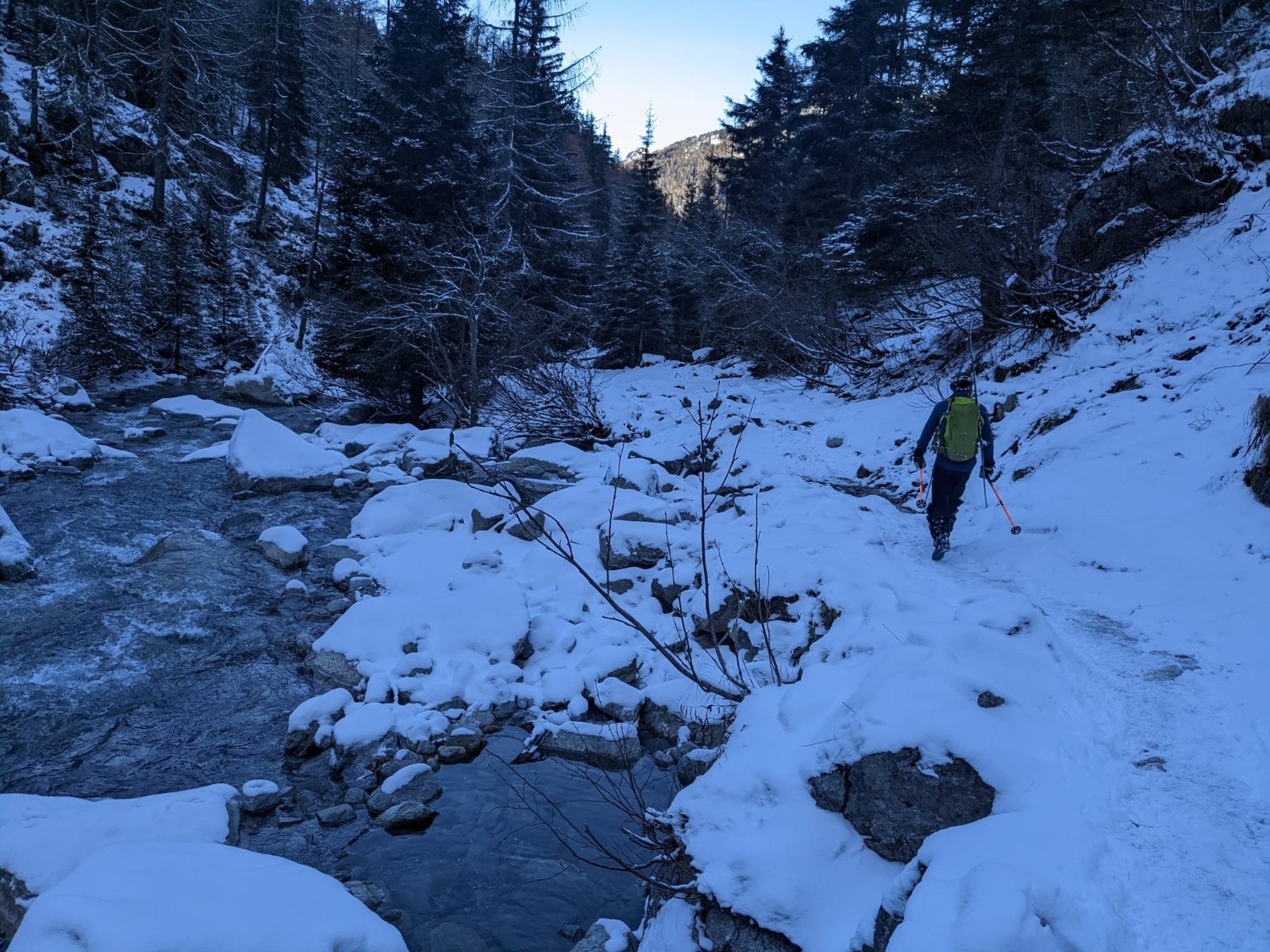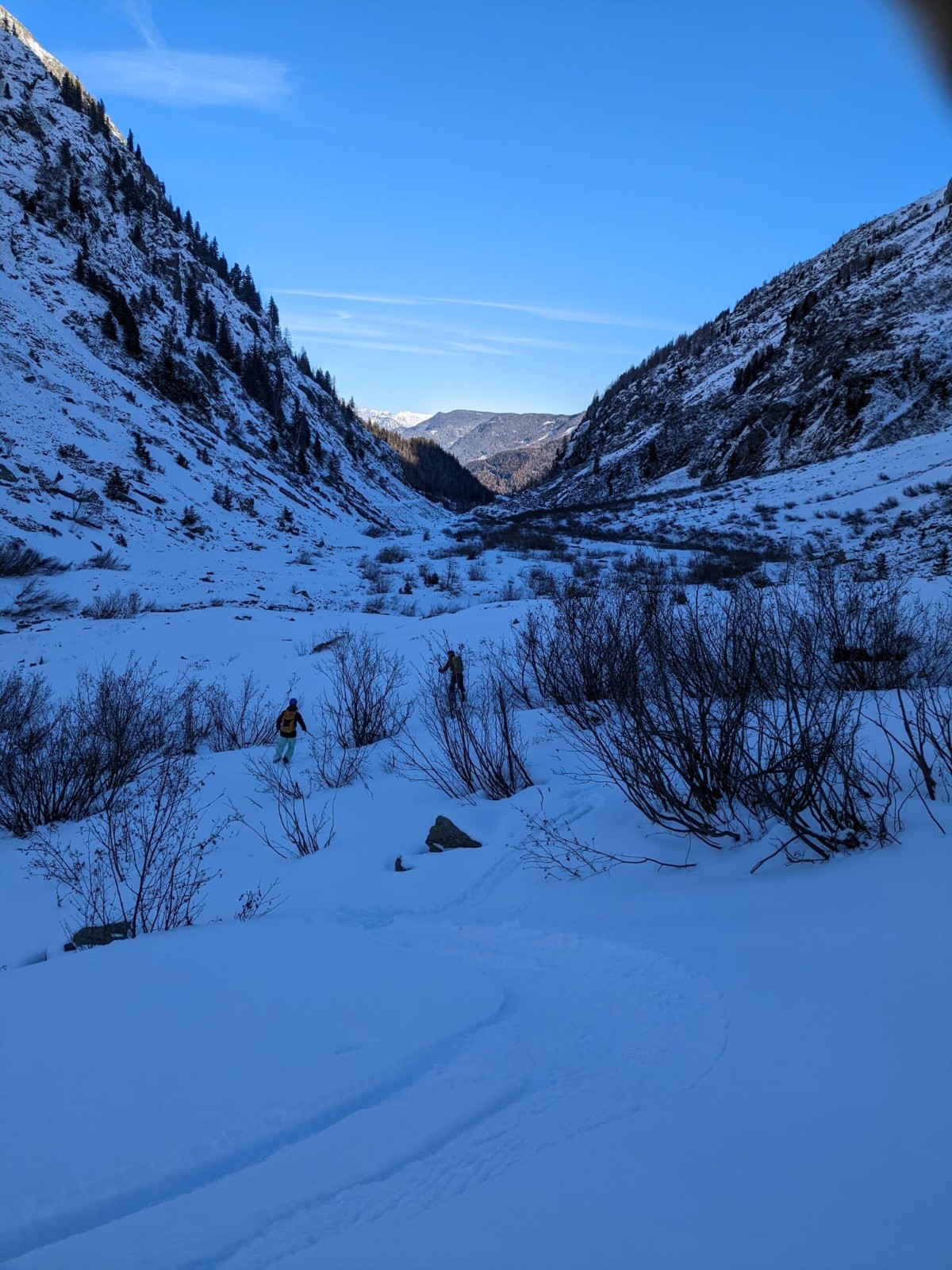 et ça déroule sans accroc ( aux skis) jusqu'au grand replat ou l'on traverse le cours d'eau pour mettre les skis sur le dos et descente pédestre jusqu'au Buet.