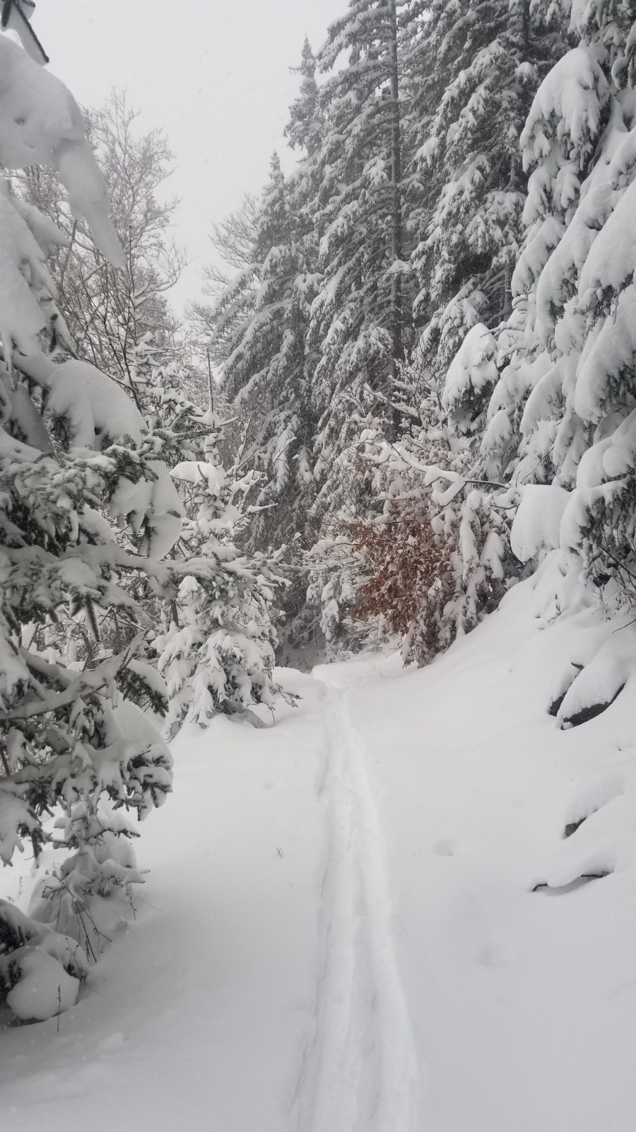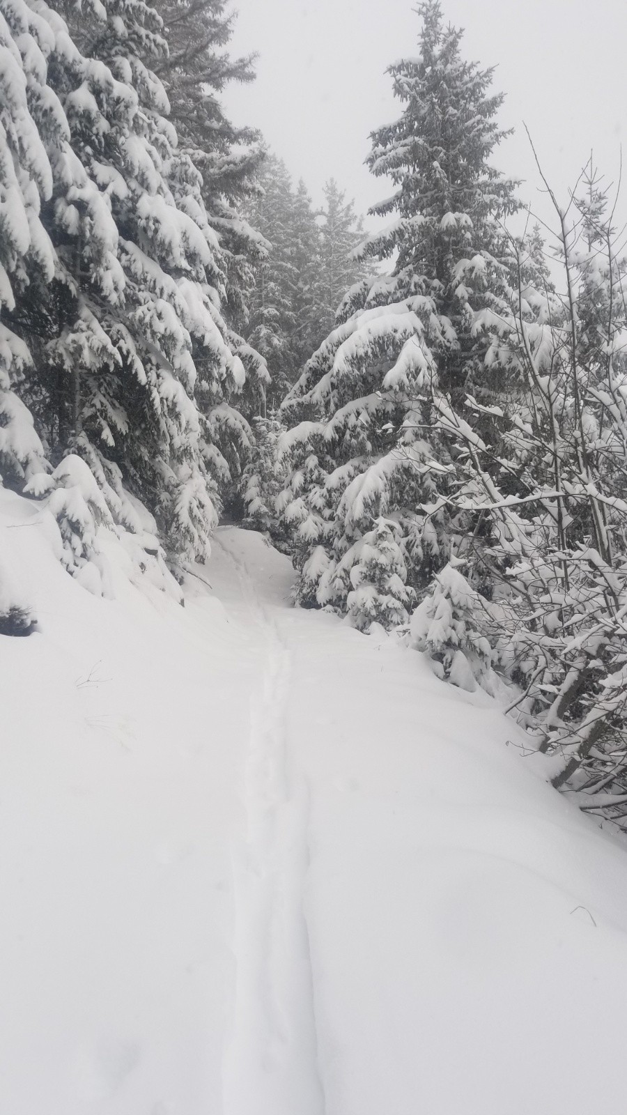 Sur les pistes, c'est déjà gavé et légèrement lourd à 1200m. Pour essayer d'éviter la mission, je file sur la piste de rando, en me disant que sous les arbres, il devrait y en avoir moins!