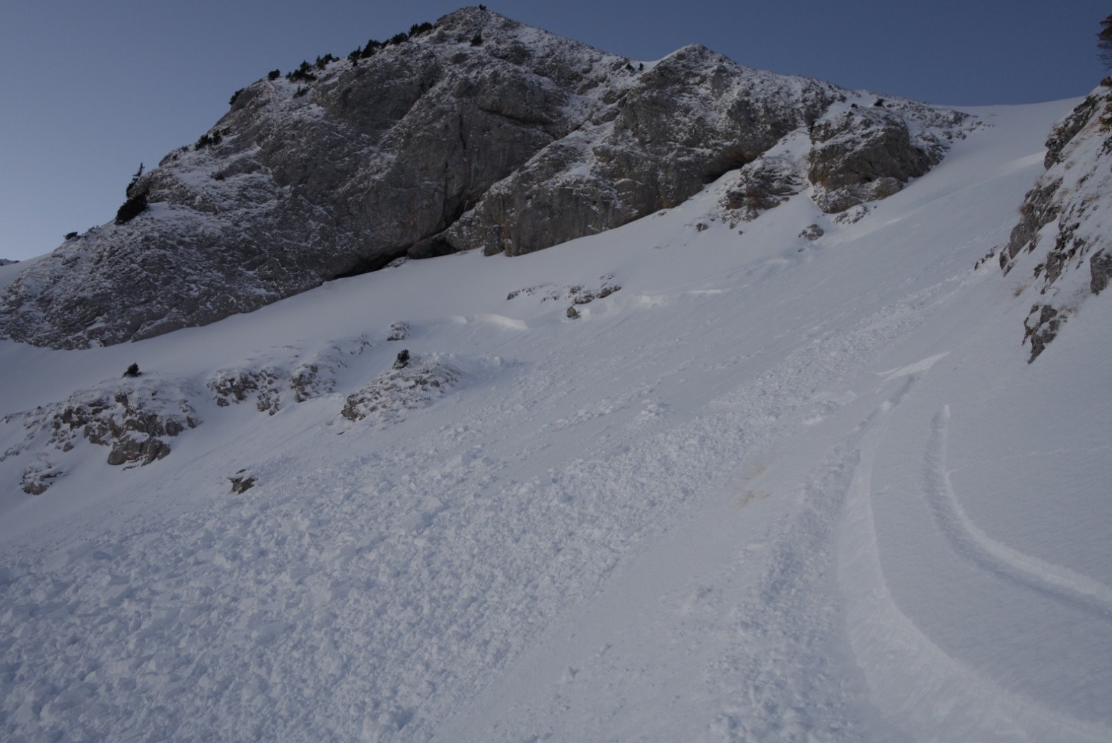 Cassure a 2050m environ de 70cm sur la largeur de la combe.