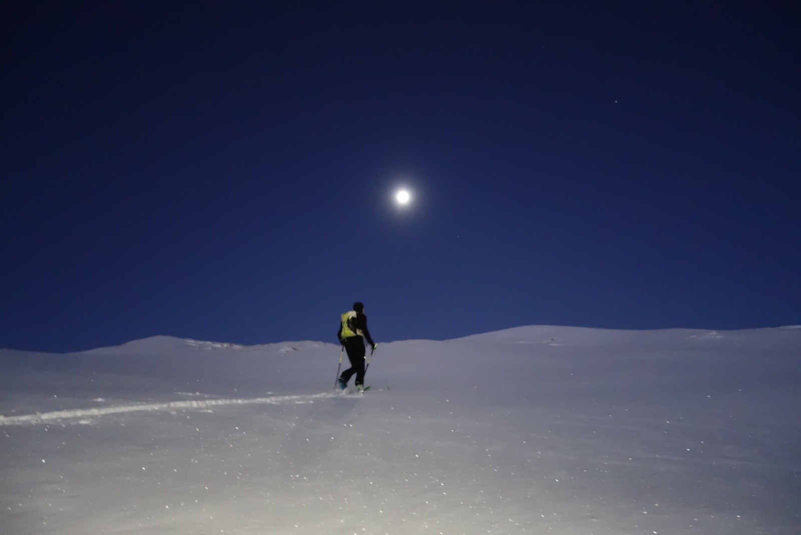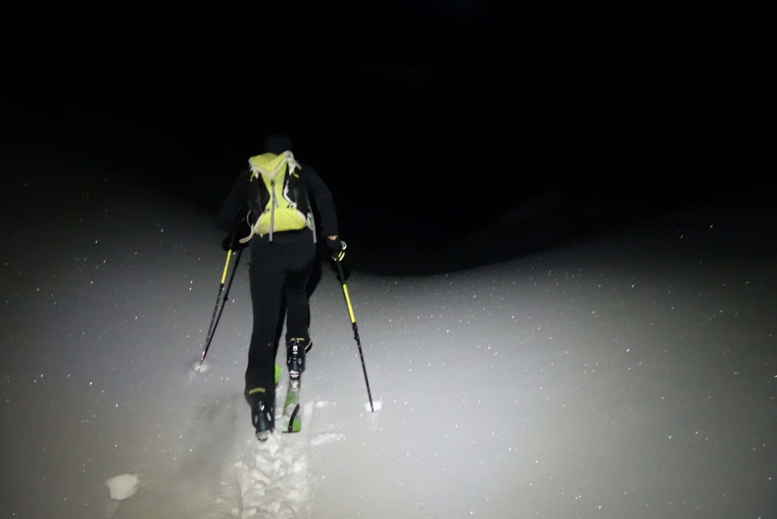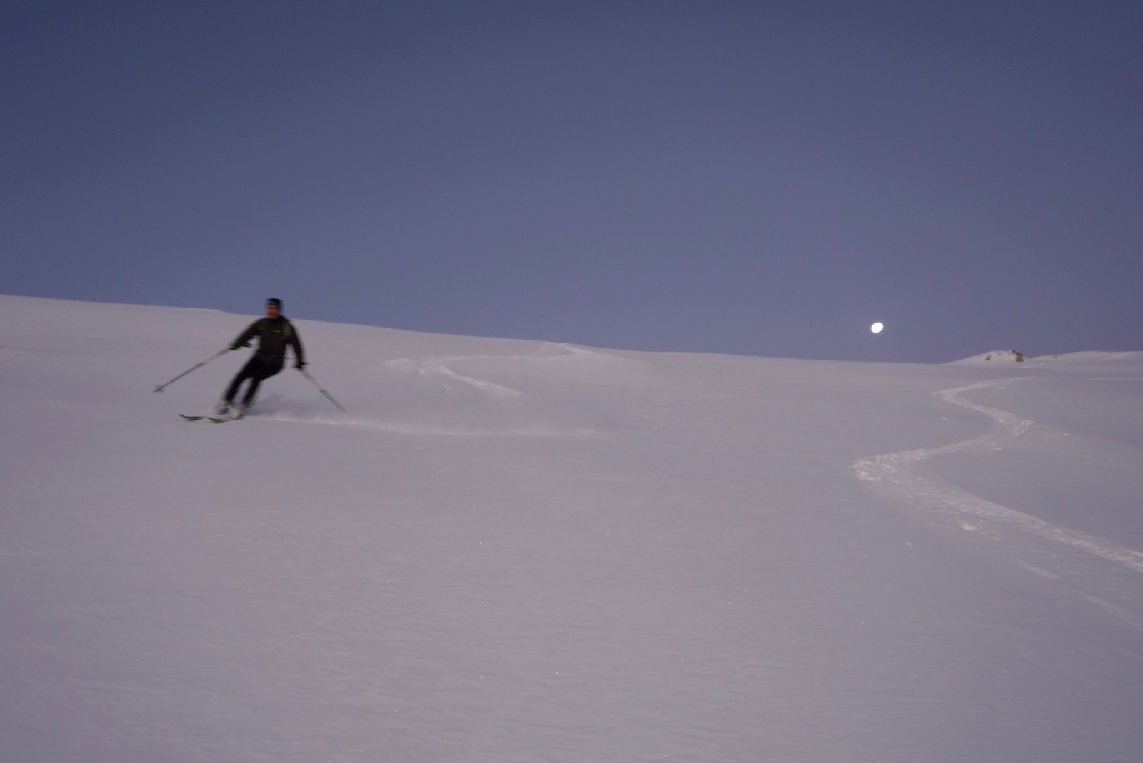Un wouf entendu a la montée dans la dernière pente nous alerte un peu. Rien ne bouge pour la première descente.