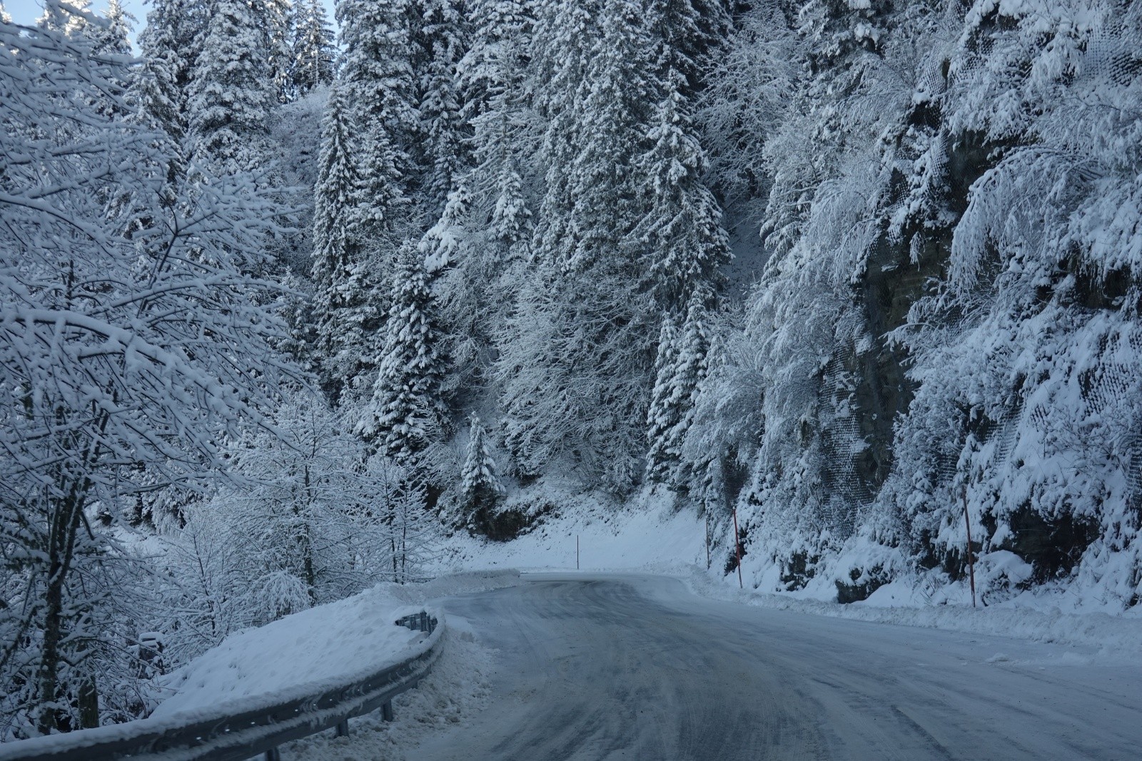 Conditions d'accès/altitude du parking : route enneigée, passages glacés à l'ombre
