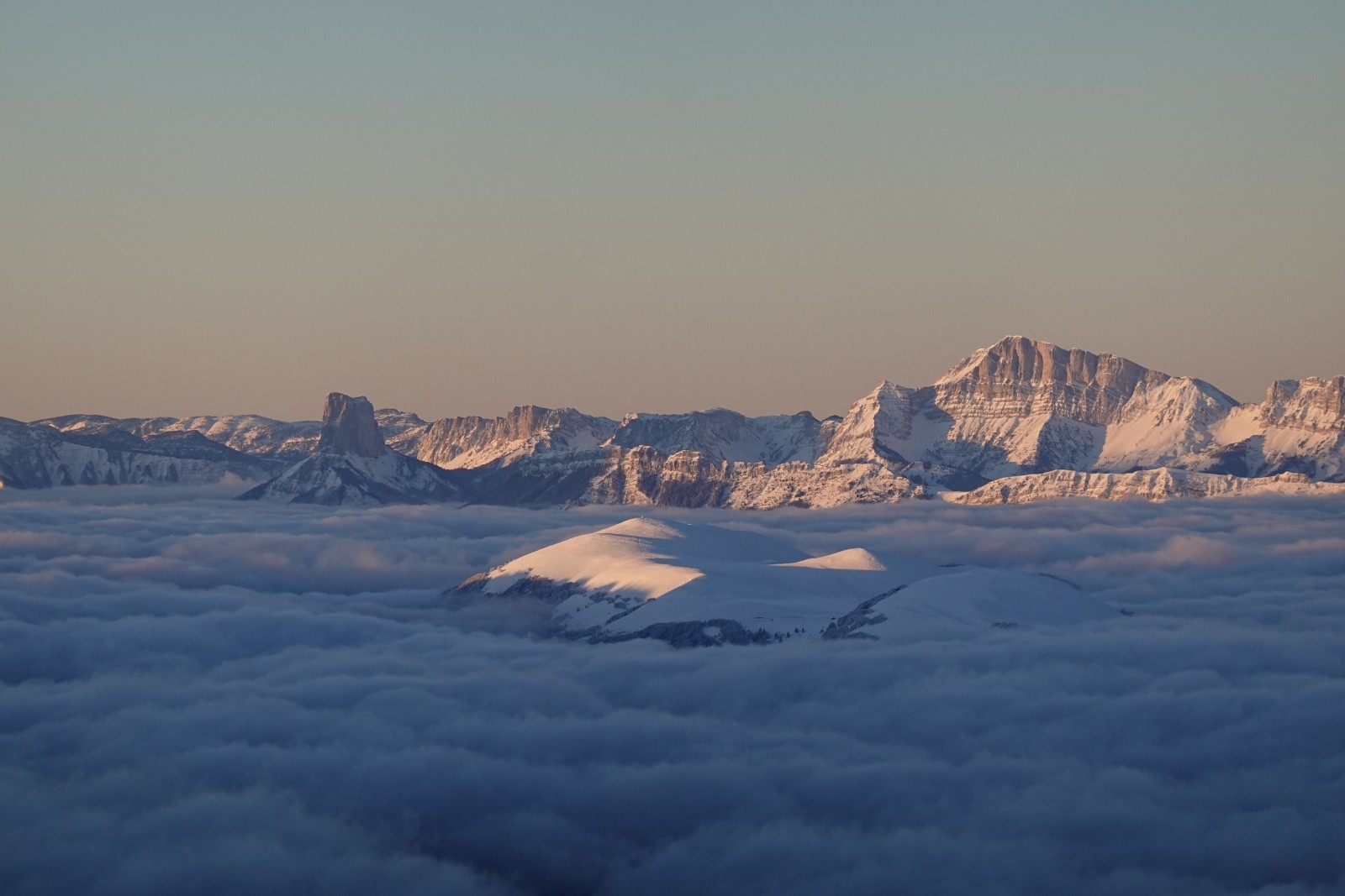 Il y a eu quelques skieurs partis avant moi, mais tous redescendu quand j'arrive à la Croix avec le soleil.